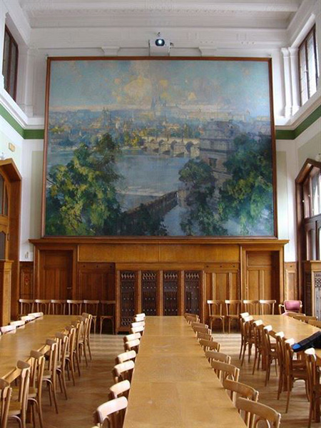 Dnes se ale chci zastavit u jeho budovy poslední. Ta už v době výstavby, která započala právě před devadesáti lety na parcele mezi staroměstským nábřežím Na Františku a ulicí Řásnovka, vzbuzovala značné kontroverze. Šlo o nepřehlédnutelnou budovu Ministerstva obchodu a Patentního úřadu (dnes Ministerstvo průmyslu a obchodu). Fanta vyhrál soutěž a navrhl dům ve stylu historismu a neoklasicismu s pozdně secesní dekorací. To byla na konci dvacátých let již totálně anachronická architektura, stačí si připomenout, že prakticky souběžně se na protějším holešovickém břehu Vltavy stavěl funkcionalistický palác Elektrických podniků s keramickým pláštěm a americkou klimatizací. Není divu, že avantgardisté se Fantovu poněkud ponurému výtvoru, zakončenému mohutnou kupolí, posmívali a označovali ho za poslední secesní stavbu v Evropě. Architekt se však nedal vyvézt z míry. Kamenné průčelí ze žulových a pískovcových kvádrů zdobí desítky plastik stařičkého Čeňka Vosmíka a dalších sochařů, je tu i řada reliéfů a ozdobných mříží. Stejnou péči věnoval projektant také interiérům. Nádherným prostorem je eliptické hlavní schodiště, původní je dřevěné obložení stěn salonů, kazetové stropy a mramorové dlažby, lustry a nábytek najdeme i v zasedací síni. A samozřejmě nechybí ani charakteristické Fantovy nápisy.