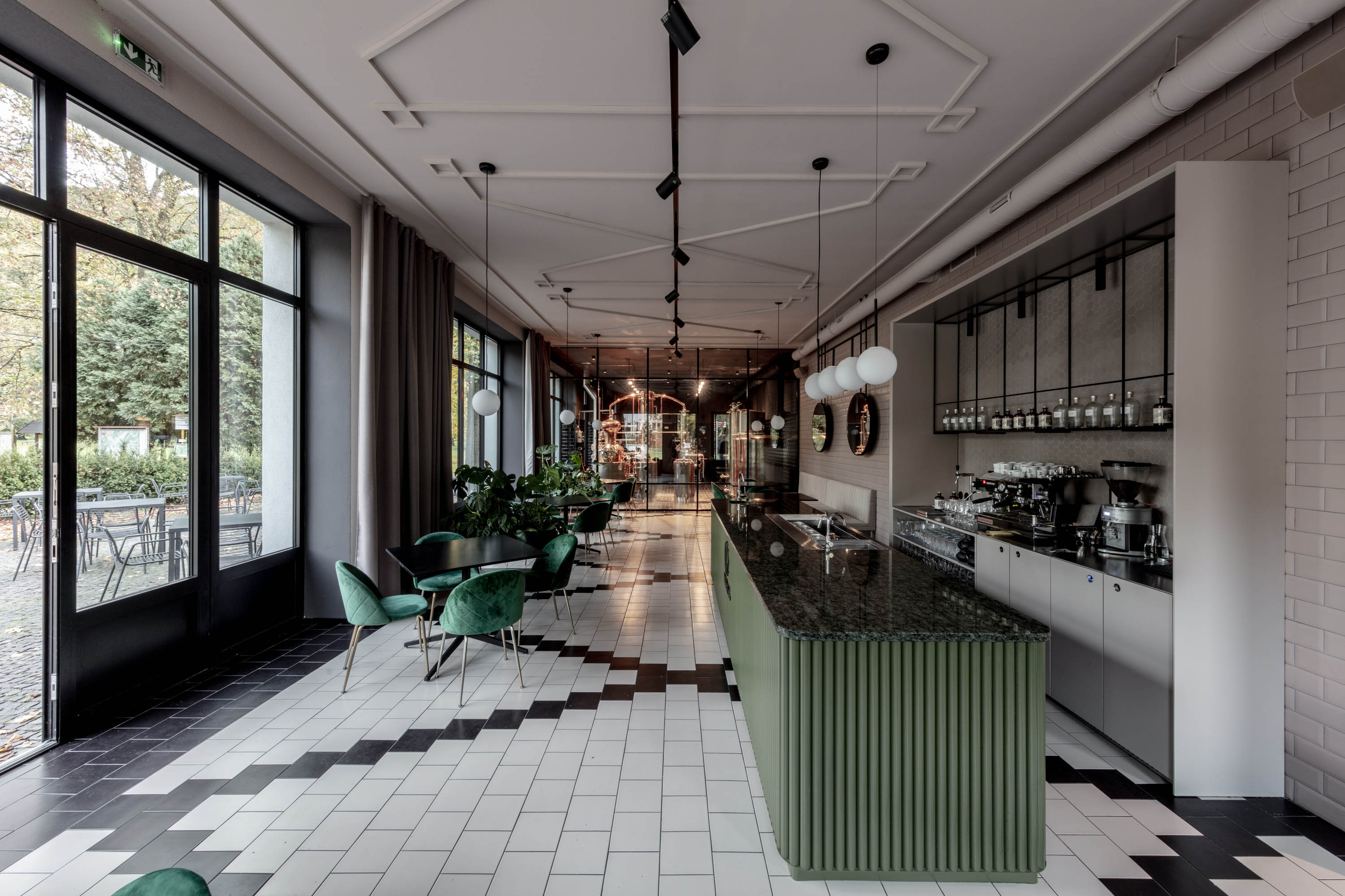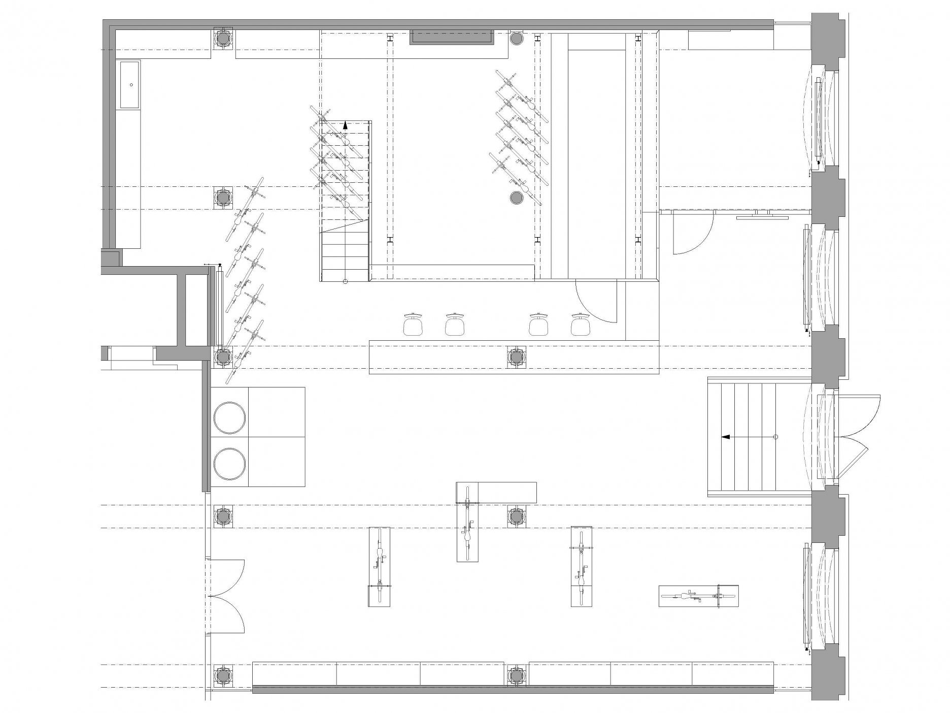 Zariadenie obsahuje všetky potrebné funkcie a prvky. Ostrovy, zvárané z oceľového plechu, efektívne využívajú priestor. Integrujú vitríny, sedenie, úložné priestory aj rozvody, čím minimalizujú zásahy do pôvodnej stavebnej podstaty...