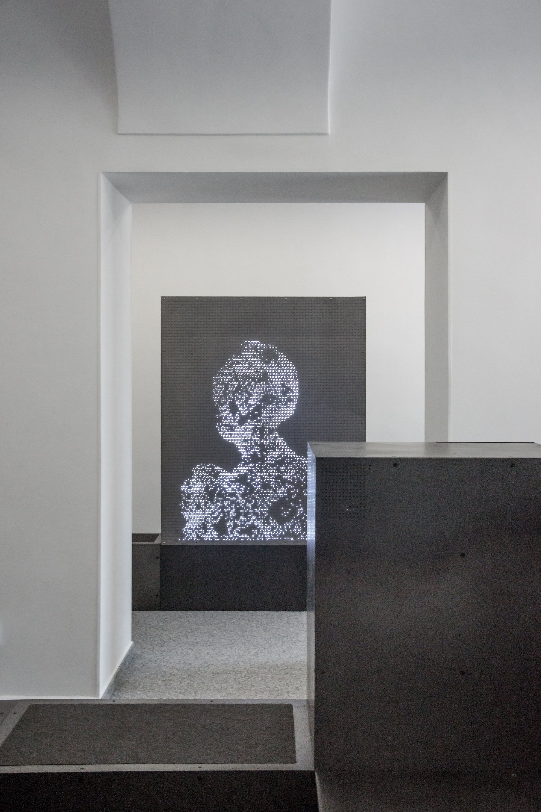 Architekti stavajú vizuálnu identitu návštevníckeho centra na podprahových odkazoch, ktoré nahradili výrazné farby a logotypy. Zvolené riešenie napriek tomu vytvára zapamätateľný vizuál, s potenciálom dlhodobej životnosti. Povrchy, ktoré odkazujú (nielen) na oceliarsky priemysel, sú lokálne perforované pravidelným rastrom. Ten umožňuje bez dodatočných zásahov zobrazenie ľubovoľného textu alebo grafického odkazu.