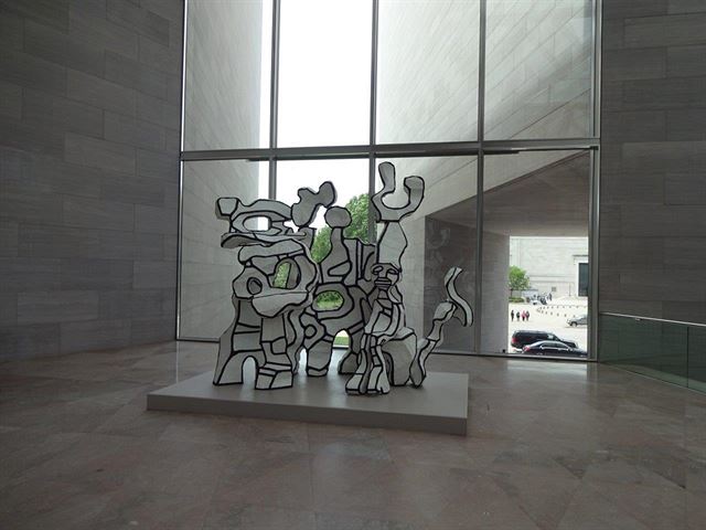 Vstupní průčelí připomíná svým tvarem písmeno H a architekt zde pracuje i s efektem kontrastu světla a stínu na fasádě i v rozlehlé vnitřní hale, do níž světlo proniká prosklenou střechou. Koncepce vnitřních prostor je velkorysá – architekt pečlivě komponoval jednotlivé partie tak, aby vystavená díla dostala prostor a dominovala vybrané lokalitě. Pozorovat je lze z různých horizontů od přízemí až po terasy a ochozy jednotlivých podlaží. Tak si můžete ve vestibulu vychutnat pomalu se otáčející obří mobilní plastiku Alexandera Caldera, stejně jako velké plátno Roberta Motherwella, barevné čtverce Ellswortha Kellyho nebo sochy Maxe Ernsta či Jeana Dubuffeta. Jednotlivé exponáty jsou pečlivě vybrány tak, aby si nekonkurovaly, naopak celkovým dojmem je soulad, bez ohledu na výtvarné pojetí, materiál nebo barevnost.