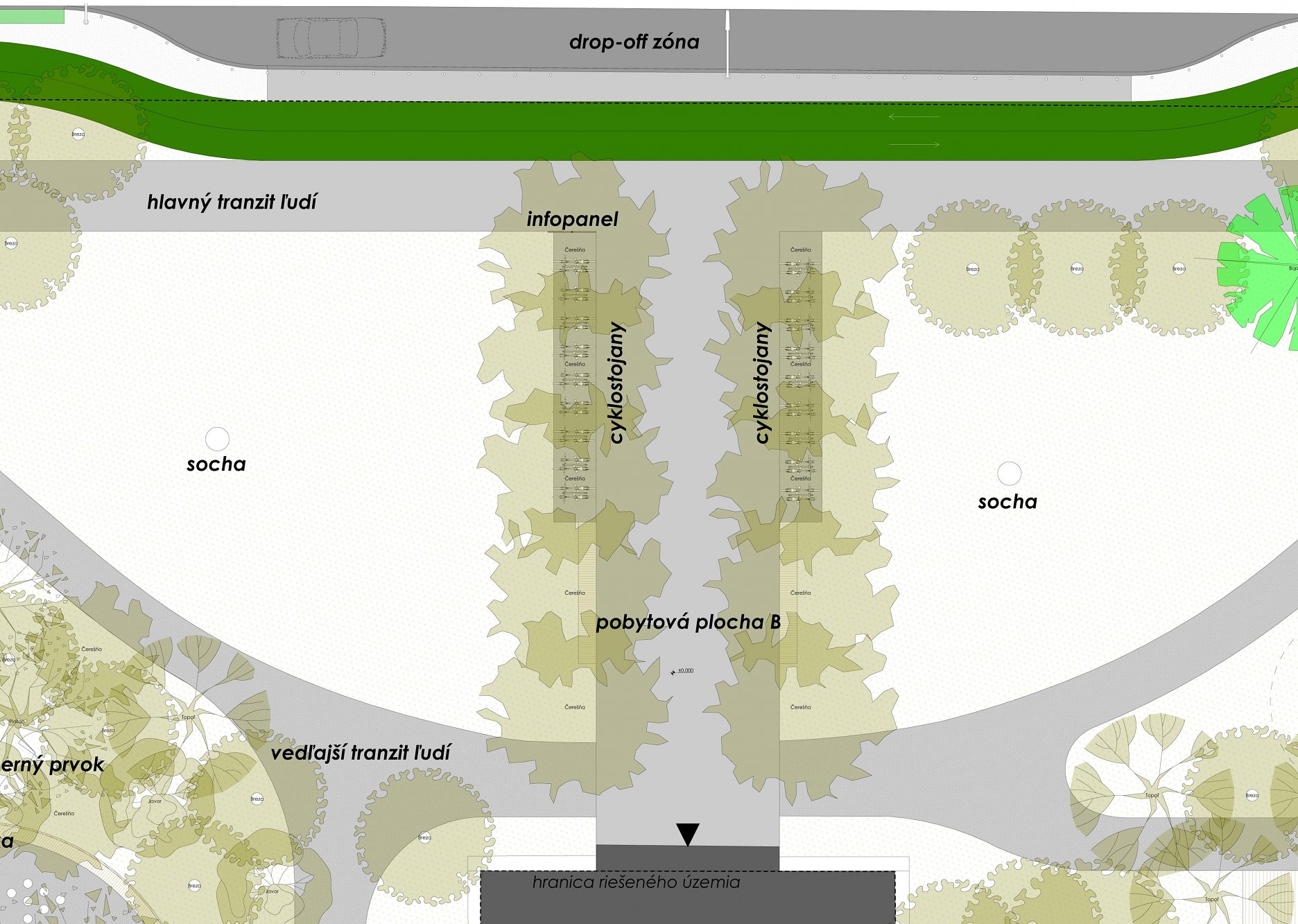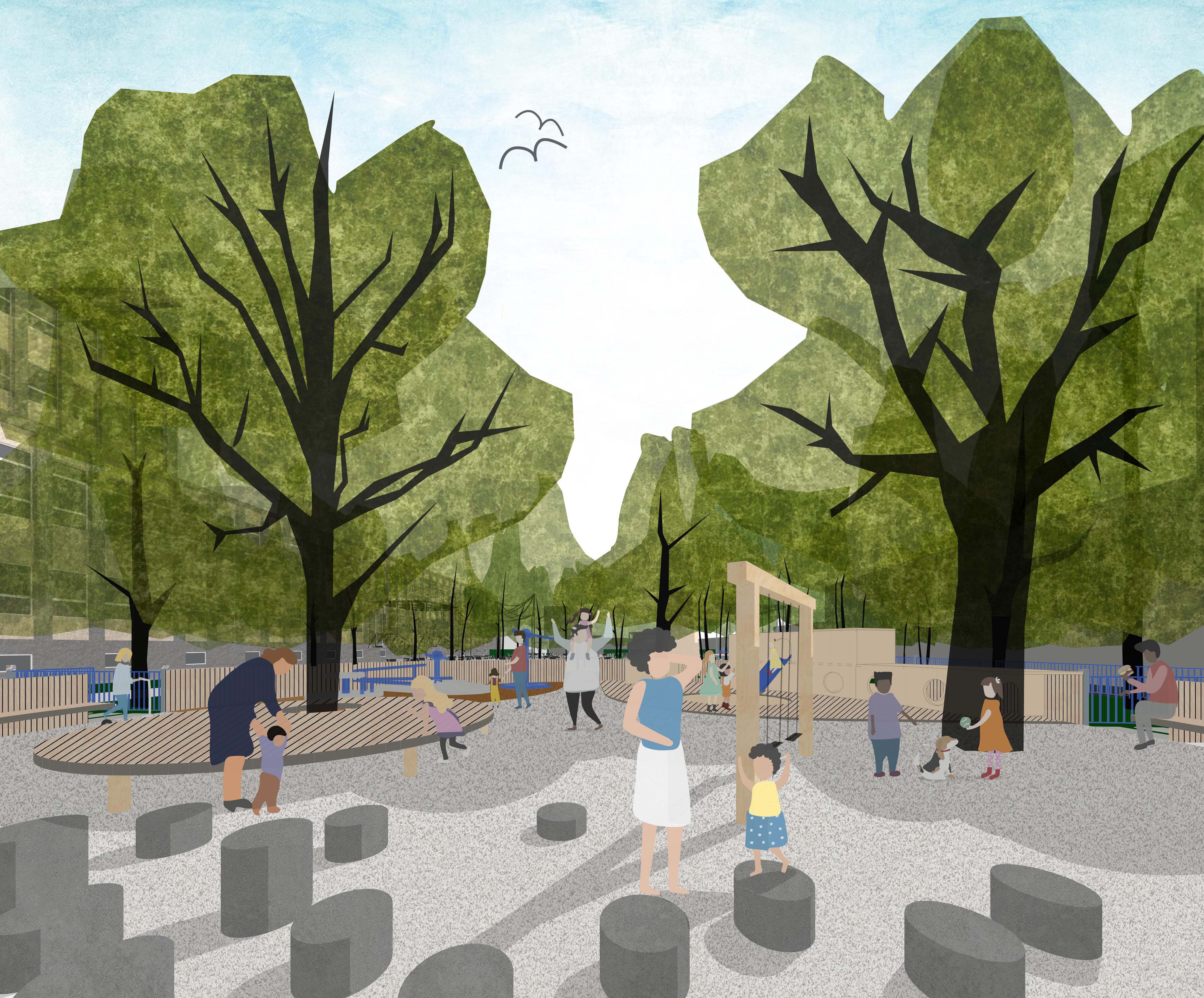 V rámci nových funkcií pribudne pódium pre akcie pod holým nebom, sauna, letná kuchyňa a potenciálne aj iné drobné objekty, ktorých formu prinesie budúcnosť. Atmosféru doplnia vysoko vyvetvené pionierske dreviny, ktoré sa vyznačujú pomerne rýchlym rastom. Pod nimi budú voľne umiestnené stoličky.