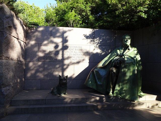 Další „memorial“ je umístěn jen o pár set metrů dále, opět na břehu Tidal Basinu. Připomíná jinou významnou postavu 20. století –Franklina Delano Roosevelta (1882-1945). Tento v pořadí 32 .prezident byl jediným v celé historii Spojených států, který byl zvolen na více než dvě volební období (celkem čtyřikrát).