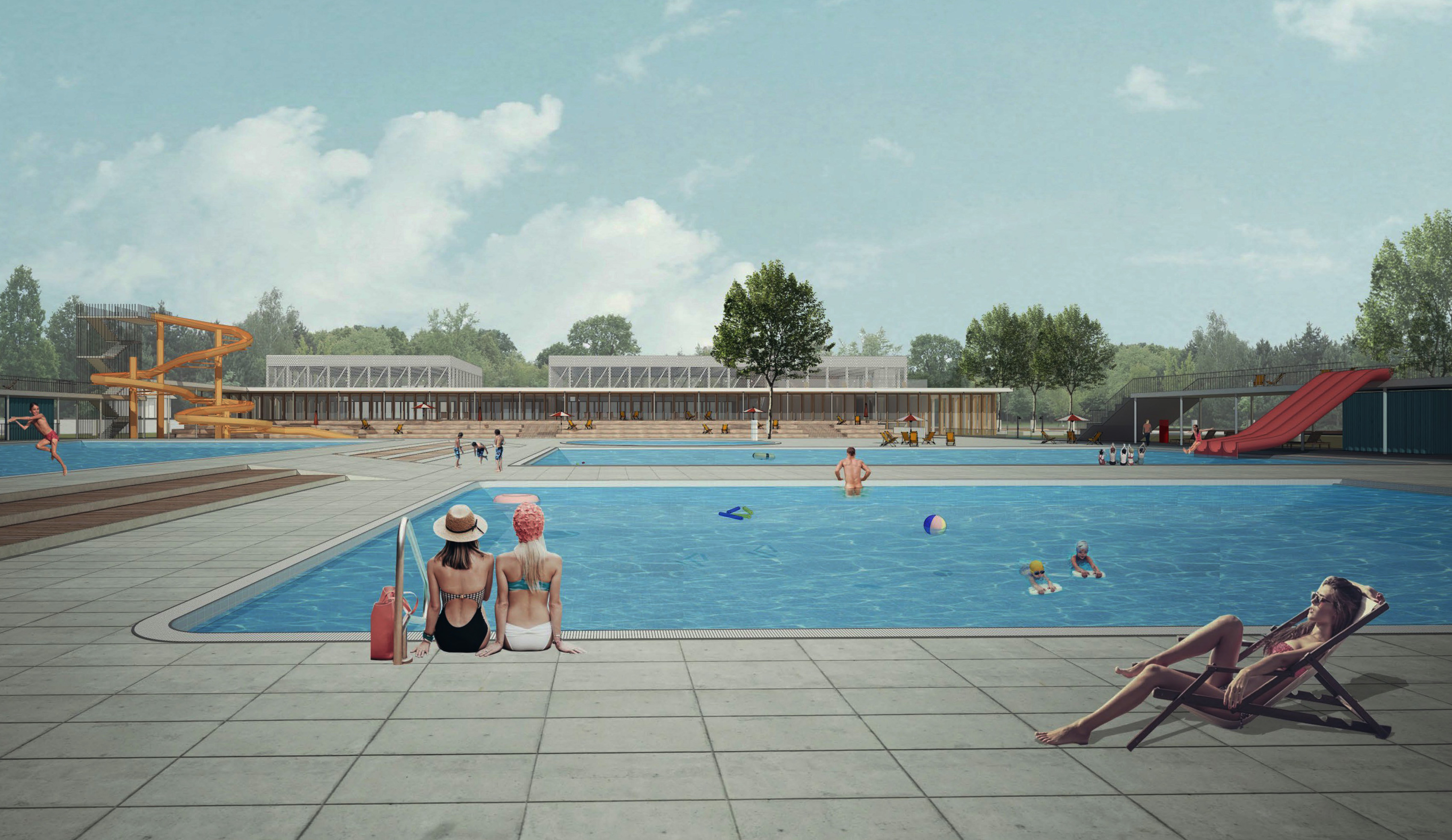 Porota ocenila návrh ako víťazný z niekoľkých dôvodov. Jedná sa o spojenie mimoriadne citlivého, vnímavého vstupu do územia s civilnou, prehľadnou architektúrou vnútorných a vonkajších plôch. Autori pracovali s jednotným výškovým spojením ochodze a „rímsy samotnej haly“. Veľmi decentne vytvárali akcent nad bazénmi čím v parku podčiarkujú silu nízkej budovy akoby pavilónu. Celkové riešenie nevytvára vizuálnu bariéru v parku, skôr sa stáva jeho súčasťou.