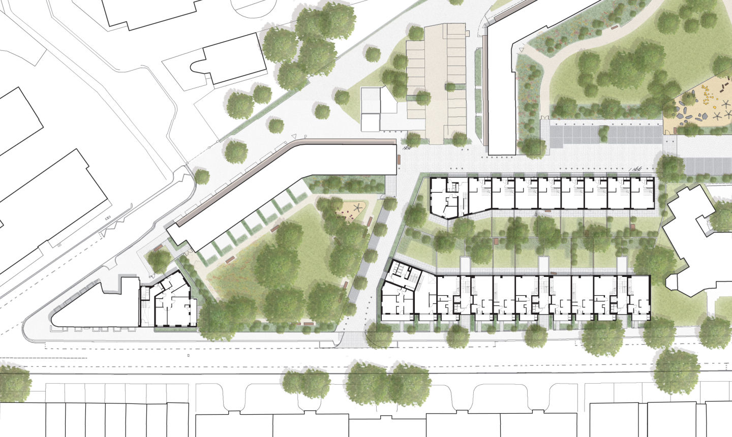 Vzorový príklad koncepčného rozvoja mestskej časti. Ide o prvú realizovanú fázu doplnenia obytnej štruktúry v štvrti South Kilburn. Nová podoba bytových domov vzišla z architektonickej súťaže. Urbanistické riešenie vychádza z archetypu blokovej zástavby z 19. storočia. Dôraz je kladený na komunitný život. Vnútroblok je riešený ako funkčný priestor, ktorý ma za úlohu prepojiť obytné domy. Do monotónnej textúry bytoviek zo šesťdesiatych rokov sa podarilo vniesť novú kvalitu.