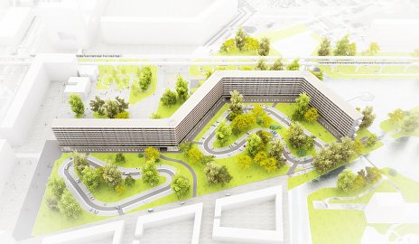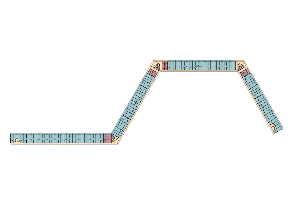 Skladovacie priestory pre obyvateľov bytov, ktoré boli pôvodne umiestnené na prízemí a tvorili nepriepustnú bariéru boli presunuté do jednotlivých podlaží, čím sa prízemie otvorilo pre obývaciu funkciu. Betónový kolos sa tak otvoril do parkových priestorov.