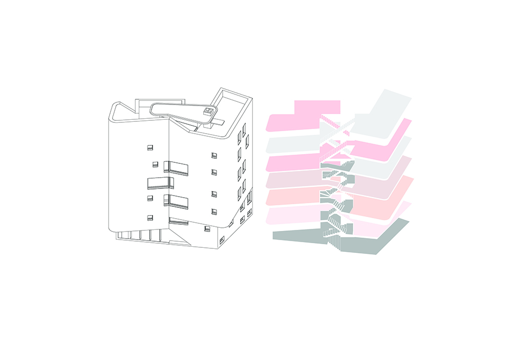 Nosné konštrukcie a infraštruktúra budovy boli zrekonštruované do pôvodnej podoby, pričom však byty boli ponechané bez vybavenia, infraštruktúry a zariadenia. Tento krok minimalizoval počiatočné investície a umožnil zrealizovať experimentálny obchodný model. Zásadným momentom rekonštrukcie bolo odstránenie troch výťahových šácht, ktoré boli pristavené v 80. rokoch a objekt vertikálne rozčlenili. Počas rekonštrukcie sa ukázalo, že šachty môžu byť nahradené výťahmi umiestnenými vo vnútri dispozície. Brutalistická krása horizontálnych línií pavlačí tak mohla byť obnovená.
