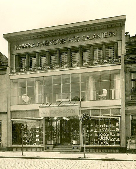 Překvapivě to nebylo ani v Hradci, ani v Praze, ale v malém městě Jaroměři. Tamní úspěšný podnikatel Josef Wenke se totiž rozhodl postavit si v Husově ulici nový obchodní dům. Nejdříve oslovil dva místní architekty, ale stále nebyl s výsledkem spokojen. Přál si stavbu moderní, s velkými prosklenými plochami, aby bylo z ulice dobře vidět na vystavené zboží. Na prahu roku 1910 proto oslovil i tehdy třicetiletého Gočára. První návrh byl velmi zajímavý, architekt splnil zadání a přízemí i patro se otevírají do ulice velkými okny, v horní partii uliční fasády pak navrhl trojici kruhových oken, které dávaly stavbě industriální ráz. Následovala odlišně řešená druhá varianta, kde se v horním patře objevují menší klasická okna oddělená kanelovanými sloupky krytými černou keramikou. Celé průčelí pak graduje výraznou římsou. Dům byl pak dle tohoto návrhu postaven. Impozantní je především motiv prosklené dolní části fasády s okny v tenkých rámech, který dodnes působí moderně, ale v tehdejší době byl malou senzací – jako by tu architekt předešel vývoj architektury o téměř dvě dekády. Taková řešení tehdy nebyla v Evropě, natož v USA u podobných obchodních paláců novinkou, nicméně u nás se do té doby podobná stavba neobjevila.