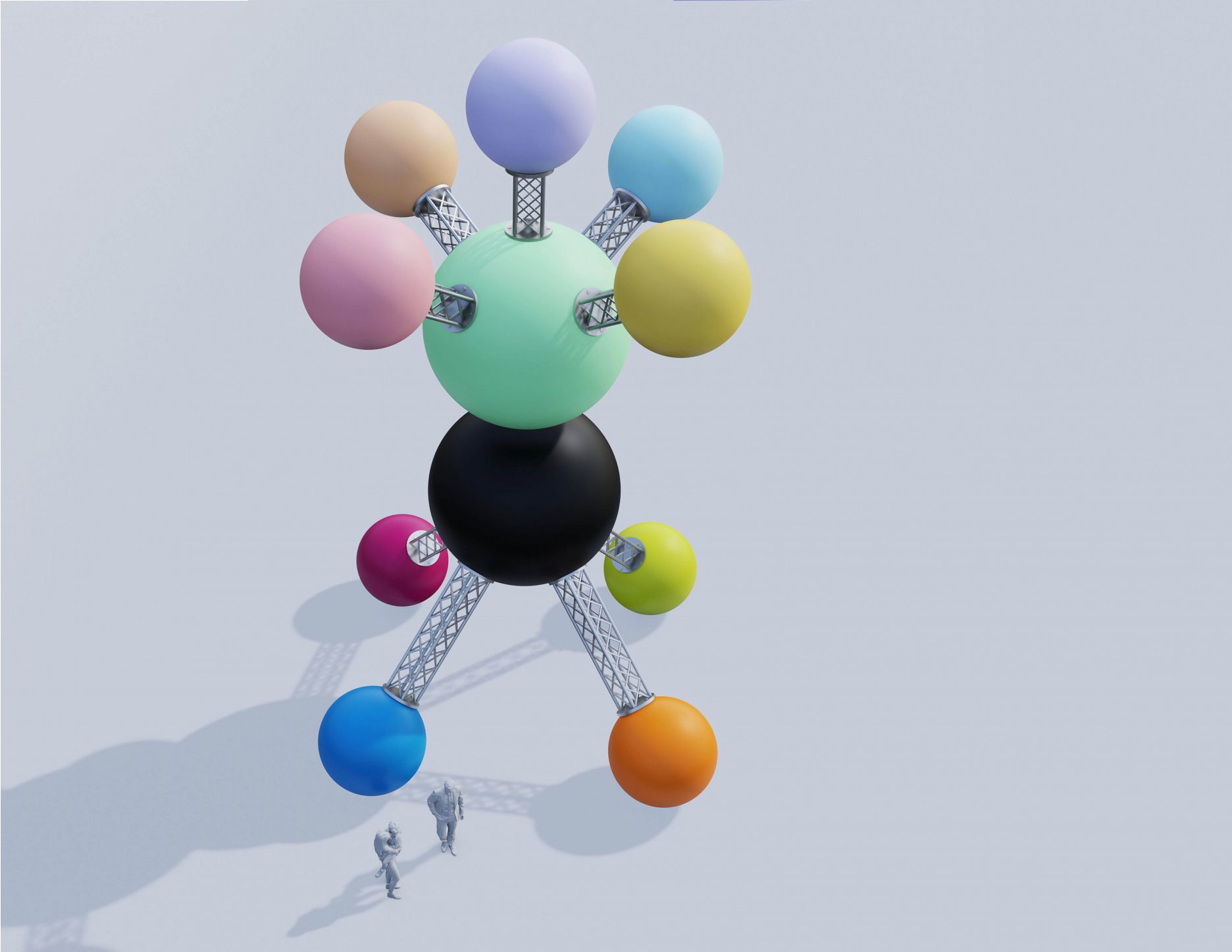 Ide o vyvážený elementárny tvar, ktorý vytvorí potrebný urbanisticko-priestorový akcent v tomto architektonickom kontexte. Vyznačuje sa výraznou siluetou, čitateľnou štruktúrou a elementárnymi farebnými formami. Ide o výraznú 13-metrovú vertikálnu kompozíciu, silný vizuálny prvok vo verejnom prostredí. Základnými prvkami sú sústava 11 farebných polyesterových gúľ a prislúchajúcich hliníkových spojovacích konštrukcií. Táto kompozícia vytvára jednoduchý zrkadlový systém obrátených gúľ, istú geometrickú hravú štruktúru s možnosťou čítania aj štylizovanej ľudskej figúry. Farebnosť návrhu je odvodená od farieb loga Eurovey. Monumentálny objekt vytvára zaujímavý a integrujúci element v prostredí, kde umožňuje pracovať s týmto prvkoslovím aj pri ďalšom modelovaní priľahlých priestorov a parku. Komisia podčiarkla aj realizovateľnosť tohto návrhu vo vypísanej cenovej hladine zadávateľa.