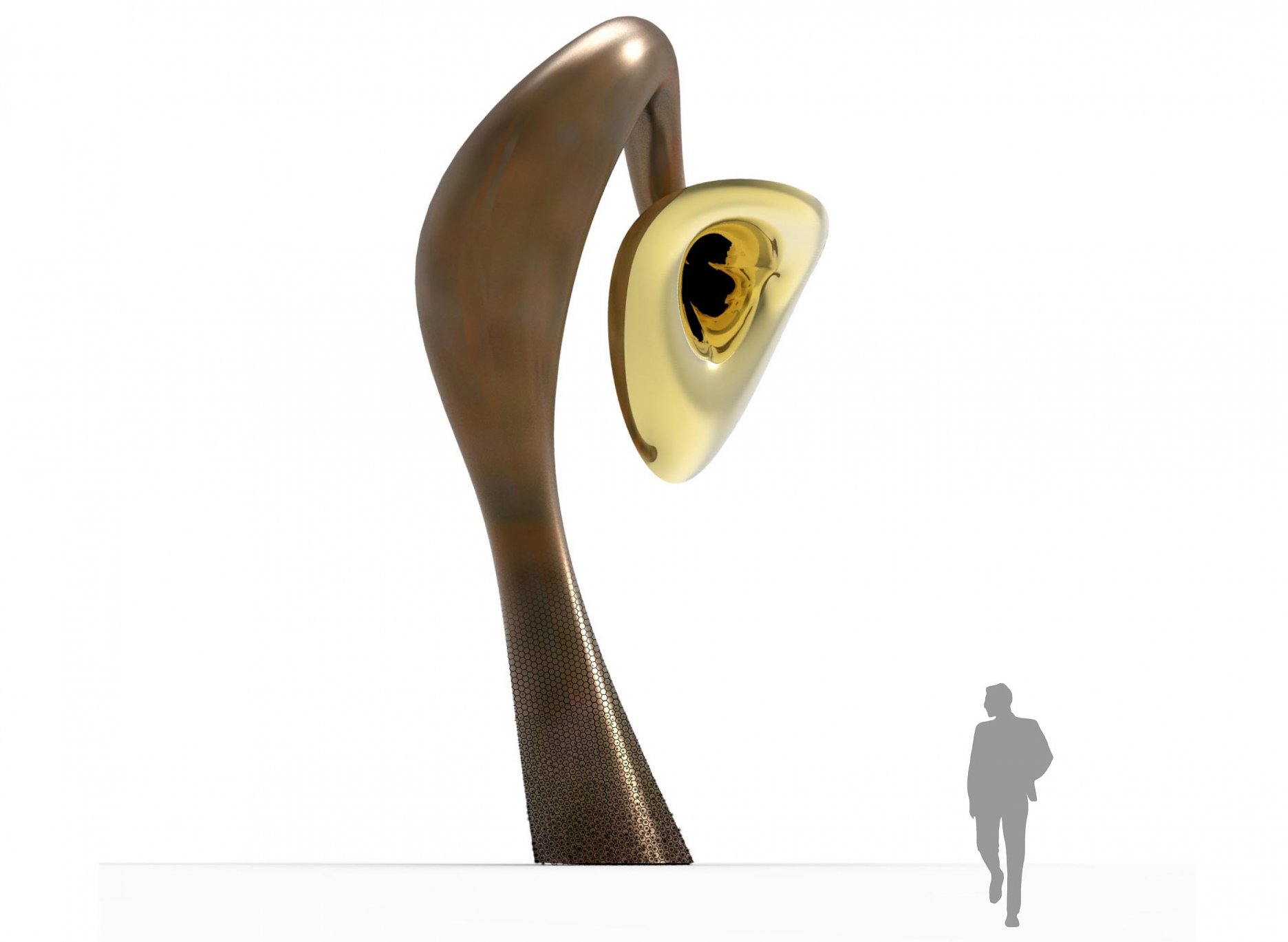 Návrh predkladá multimediálne vertikálne dielo so silným svetelným prvkom. Realizácia je inšpirovaná tvarom kukly a na základe 3D skenu modeluje novovytvorený plastický organizmus z vrstvených hliníkových platní, v ktorom prúdia energické svetelné toky LED svetiel. Komisia ocenila originalitu a eleganciu skulptúry, ktorá by svojou melodikou vytvárala kontra pozíciu k celkovému geometrickému rastru okolitej architektúry.