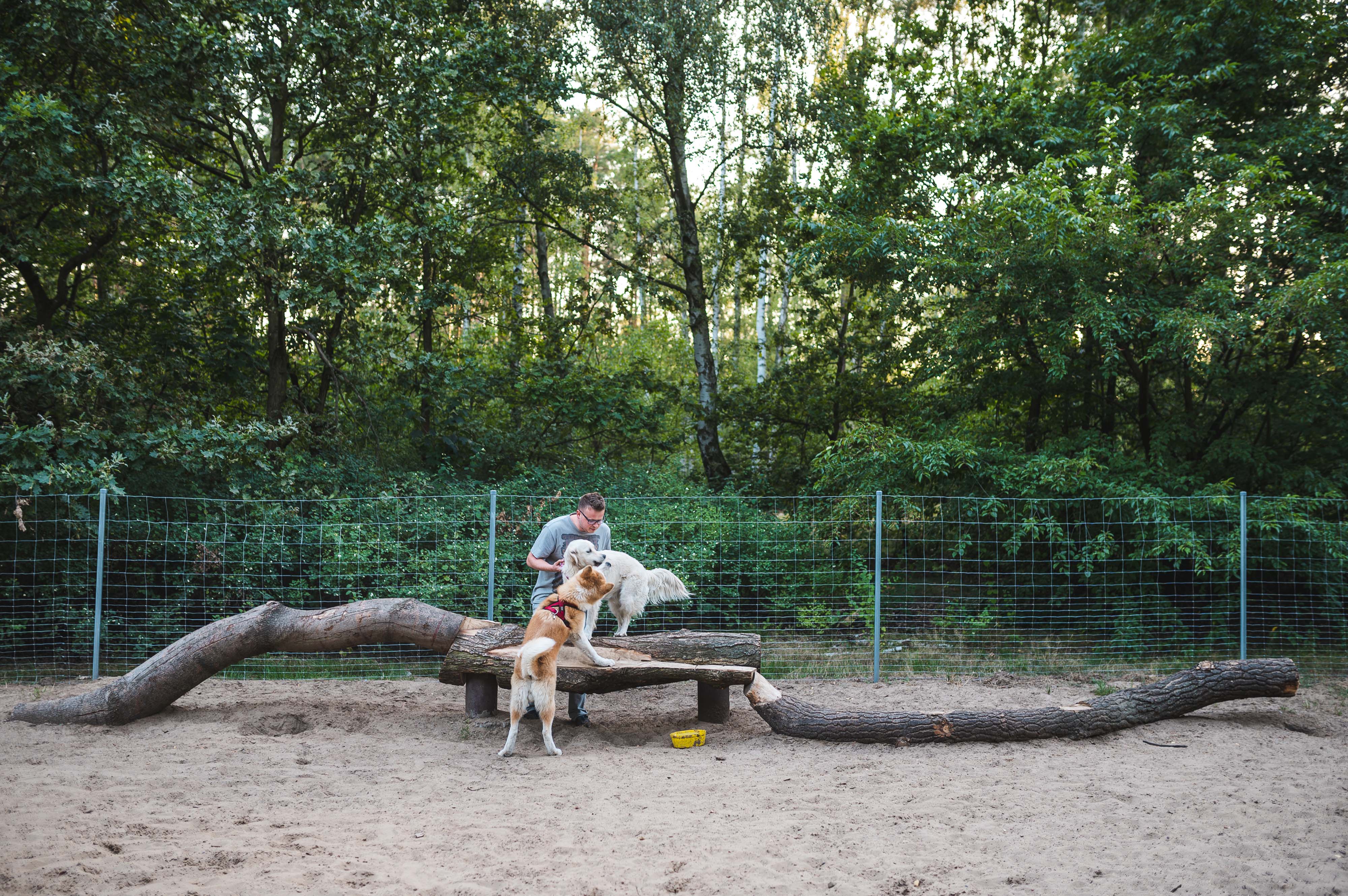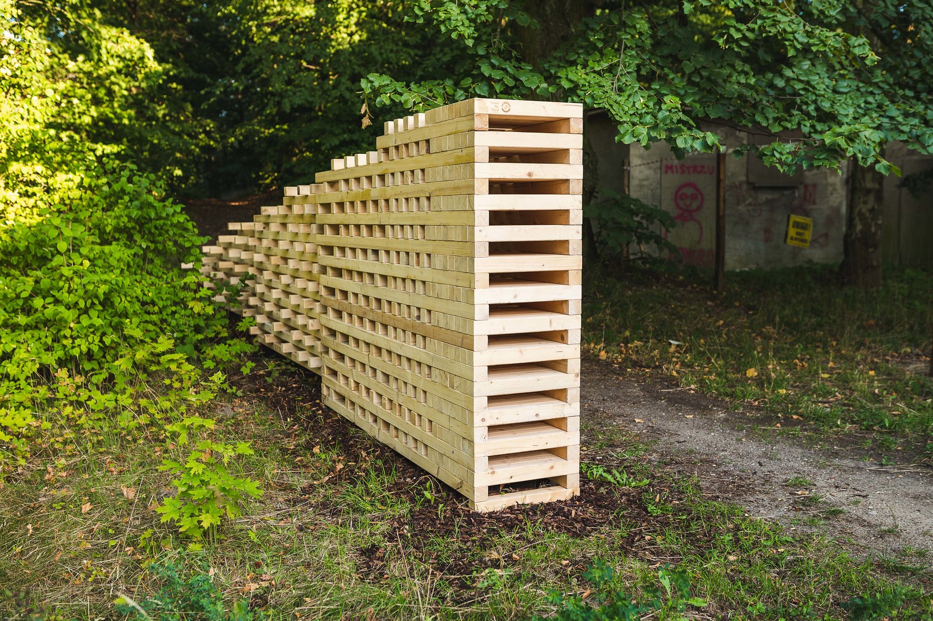 Juraj Hariš a Filip Ponechal zo slovenského ateliéru 2021 viedli skupinu študentov, ktorí navrhli drevené prvky určené pre psy vo výbehu pri jazere Rusałka. K lepšiemu porozumeniu štvornohých “klientov” prispela zvieracia behavioristka Dorota Rodziewicz, ktorá na projekte spolupracovala. Prekážková dráha pre psy vznikla pri vonkajšom obvode oploteného výbehu, zaberá tak minimum priestoru vyhradeného pre ostatné aktivity. Ako základný stavebný materiál poslúžilo neopracovné drevo. Použité kmene a konáre, ktoré pochádzajú z čistenia miestnych komunikácií, poskytli mestské lesy. Výsledkom je inštalácia, ktorá spája rôznorodé tvary, povrchy a textúry do atraktívneho celku, ktorý slúži nielen ako spomínaná prekážková dráha, ale aj ako miesto na oddych a sedenie.