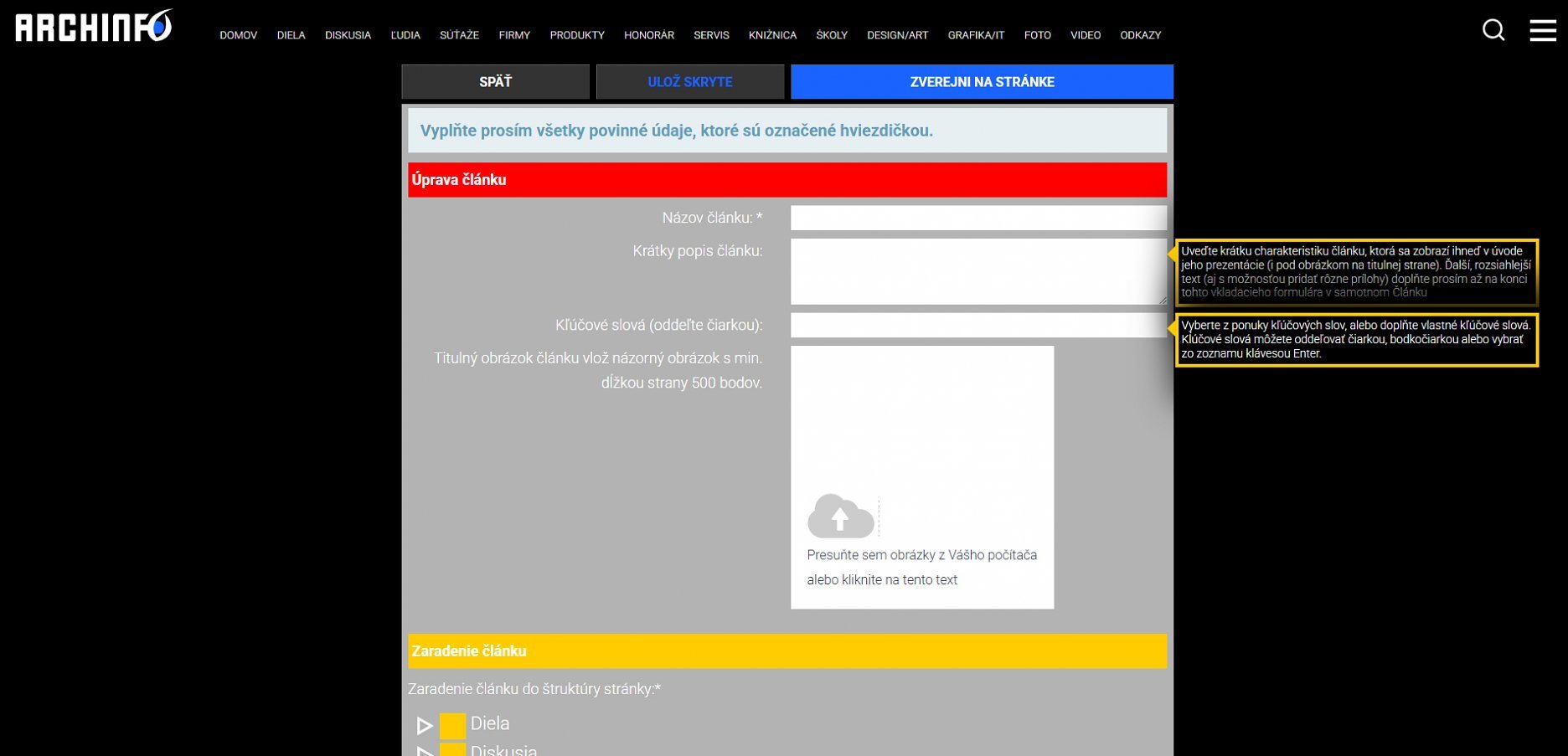 Po stlačení tlačidla VLOŽIŤ DIELO sa Vám otvorí formulár na vloženie.