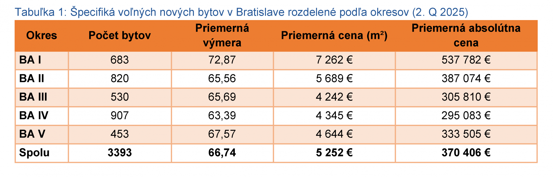 Priemerná ponuková cena novostavieb v Bratislave sa dostala na 5 251,54 €/m² s DPH. Po výraznejšom náraste o 4 % začiatkom roka, ktorý bol spôsobený najmä zvýšením sadzby DPH, sa v druhom štvrťroku tempo rastu spomalilo – cena vzrástla len o 0,73 %. Tento vývoj bol prevažne dôsledkom štrukturálnych zmien v ponuke spôsobených silným predajom a následným dopĺňaním trhu o nové jednotky.