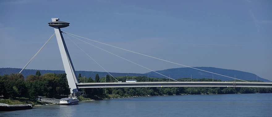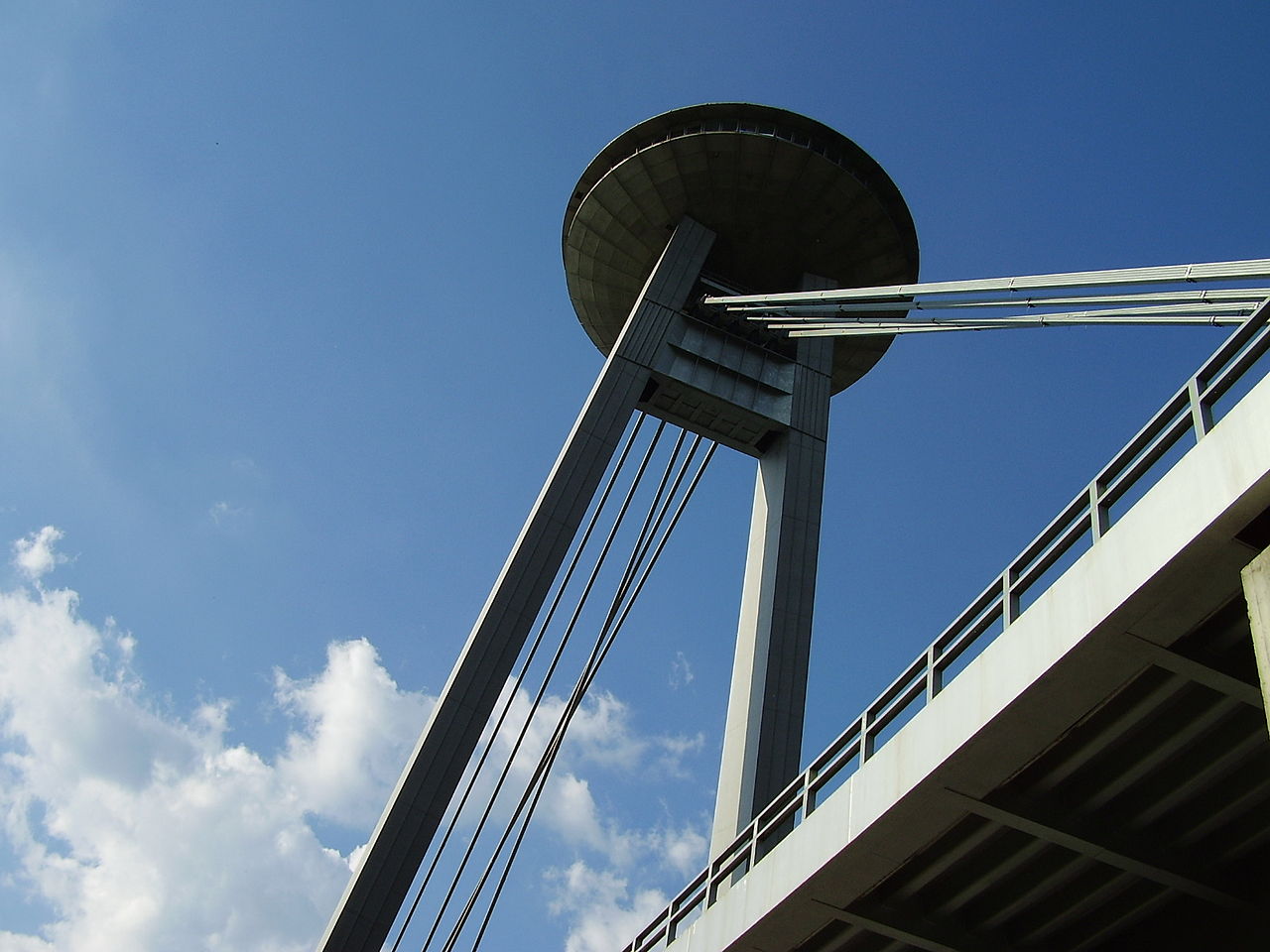 Most SNP v Bratislave bol prvým asymetrickým lanovým mostom postaveným na Slovensku a druhým tohto typu na svete. Dodnes je jediným mostom v Bratislave bez podpory v toku rieky. Most je zavesený na jedinom šikmom pylóne, nesúcom šošovkovitú hmotu kaviarne. Táto charakteristická figúra bola vnímaná ako inovatívna nielen v dobe vzniku, most aj dnes pôsobí ako vizionárske dielo tiahnúce k modernému futurizmu.