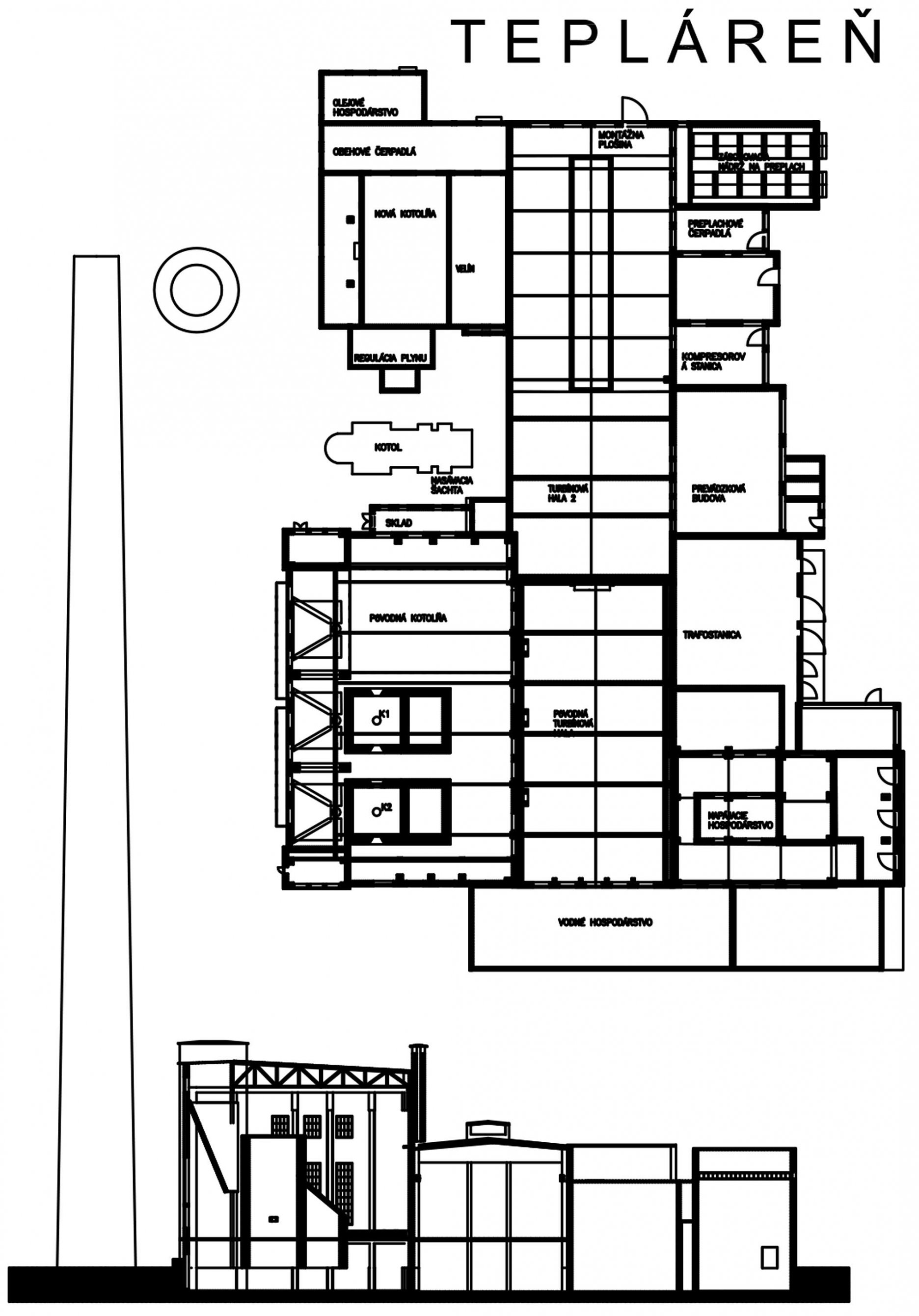 Objekt z rokov 1940 - 1942 sa nachádzal v industriálnej zóne Bratislavy pri rafinérii Apollo, neďaleko prístavu pri Dunaji. Pôvodný súbor obsahoval popri turbocentrále, hale, vodnom hospodárstve aj trafostanicu. S rozvojom technológií, kotlov a nárokmi na teplo sa areál rozrastal, centrálna pozdĺžna hala mala 80 metrov, bola zapustená do štrkového podložia. Poslednou etapou bola realizácia kogeneračnej jednotky, až nastalo obdobie degradácie areálu a celej priemyselnej štvrte v okolí. Nový majiteľ postupne asanoval celý areál a z Turbocentrály ostalo len torzo - ústredná monumentálna budova kotolne s časťou haly, ktoré sú zapísané v zozname NKP. Dnes v zóne Chalupkova prebieha nová zástavba, v areáli pôvodnej Teplárne ZSE sa stavajú tri vežové obytné domy. Objektu kotolne sa po čase dostalo uznania ako vrcholnej architektúre špičkového architekta obdobia polovice 20. storočia. Popis keramickej fasády, typickej pre Jurkovičove diela je v osobitnej časti tohto zborníka, podobne aj popis nového riešenia využitia hmoty, objemu pôvodnej kotolne a vedľajšej budovy.