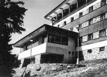 Hotel kosodrevina na dobových fotografiách (Zdroj: Register modernej architektúry Slovenska, ÚSTARCH):