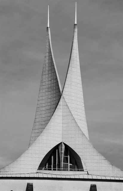 Jak jsme si řekli na konci minulého dílu (viz zde), neoblíbená stalinská architektura, zvaná sorela, končí na sklonku padesátých let. Světová výstava v Bruselu v roce 1958 byla pro naše umělce, samozřejmě nejen architekty, ale také výtvarníky, designéry, hudební skladatele, divadelníky i filmaře skvělou příležitostí poměřit po dvou desetiletích své síly s kolegy ve svobodném světě. Vítězný soutěžní návrh na československý pavilón byl dílem tří představitelů meziválečné avantgardní architektury Františka Cubra, Josefa Hrubého a Zdeňka Pokorného. Zejména druhý z nich měl za sebou významné stavby, např. projekt funkcionalistického obchodního domu Bílá labuť (1938-1939), k principům funkcionalismu se pak vrátil již v letech 1956-1957, kdy rovněž v Praze postavil Dům módy na Václavském náměstí, byť ještě zdobený reliéfem ve stylu socialistického realismu. Náš pavilón v Bruselu byl příkladem nejmodernější architektury té doby a vyrovnal se skvělým kreacím zahraničních projektantů. Měl ocelovou konstrukci a plášť ze skla a zlatavé skleněné mozaiky. Tvořily ho tři hranoly, propojené prosklenými křídly. Ještě odvážnější byla sousední restaurace, jejíž elegantně prohnutá partie byla vyzdvižena nad terén subtilními ocelovými sloupy.