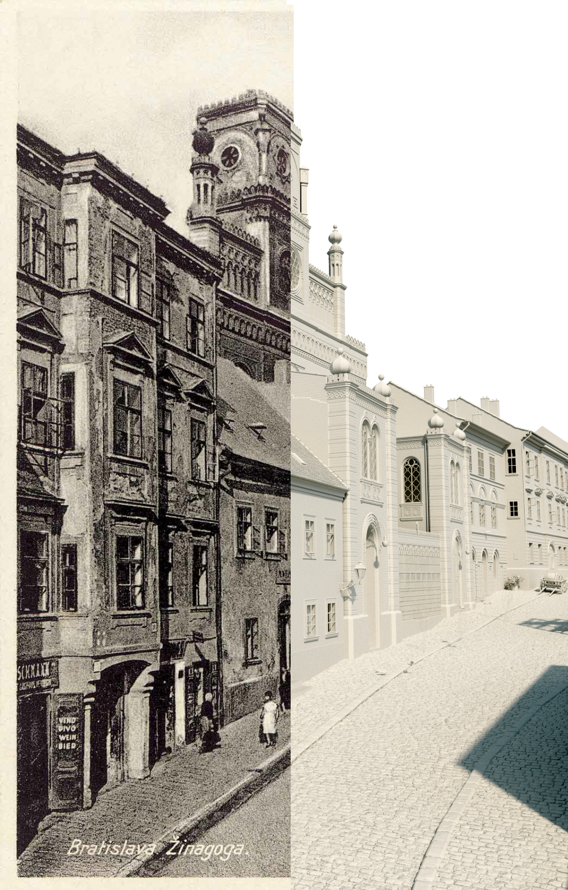 Ako sa dá prezentovať kultúrne dedičstvo, ktoré nie je možné inak rekonštruovať? Jednou z možností je virtuálna prezentácia digitálneho modelu, o ktorej sme písali napríklad tu. Medzi aktuálne projekty, patrí aj virtuálna rekonštrukcia zaniknutých miest Bratislavy, ktorá je v našich podmienkach unikátna svojím rozsahom. V prevej etape iniciatívy neziskovej spoločnosti JEWROPE, ktorá sa začala realizovať v roku 2011 sa podarilo zdigitalizovať zaniknutú Vydricu a pôvodné Rybné námestie a súčasne objekt asanovanej neologickej synagógy. Virtuálnu prehliadku si môžete pozrieť na stránke www.stratenemesto.sk. Prehliadka otvára pre návštevníka pohľad do historických častí mesta, ktoré boli zbúrané v dôsledku výstavby Mosta SNP. V súčasnosti pracuje iniciátor projektu na zabezpečení prostriedkov pre druhú etapu projektu, v ktorej plánuje spracovať do digitálnej podoby ďalšie zaniknuté časti mesta. Spomínaná druhá etapa Strateného mesta predstaví Zámockú ulicu v rôznych historických etapách. Súčasťou projektu, bude aj “obnova” Veľkej ortodoxnej synagógy z roku 1863, ktorá bola spolu s pôvodnou zástavbou ulice zbúraná na začiatku 60. rokov minulého storočia. Digitalizácia zaniknutej časti mesta umožní virtuálnu prechádzku po pôvodnej Zámockej ulici, pohľad do interiéru synagógy a odhalí viaceré doposiaľ nepublikované historické dokumenty. Termín ukončenia projektu je plánovaný na jeseň 2022.