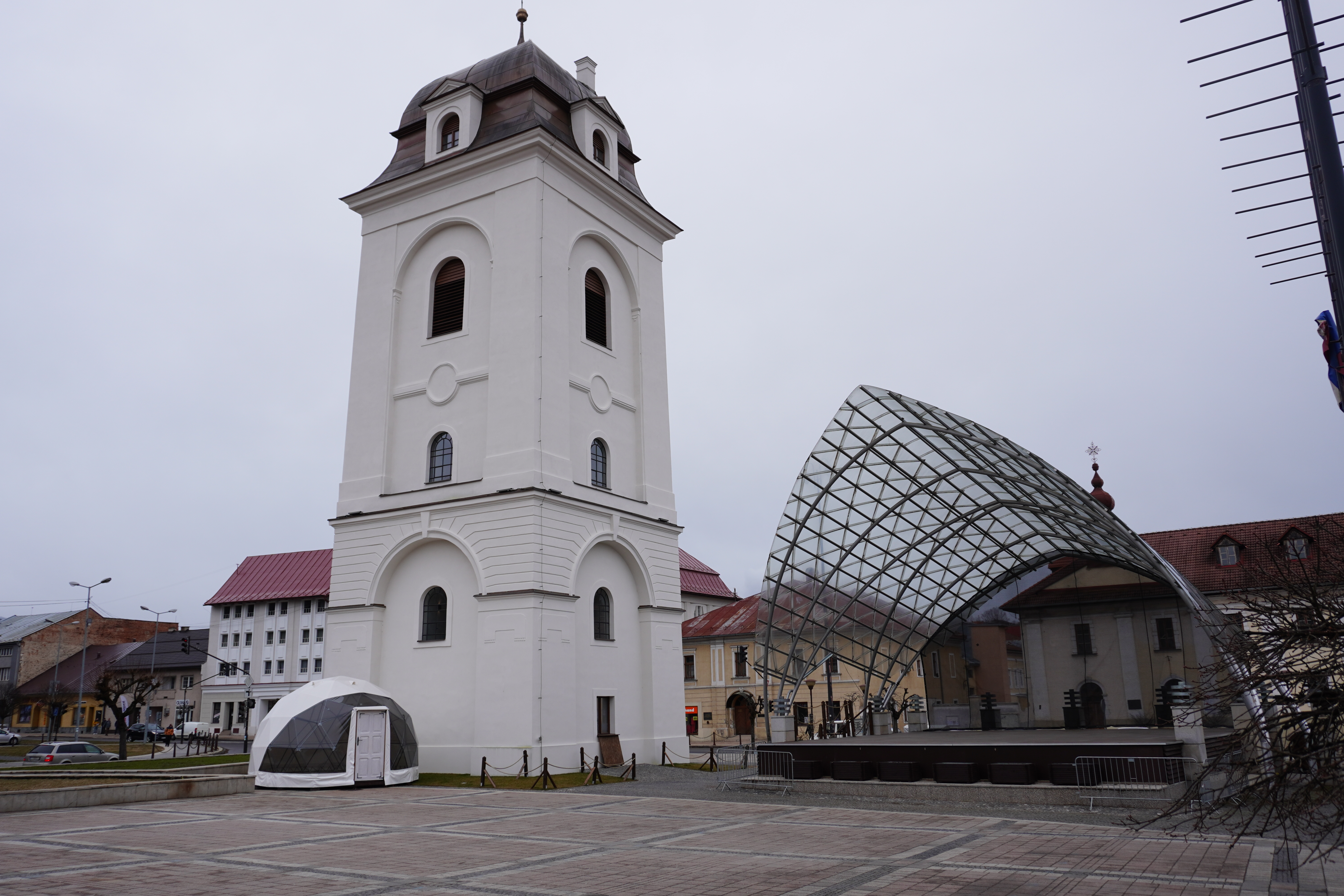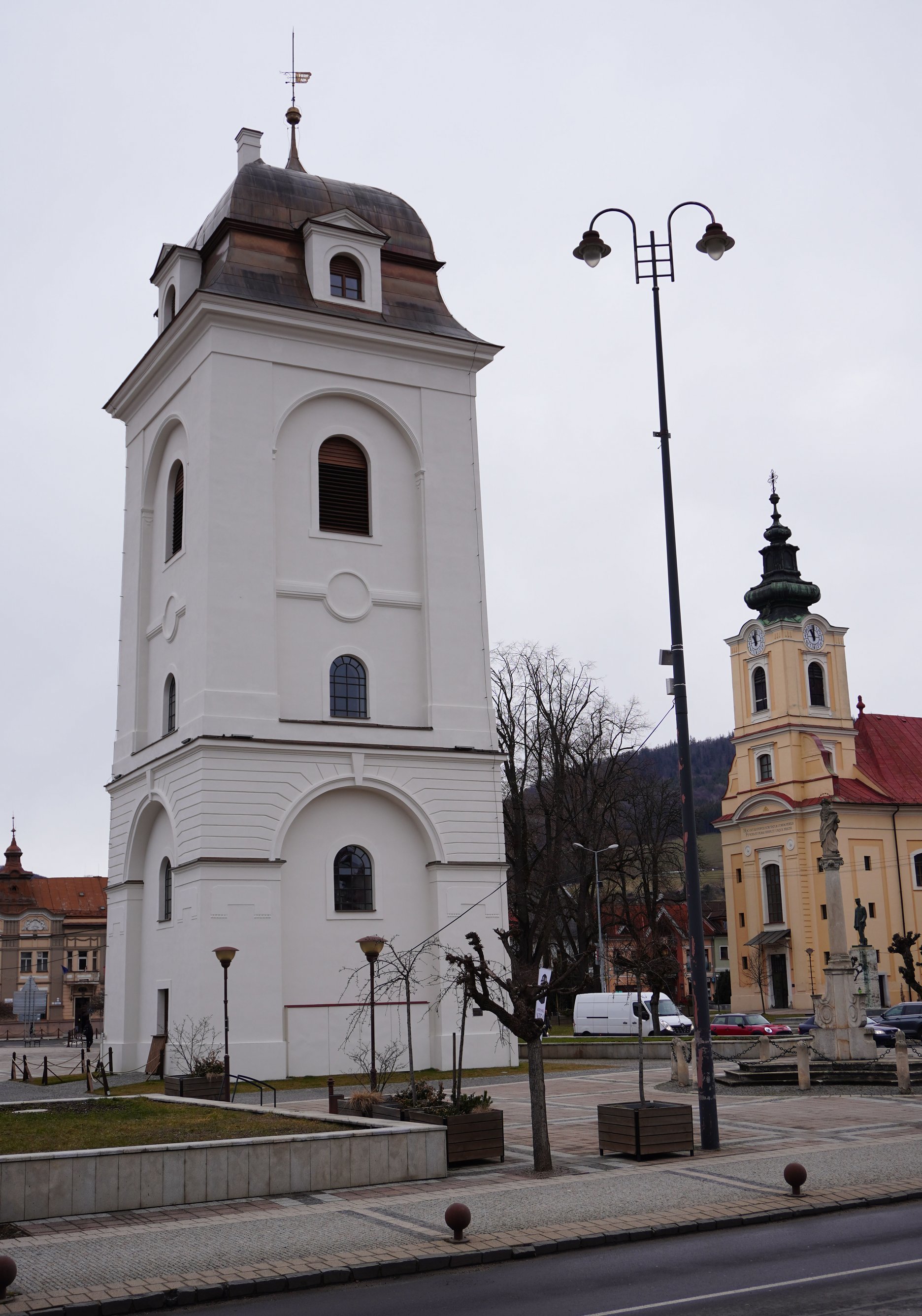 Jej klasicistický výraz dotvárajú plastické prvky omietok fasád. Poschodia sú prístupné vnútornými schodiskami. Slovenskou raritou je byt zvonára a strážnika, umiestnený pod strechou priamo vo veži. Svoju funkciu tu vykonával až do sedemdesiatych rokov 20. storočia (!). Srdcom veže sú tri zvony, ktoré spolu vážia takmer dve tony. Najstarší a najväčší pochádza ešte z konca 18. storočia, teda obdobia pred samotnou stavbou veže. Nápis na ňom pripomína ničivý požiar mesta v roku 1779. Dva menšie z roku 1924 sú náhradou za pôvodné, ktoré za monarchie „zrekvírovali“ v prospech armády a roztavili na výrobu zbraní. Zvony nie len zvolávali k modlitbám, ale aj ohlasovali nebezpečenstvo, či vyzváňali na slávu počas výnimočných udalostí.