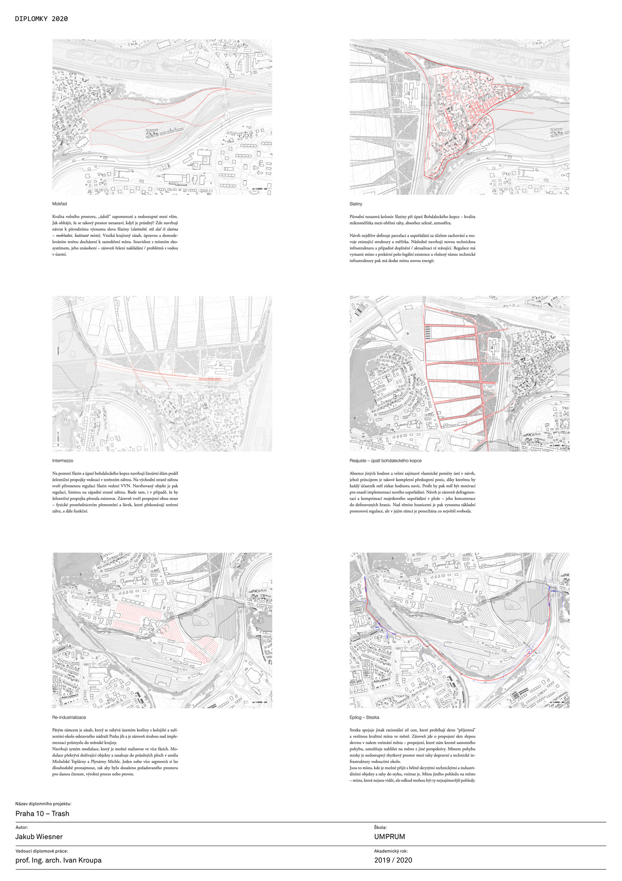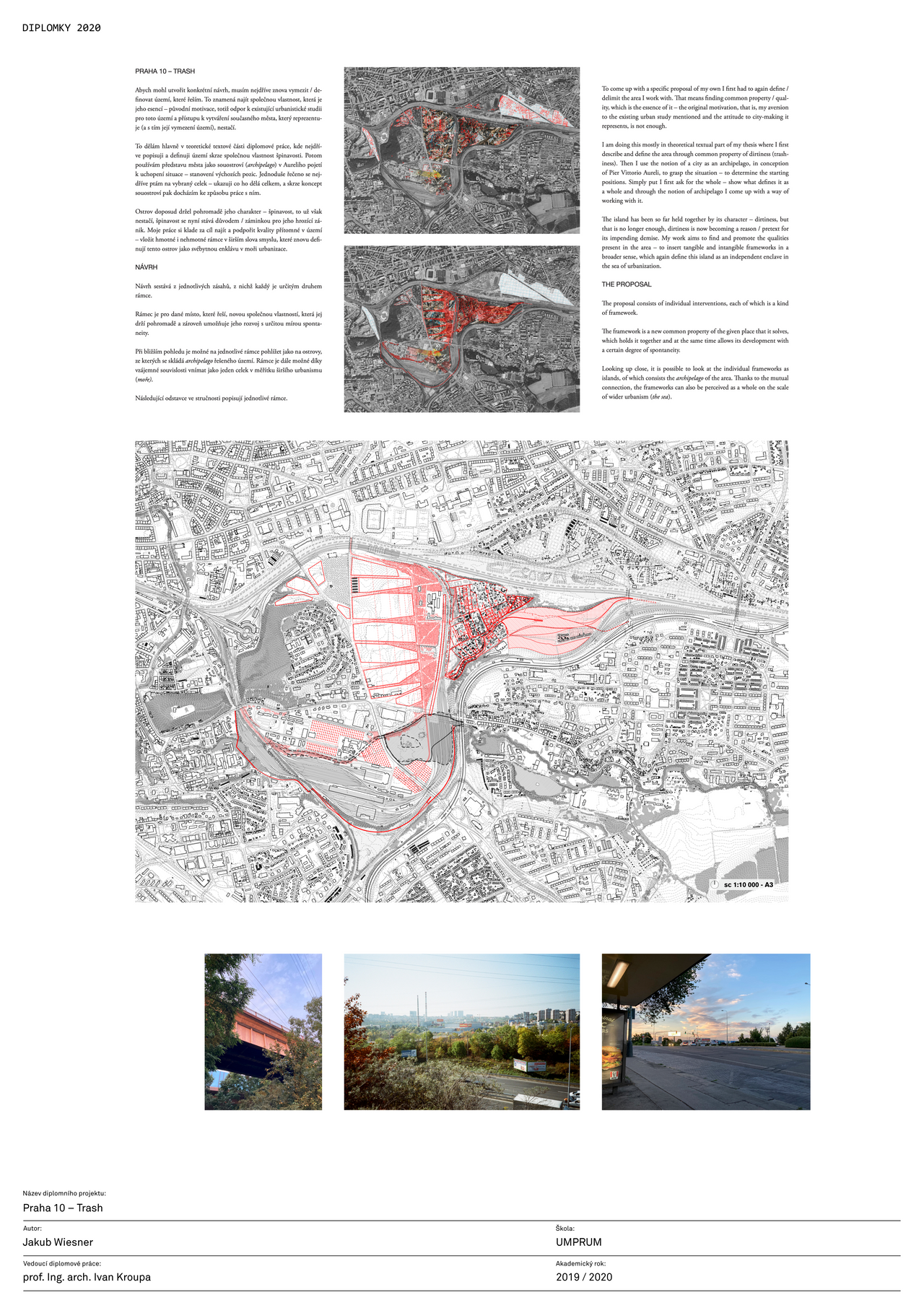 Prvú cenu získal absolvent Vysokej školy umeleckopriemyselnej v Prahe Jakub Wiesner za projekt Praha 10 - Trash. Pod vedením Ivana Krúpu navrhol urbanistické riešenie lokality v Prahe 10, pôvodne periférneho územia, ktoré sa dostáva do popredia záujmu developerov. Práca je polemikou s aktuálnou víziou zastavania územia blokovou zástavbou. Porotu projekt zaujal „systematičností a názorově uceleným přístupem, cíleně narušuje v současném urbanismu převládající přístupy a projekční dogmata dnes spíš jen komerčně motivované urbanizace periferních a rozvojových území města.“ Namiesto toho „upozorňuje na význam různorodosti, vychází z jejich jedinečnosti.“ Otvára diskusiu o tom, že „město může být urbanizované zcela podle jiných metod, ve kterých se projevuje vnímání života a městské krajiny, lidské měřítko a jistá forma poetismu.“ Projekt podľa poroty ukazuje, ako zachrániť zdanlivo neveľmi hodnotné územie pražskej periférie pred klasickou developerskou zástavbou. Nejde pritom len o „ztvárněnou vizi, která objevně zachycuje genia loci a dostává se k jeho podstatě, ale především o způsob a detailní návod, podle něhož lze postupovat. Místo dostává šanci, kterou by byla škoda nevyužít.“