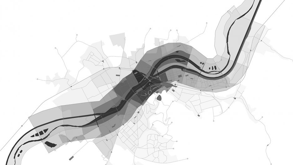 TOMÁŠ: V mojej práci som sa sústredil na široké spektrum verejných priestorov, ich využitie a význam v najbližšom okolí, ale aj ich presah do hlbších vrstiev mesta a ku rieke.