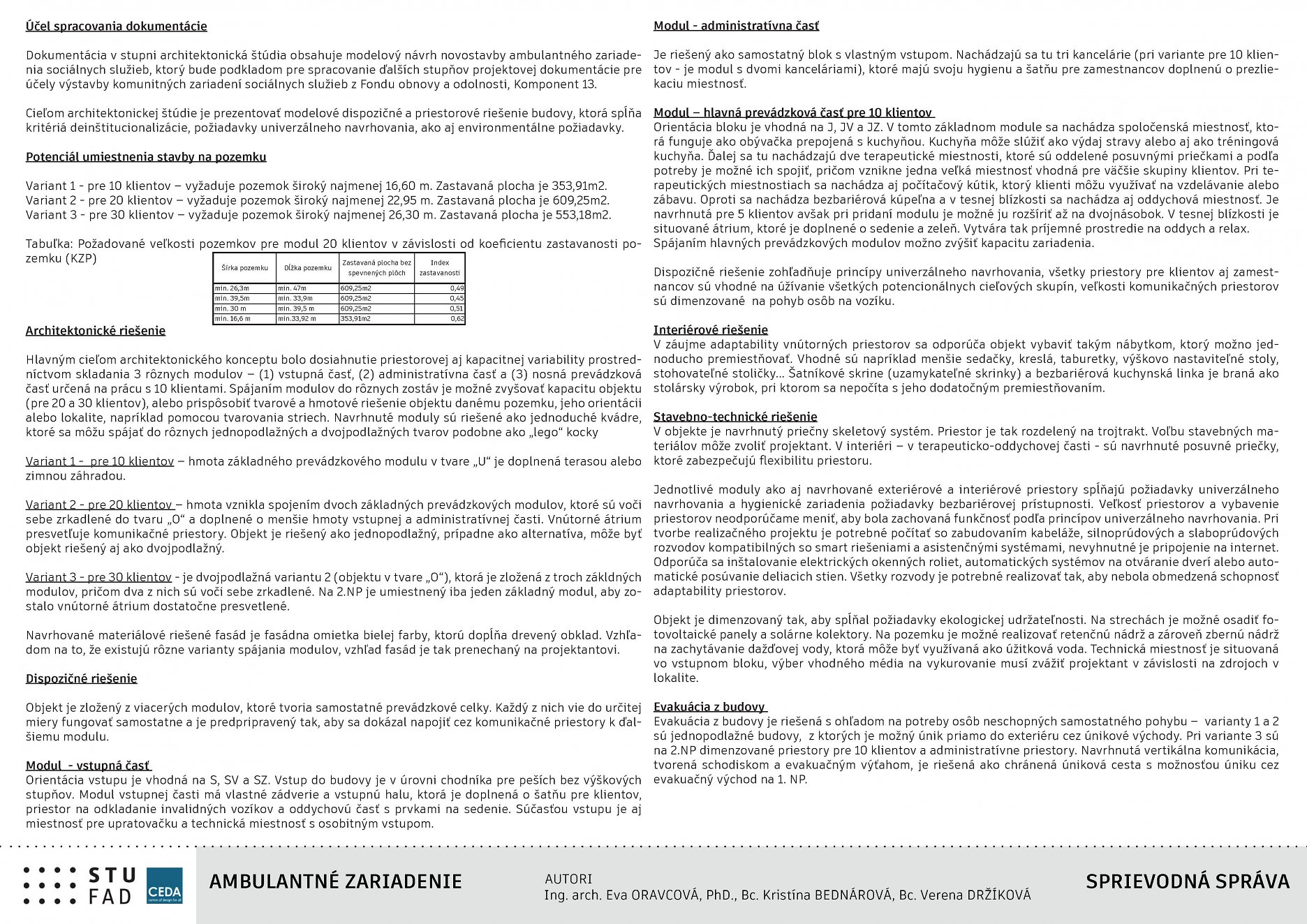 Autori: Ing. arch. Eva ORAVCOVÁ, PhD., Bc. Kristína BEDNÁROVÁ, Bc. Verena DRŽÍKOVÁ