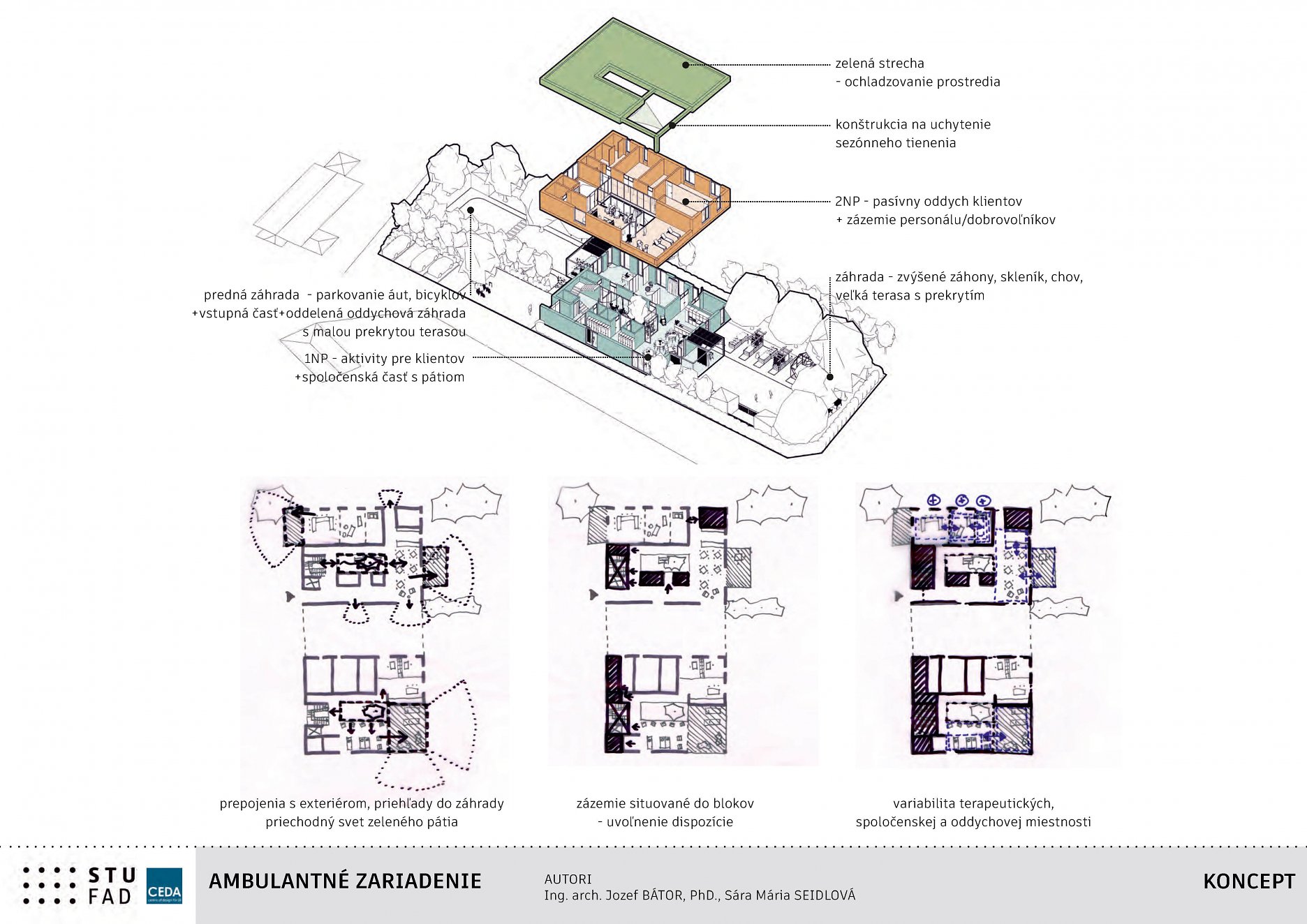 1. Architektonické riešenia ambulantných zariadení sociálnej služby - modelové riešenia pre rôzne typy zástavby, orientácie a svahovitosti pozemku.