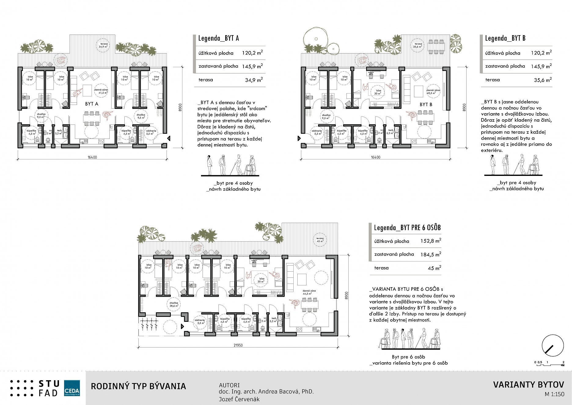 V katalógu štúdií “Zariadenia poskytujúce pobytové sociálne služby s kapacitou do 12 miest v rámci Plánu obnovy a odolnosti SR“, vypracovanom na pôde FAD STU bolo vo výsledku navrhnutých 9 typov štúdií (A - I).