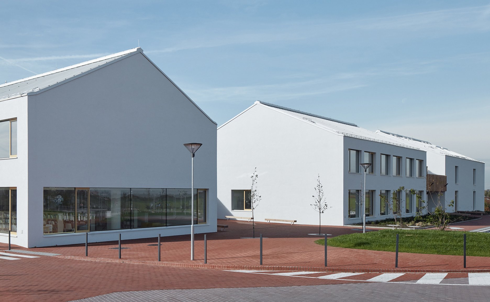Novostavba školy pre rýchlo rastúce sídla južne od Prahy doplnila akútne chýbajúcu infraštruktúru. Školský areál plní okrem svojej primárnej funkcie aj dôležitú úlohu komunitného centra. Výsledné architektonické riešenie vzišlo z dvojkolovej verejnej súťaže, usporiadanej na prelome rokov 2013 a 2014, ktorej sa zúčastnilo 61 tímov. Projekt ateliéru Studio SOA architekti je v súčasnosti najväčšou pasívnou stavbou na území ČR.