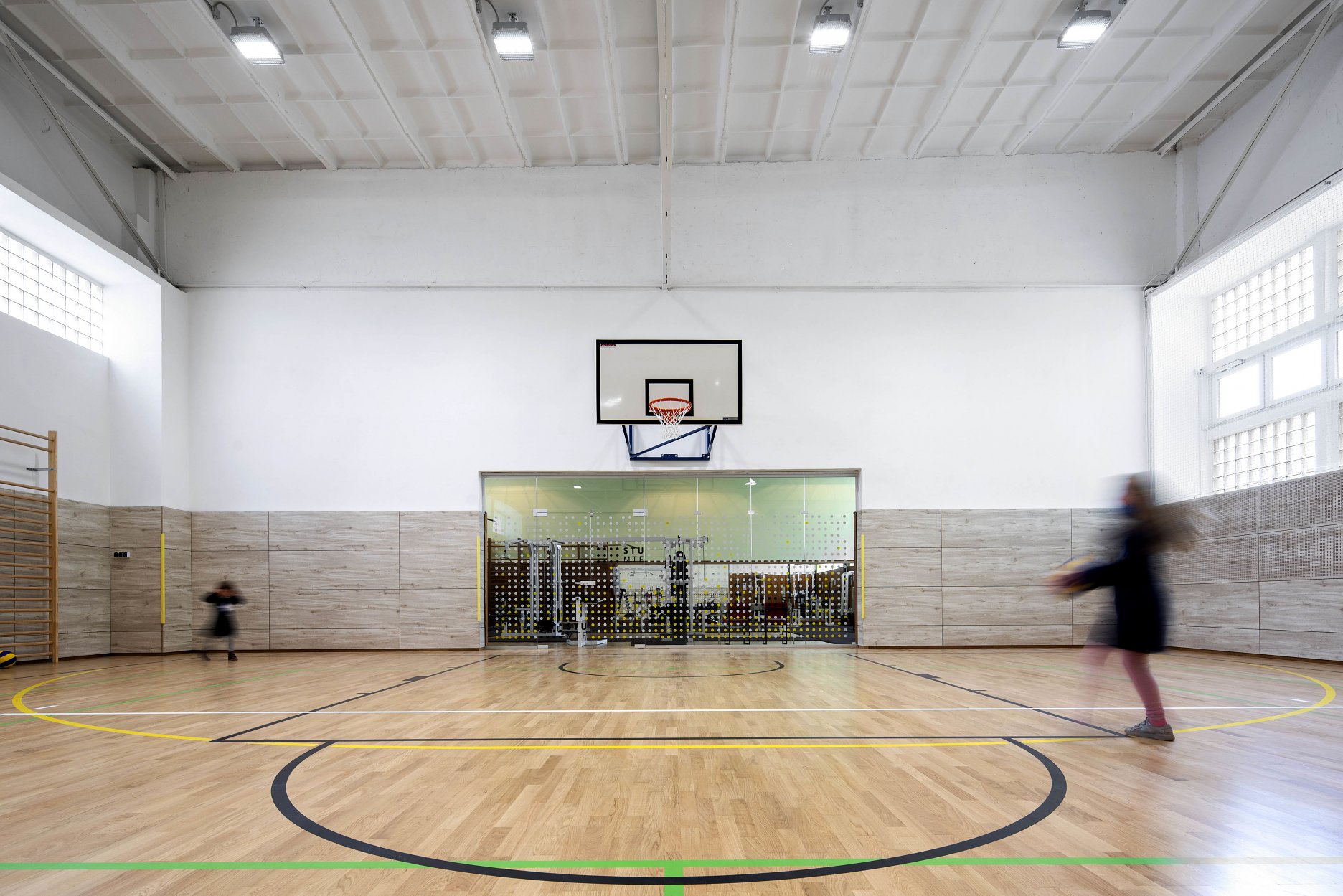 Dielo, ktoré využíva vo veľkej miere pôvodný stavebný fundus. Utilitárna estetika štandardných päťdesiatročných konštrukcií sa dočkala nového estetického i funkčného “faceliftu”. Zjednocujúci biely náter, transparentné výplne otvorov, bezbariérový prístup, alebo kvalitné športové povrchy a obklady výrazne pozdvihli kvalitu vnútorného prostredia multifunkčného športoviska. Pôvodné priehradové nosníky a stropné panely pripomínajú obdobie vzniku objektu.