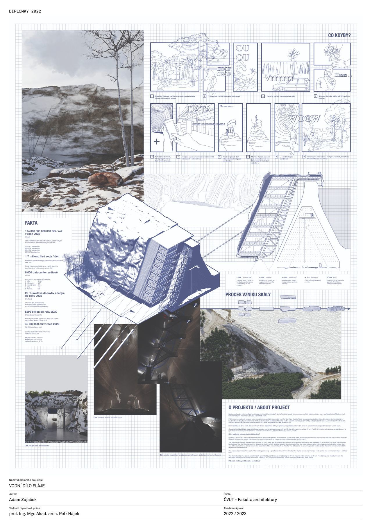 Porota vysoce oceňuje lehkost, se kterou autor sděluje a graficky ilustruje své myšlenky. Osazení vodního díla Fláje novou funkcí datového úložiště, která vytváří funkční synergii, je chytré a nepůsobí ani příliš utopicky. Zajímavá je i forma maskování této ryze technické nové formy jakousi digitalizovanou skálou. Projektu přejeme, aby i díky ocenění sklidil zasloužený mediální ohlas a byl pokud možno co nejvíce prezentován a viděn.