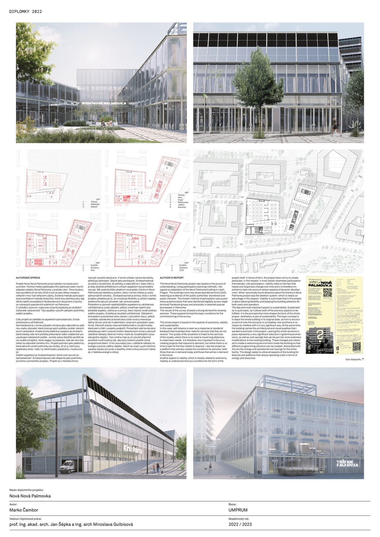 Diplomová práce byla oceněna porotou za svůj přístup k tématu revitalizace nedostavěného objektu na Palmovce. Autor představil suverénní, technicistní přístup k řešení, který však zároveň působí čistě a elegantně. Objekt získal v důsledku návrhu spíše industriální charakter, což přispělo k celkové atmosféře projektu. Jedním z význačných prvků návrhu bylo využití membránové fasády, což obohatilo projekt o příjemnou fluidní atmosféru. Nelze opomenout ani důležitý aspekt interiéru, a to práci se světlem. Celkově lze tuto diplomovou práci charakterizovat jako excelentní příklad kvalitního a profesionálního přístupu k problematice revitalizace a přeměny prostoru. Práce byla komplexně zpracována, a tak splnila očekávání, že škola připraví studenta pro praxi.