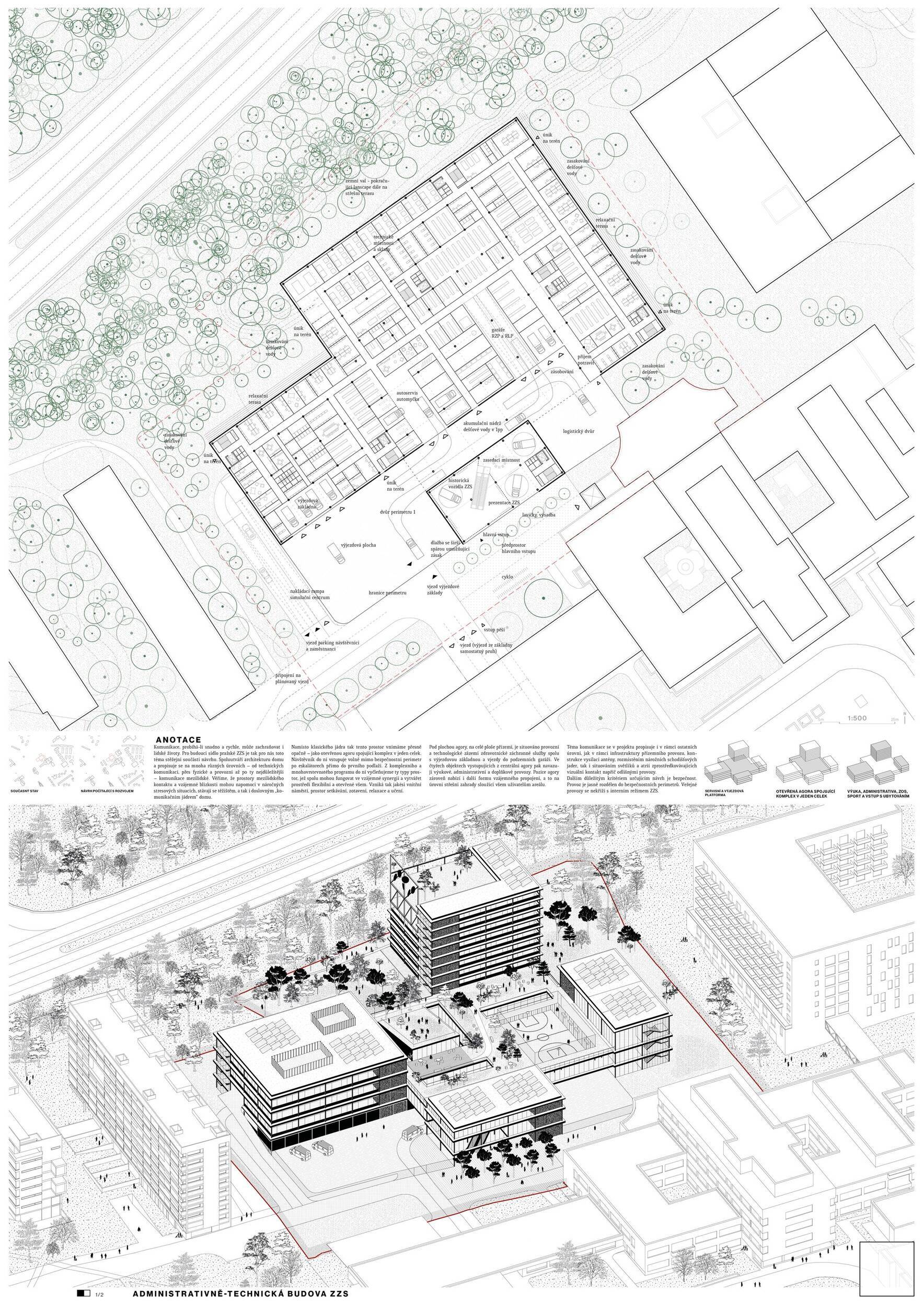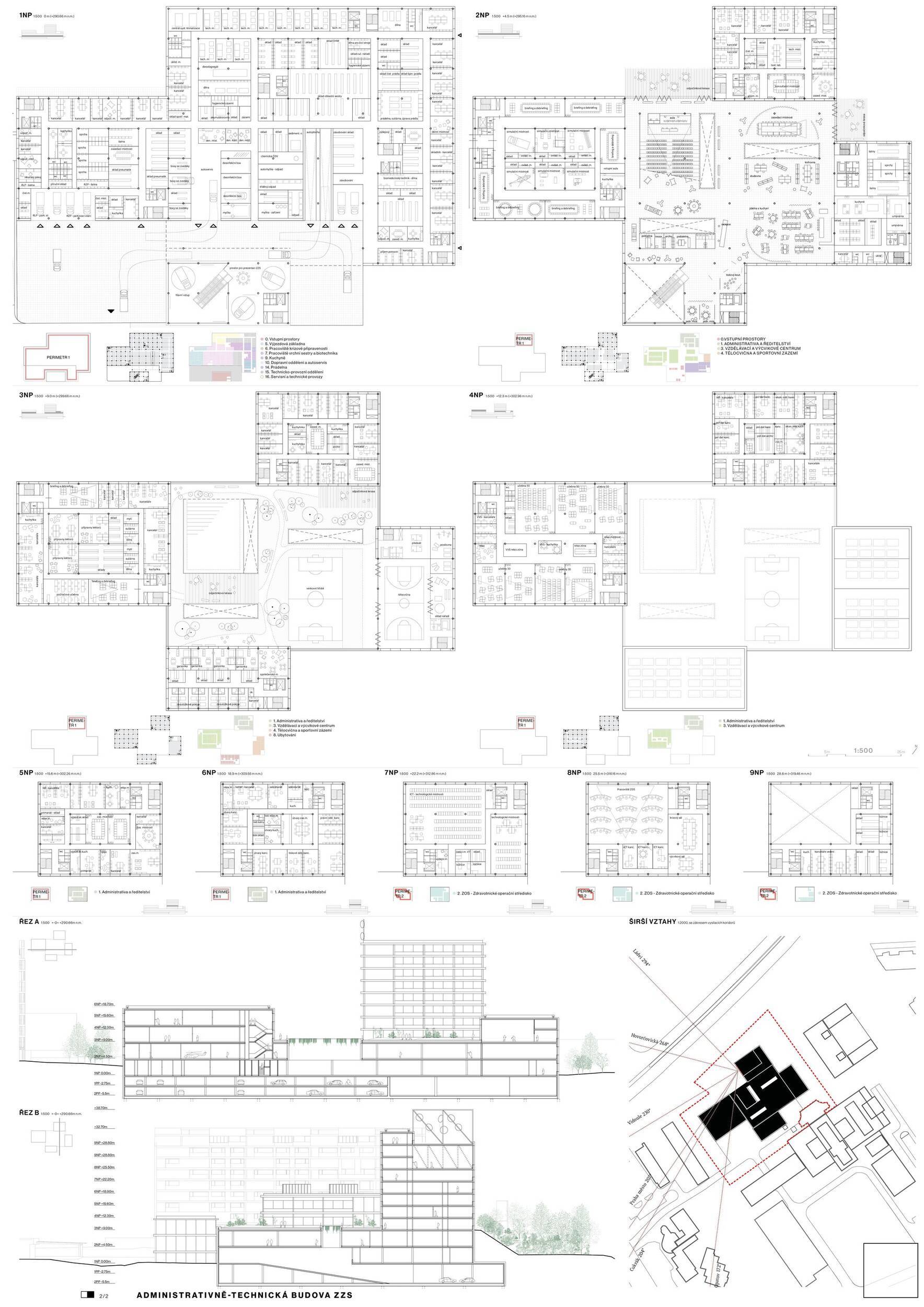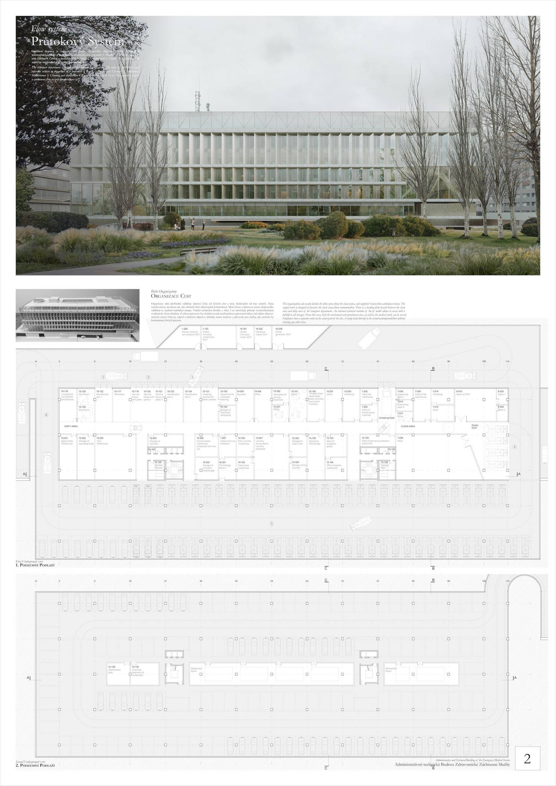 Porota oceňuje vývoj a úpravy od prvního kola, snahu vytvořit příjemné pracovní prostředí, racionalitu návrhu a také celkový výraz s konstrukčními výjimkami u tělocvičny a auly. Také dopravní koncept a myšlenka oddělit automyčku a opravnu do samostatného objemu působí jako silný nápad a velmi dobře funkční řešení. Vítána je také snaha o snížení prosklení fasády, ale z návrhu se tak zároveň vytratila síla přehledné struktury s měnícím se rytmem. Navržené dispoziční řešení má určité slabiny zejména v dodržení požadovaných bezpečnostních perimetrů. Návrh ZOS působí, že mu nebyla věnovaná dostatečná pozornost vzhledem k jeho významu k budově. S ohledem na nízkou hloubku budovy je také diskutabilní nutnost vloženého atria. Navržená jednoduchá a kompaktní forma působí v urbanistickém kontextu velmi dobře, nicméně její proporce zároveň představují omezení pro prostorové uspořádání programu, která nelze překonat (například funkčnost/pozice ZOS nelze zlepšit bez závažných změn dispozic).