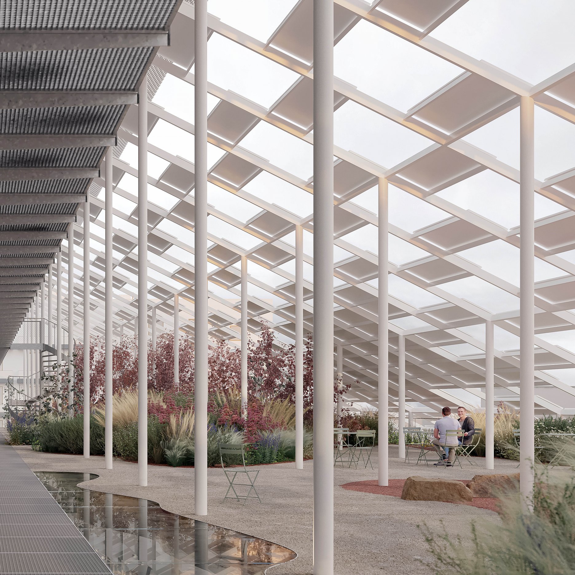 Porota oceňuje strategické i symbolické umístění ZOS na střeše i jasný formální jazyk návrhu. Budova působí jako stavba infrastruktury, která byla navržena pro konkrétní kontext a vhodně odráží svou funkci. Fotovoltaické zastřešení venkovních teras sloužící zároveň ke stínění jižní fasády nabízí nový zážitek pro venkovní odpočinek a pocit ochrany. Jeho koncept byl vypracován a prezentován dostatečně přesvědčivě a porota v něm vidí potenciál při dalším rozvoji.