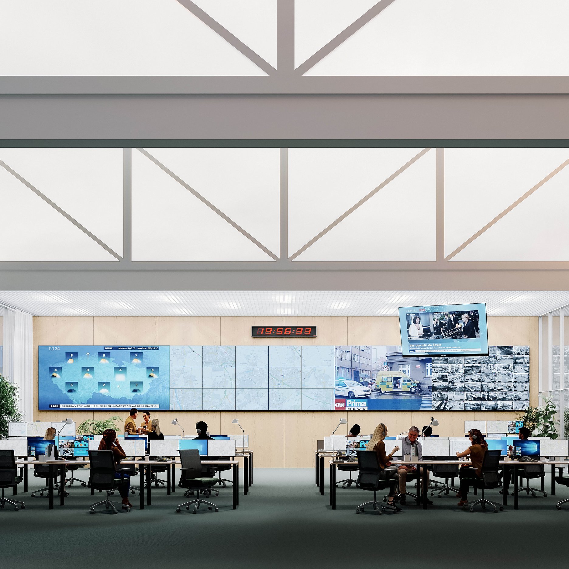 Návrh nabízí pragmatickou, funkční a logicky uspořádanou budovu, která současně poskytuje svým zaměstnancům prostory a prostředí pro odpočinek nezbytný při jejich často stresující práci. Představuje robustní a kompaktní budovu sestávající z několika na sebe položených programových bloků. Rozdílná šířka (hloubka) těchto bloků umožňuje jejich vzájemný posun, což vytváří prostor pro velkorysé střešní zahrady. Nejdůležitější část budovy – operační centrum – působí jako maják nad městem.