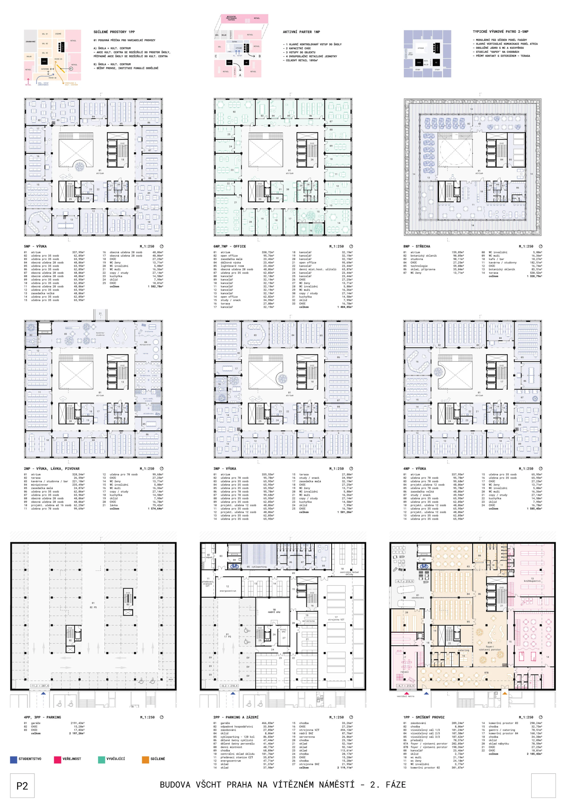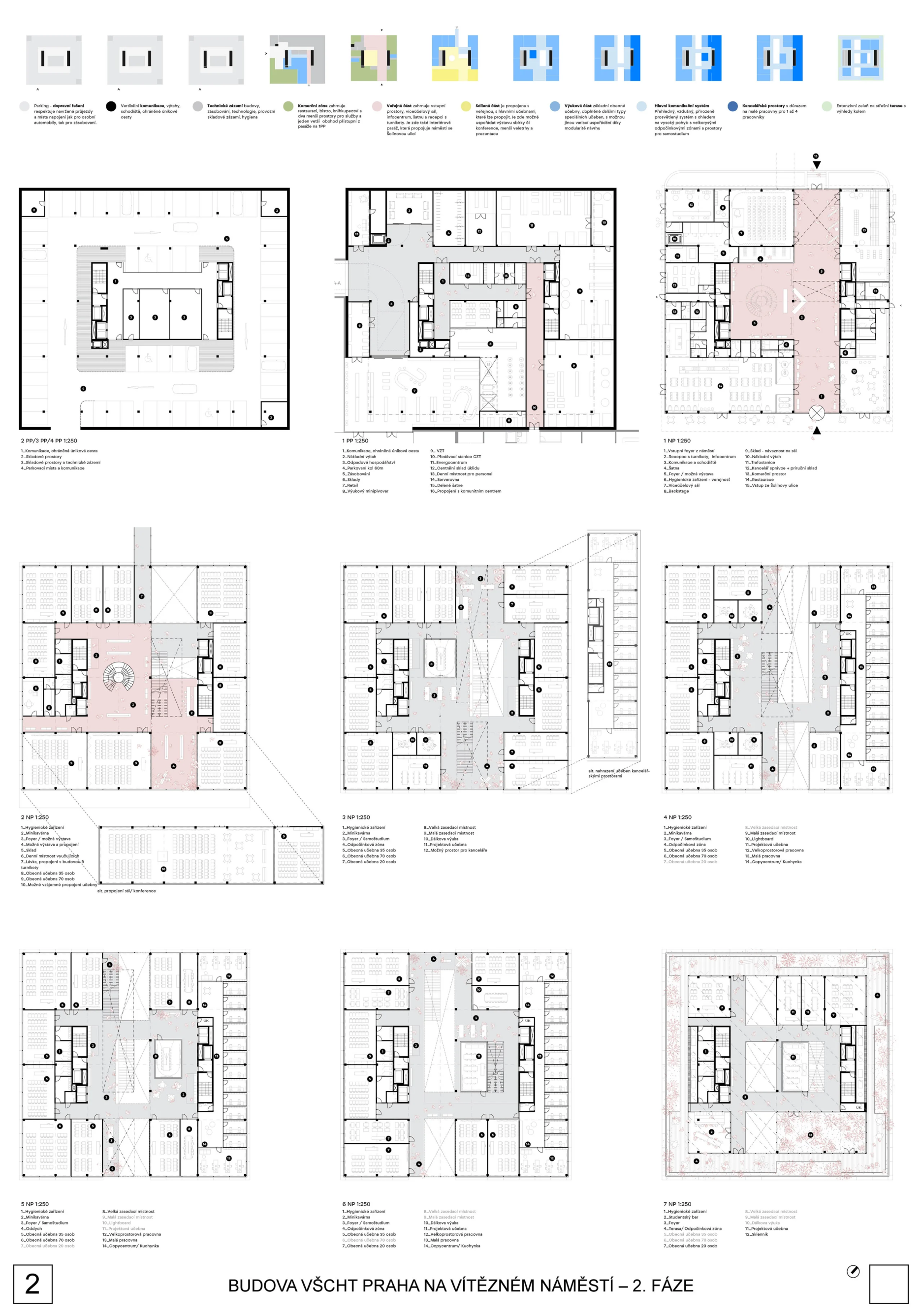 Z širšího pohledu jde pak o zajímavý náhled na řešení univerzitní stavby v centru města, jejíž kvality lze v budoucnosti dále rozvíjet. Stavba by tak měla být důstojným partnerem jak plánovaného developmentu, tak univerzitního kampusu. Porota ocenila především koncepci, která výškově dělí stavbu na tři části. Ty jsou jasně čitelné jak architektonickým, tak konstrukčním a dispozičním řešením. Výrazný kubický objem, který maximálně využívá regulační limity, je vylehčen vloženým superpatrem. To vnáší do jinak utilitárního řešení zajímavý prvek, který by měl sloužit k interakci mezi univerzitním prostředím a veřejným prostorem. Stejné kvality prokazuje návrh i v prostoru přízemí a parteru stavby.