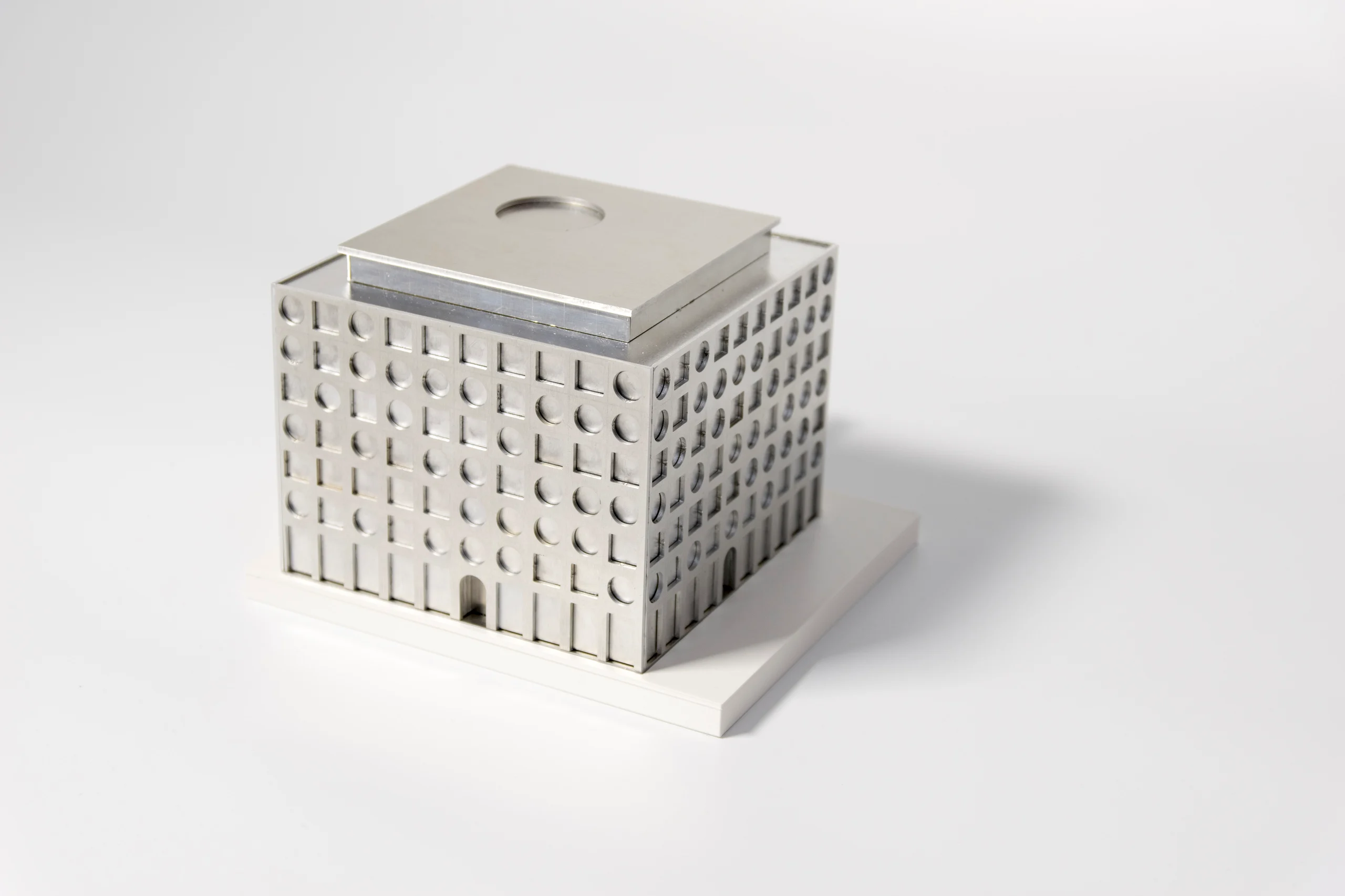 Porota na tomto návrhu oceňuje zejména velmi sofistikovaný vnější výraz stavby, který definuje její téměř abstraktní charakter. Metalický plášť komponovaný do struktury pravidelné čtvercové mřížky je doplněný o výrazná okna dvou geometrických tvarů. Tento motiv, včetně možného multimediálního interaktivního prvku je signifikantním autorským dílem a pro daný typ stavby vhodnou interpretací vnitřního provozu. Relativně jednoduchými prostředky tak naplňuje požadavky na architekturu i urbanismus, které odpovídají zadání.