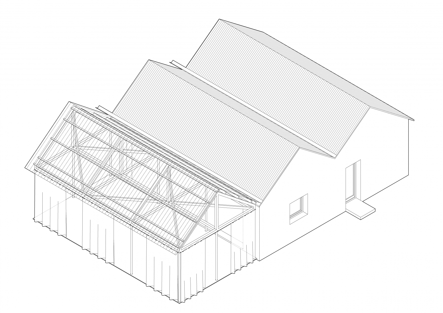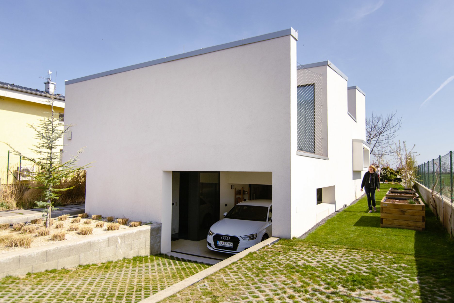 "Dom svojou líniovou hmotou a priečelím nadväzuje na tradičnú vidiecku zástavbu okrajovej časti Bratislavy. Postavený je na mieste pôvodného rozobraného domu, z pôvodného priznaného režného muriva, ktoré tvorí aj jeho hlavnú interiérovú charakteristiku. Samotné členenie domu je inšpirované trojdielnym slovenským domom kde centrálnym priestorom sa stáva „pitvor” orientovaný do záhrady, ktorá je jeho neoddeliteľnou súčasťou. Výrazným konštrukčným prvkom je aj tvarovanie krovu, ktoré umožňuje prístup východného svetla pomocou svetlíkov tak, aby nenarúšal pohľadovú kontinuálnu plochu strechy zo záhrady."