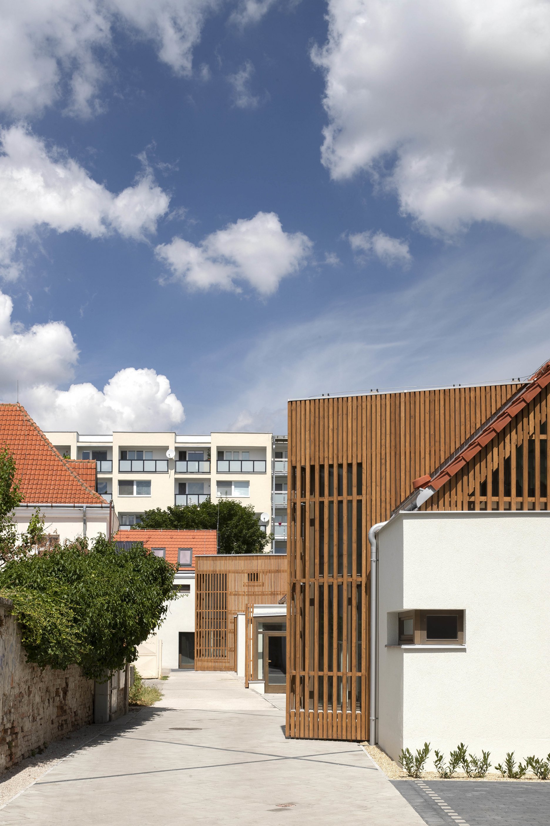 - Veľmi starostlivo premyslená architektúra citlivo uchováva priestorové hodnoty a merítko zastrčenej uličky po roky neudržovaných domčekov a kôlní. Na ich hmotovom základe vystavuje sviežo pôsobiacu modernú stavbu triezvych a obytne pôsobiacich foriem.