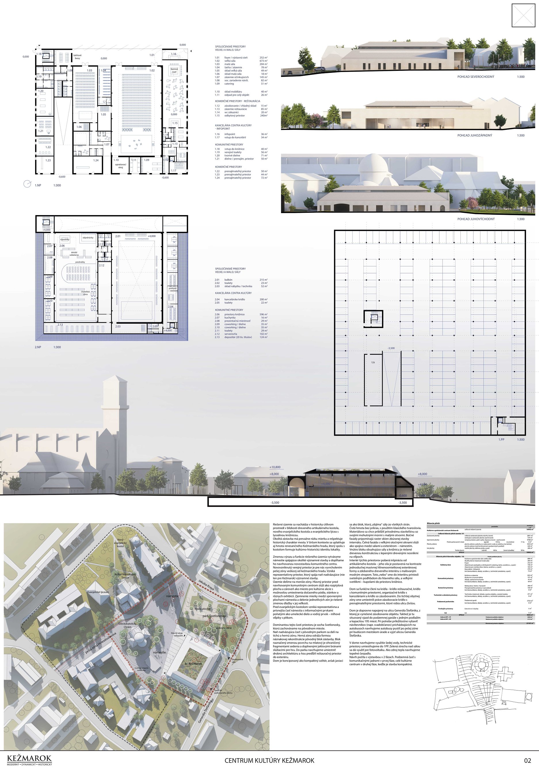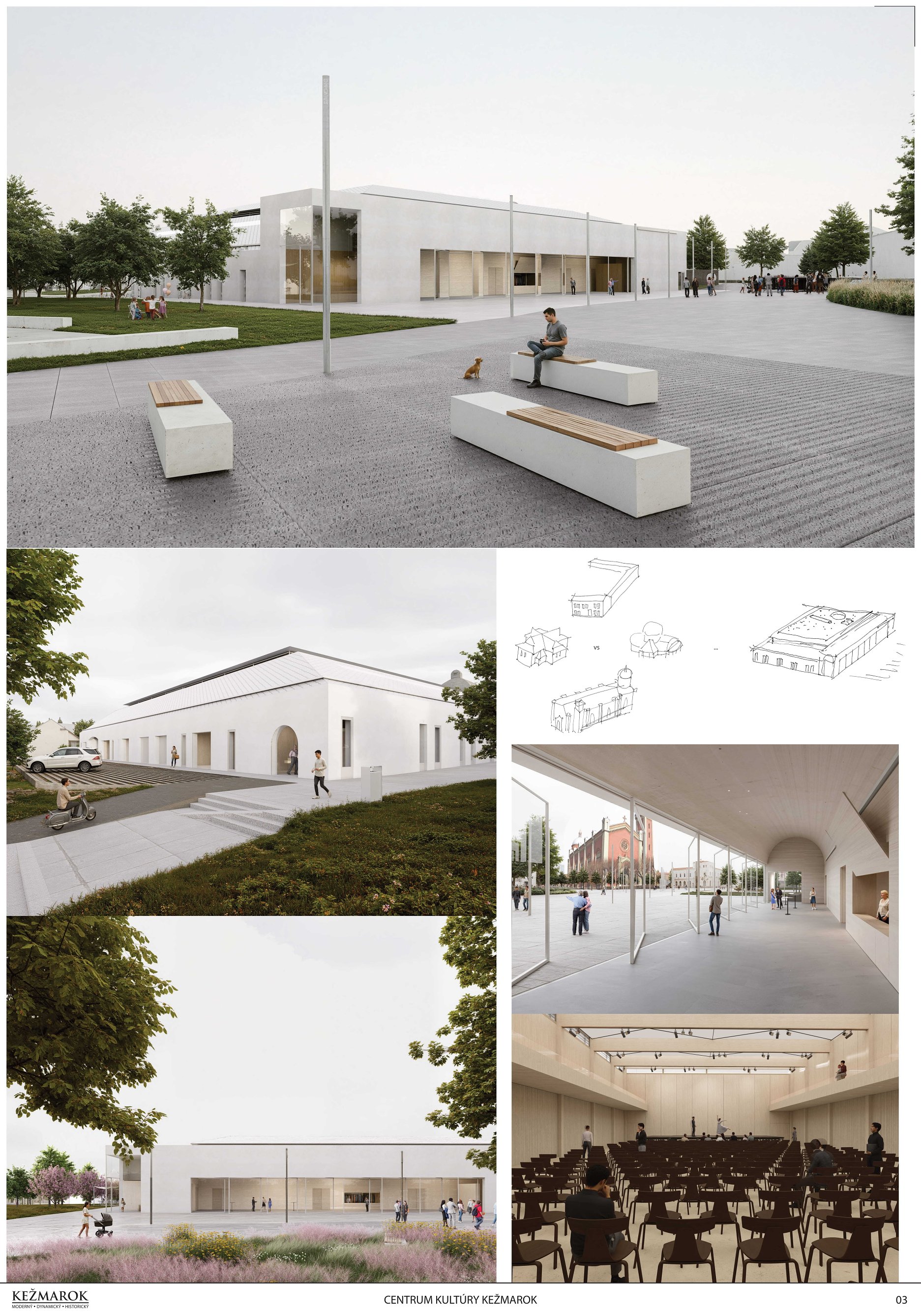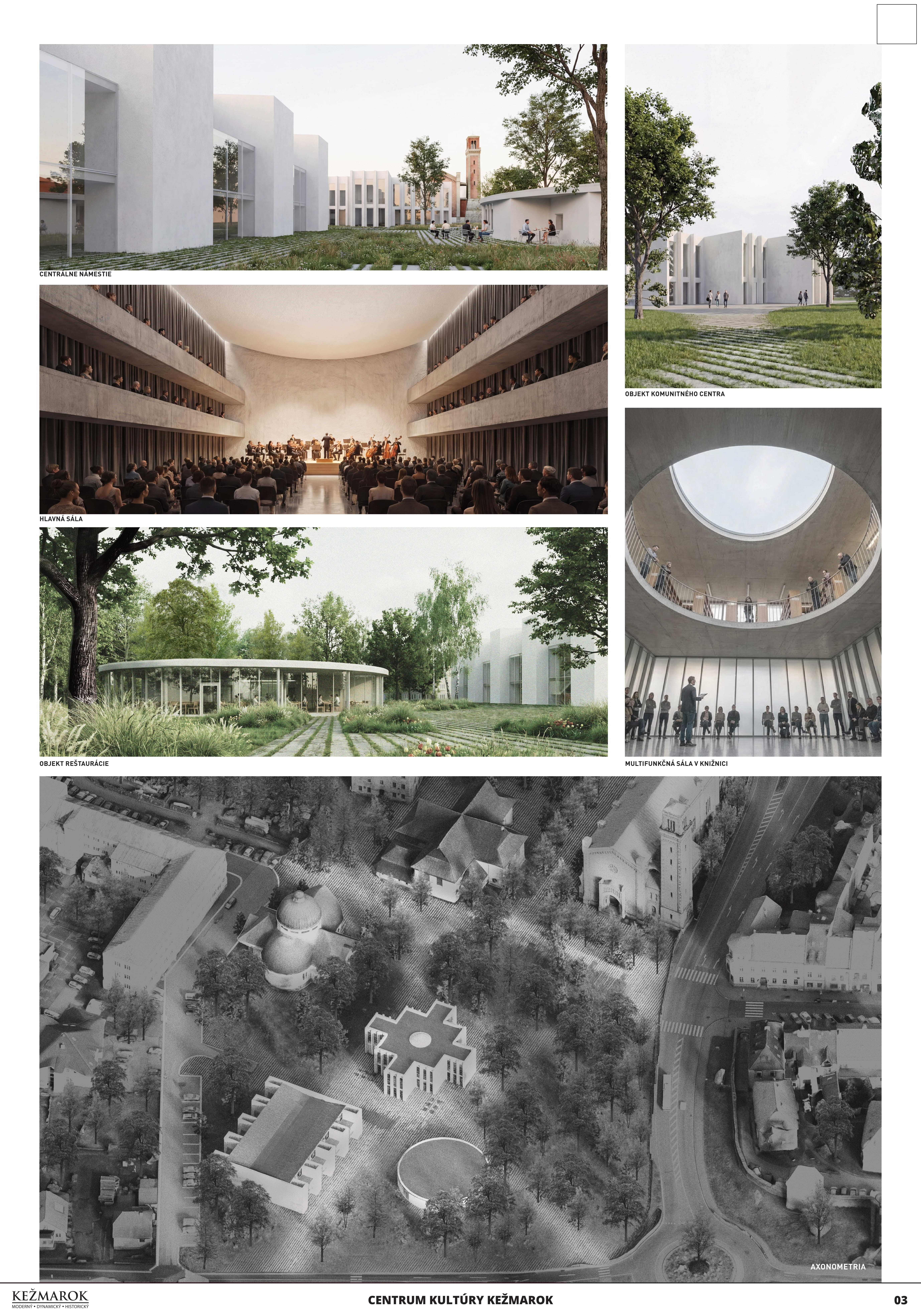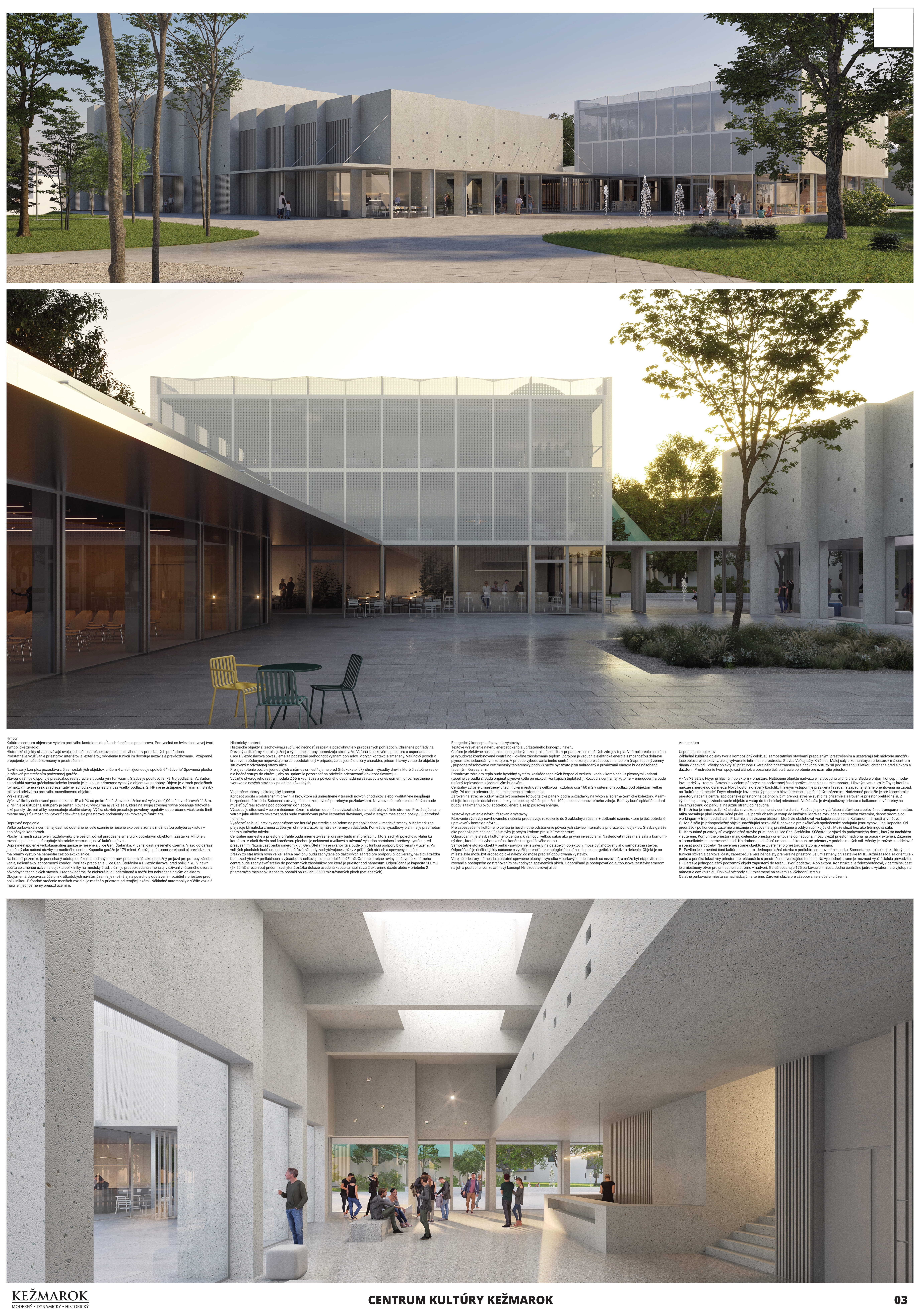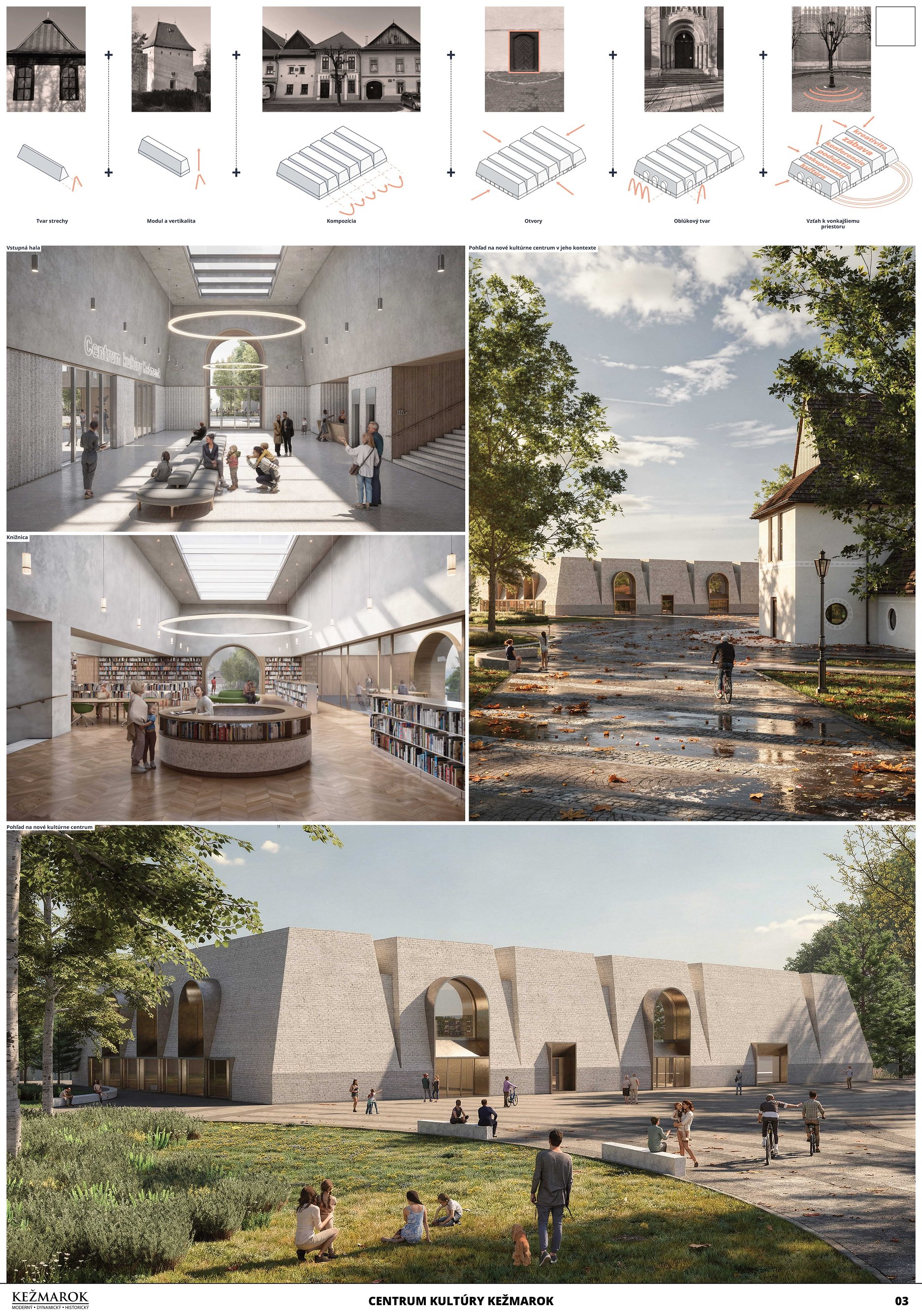 Slovo poroty a zhodnotenie súťaže: Hľadanie podoby nového centra kultúry v Kežmarku je témou, ktorá ďaleko presahuje samotnú stavbu. Ide o rozhodovanie o budúcej podobe významného verejného priestoru v bezprostrednom kontakte s historickými vrstvami mesta, sakrálnymi dominantami a pamiatkovo citlivým prostredím. Porota preto mimoriadne oceňuje, že mesto Kežmarok sa rozhodlo riešiť túto úlohu formou architektonickej súťaže, teda transparentným a odborne zodpovedným spôsobom, ktorý umožňuje porovnať široké spektrum prístupov a vybrať riešenie s najvyššou mierou kvality.