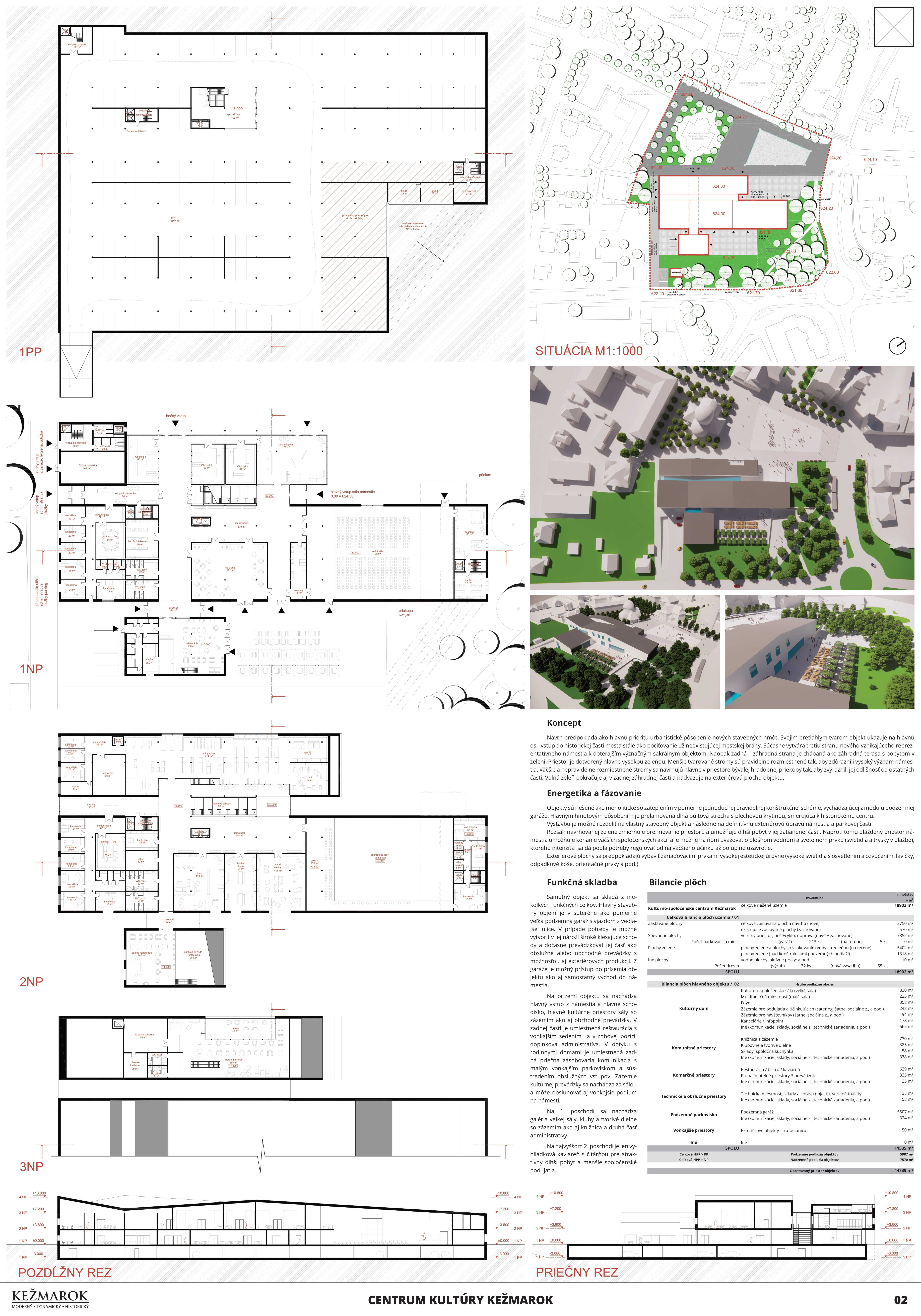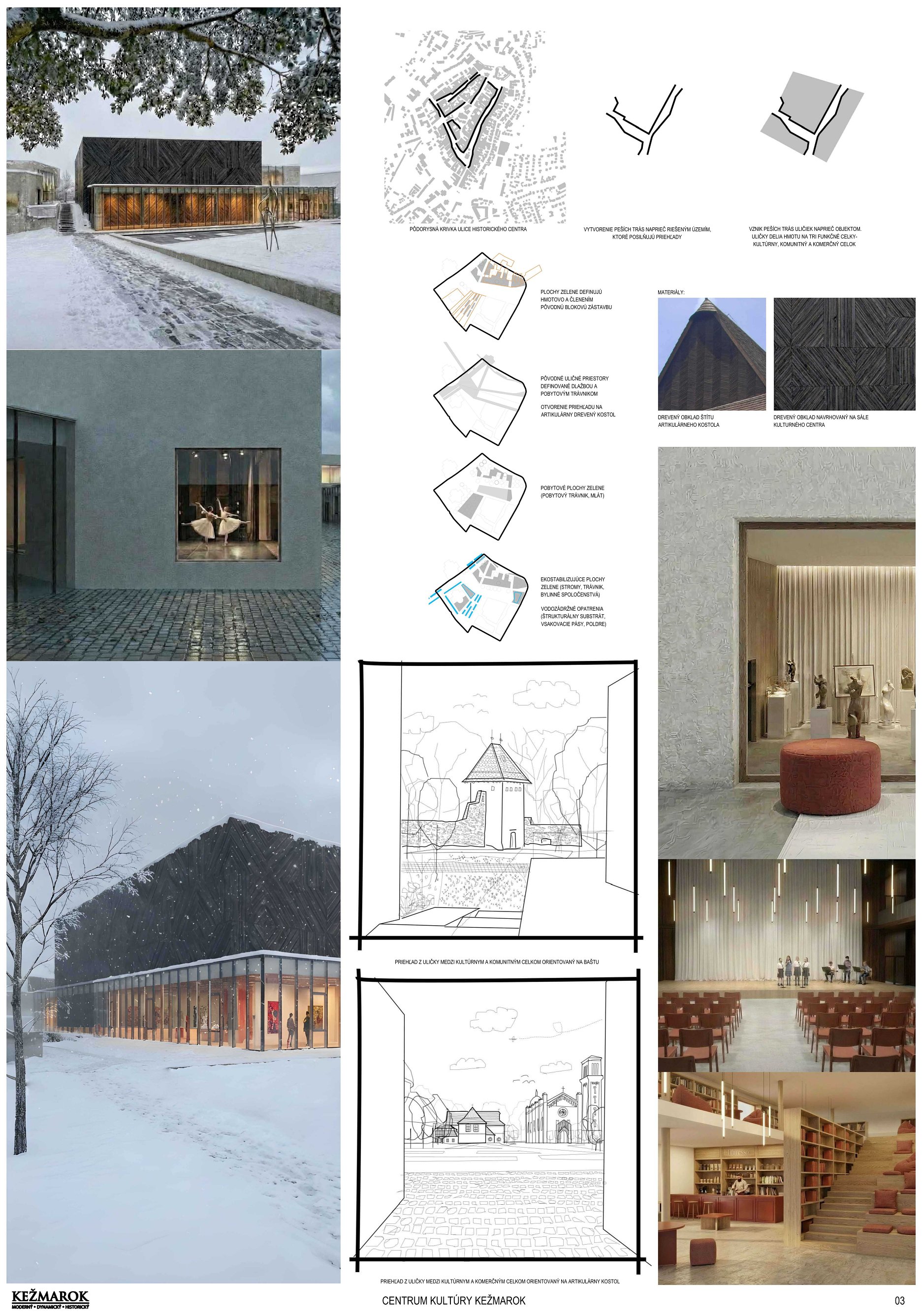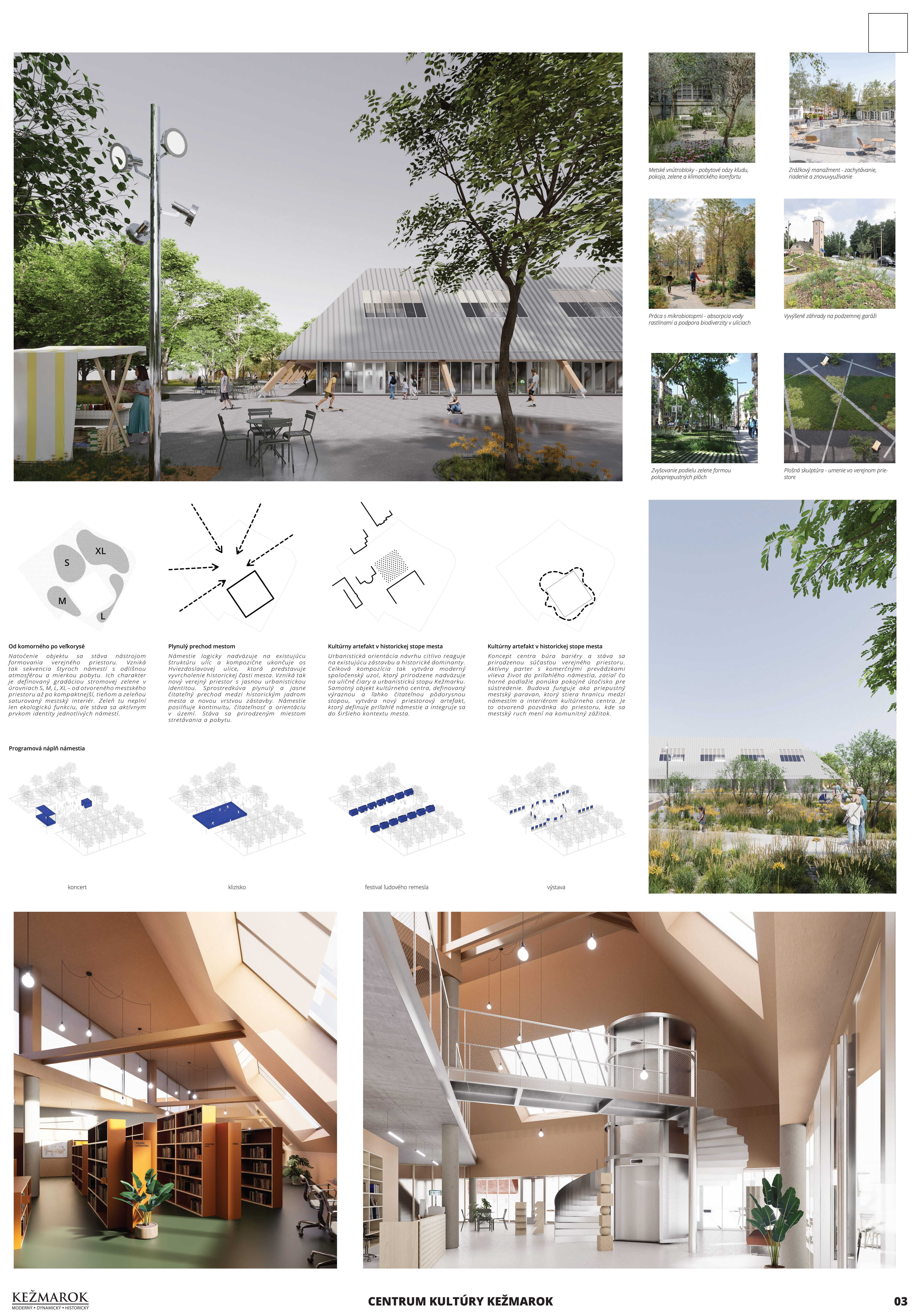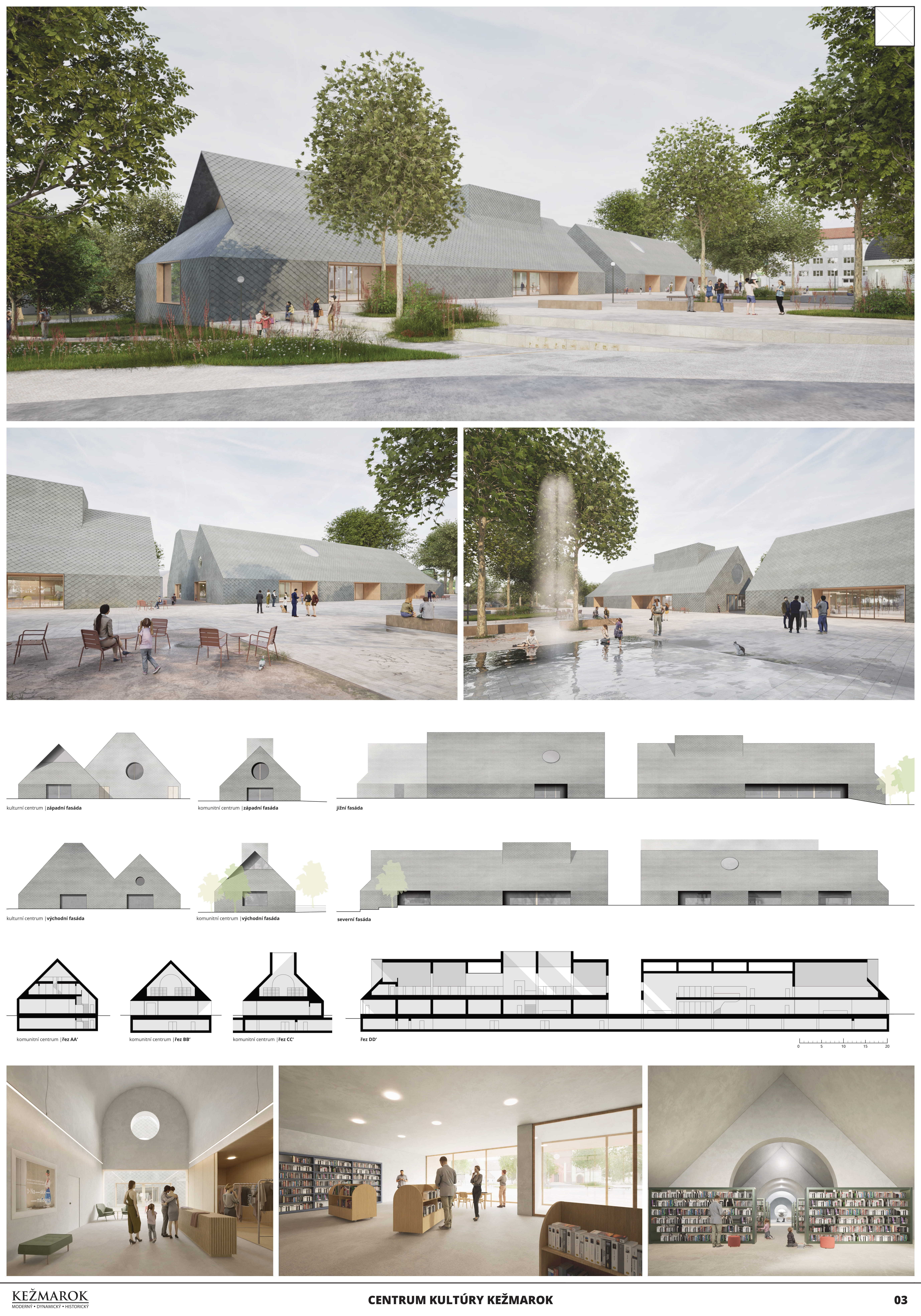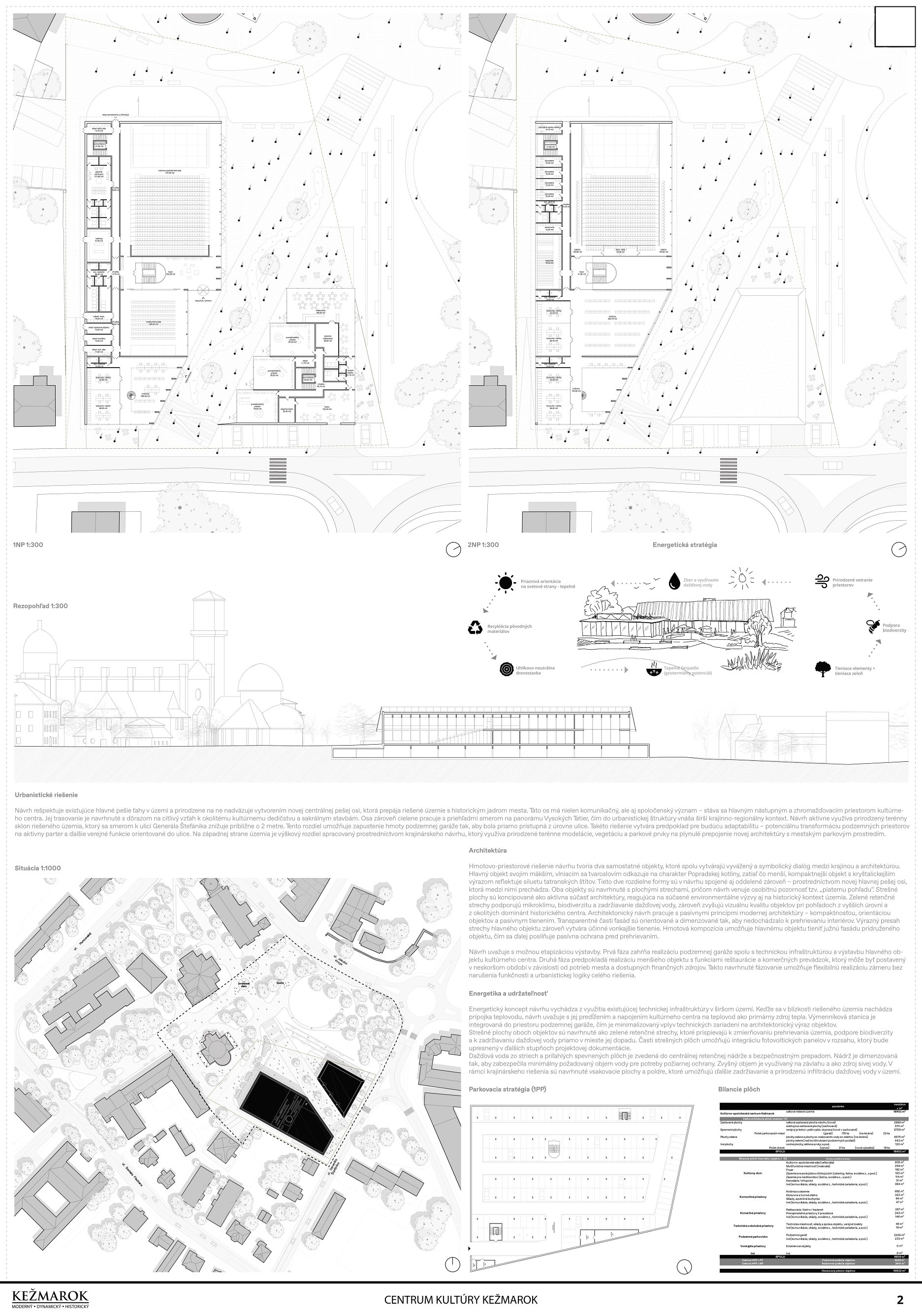 Slovo poroty a zhodnotenie súťaže: Hľadanie podoby nového centra kultúry v Kežmarku je témou, ktorá ďaleko presahuje samotnú stavbu. Ide o rozhodovanie o budúcej podobe významného verejného priestoru v bezprostrednom kontakte s historickými vrstvami mesta, sakrálnymi dominantami a pamiatkovo citlivým prostredím. Porota preto mimoriadne oceňuje, že mesto Kežmarok sa rozhodlo riešiť túto úlohu formou architektonickej súťaže, teda transparentným a odborne zodpovedným spôsobom, ktorý umožňuje porovnať široké spektrum prístupov a vybrať riešenie s najvyššou mierou kvality.