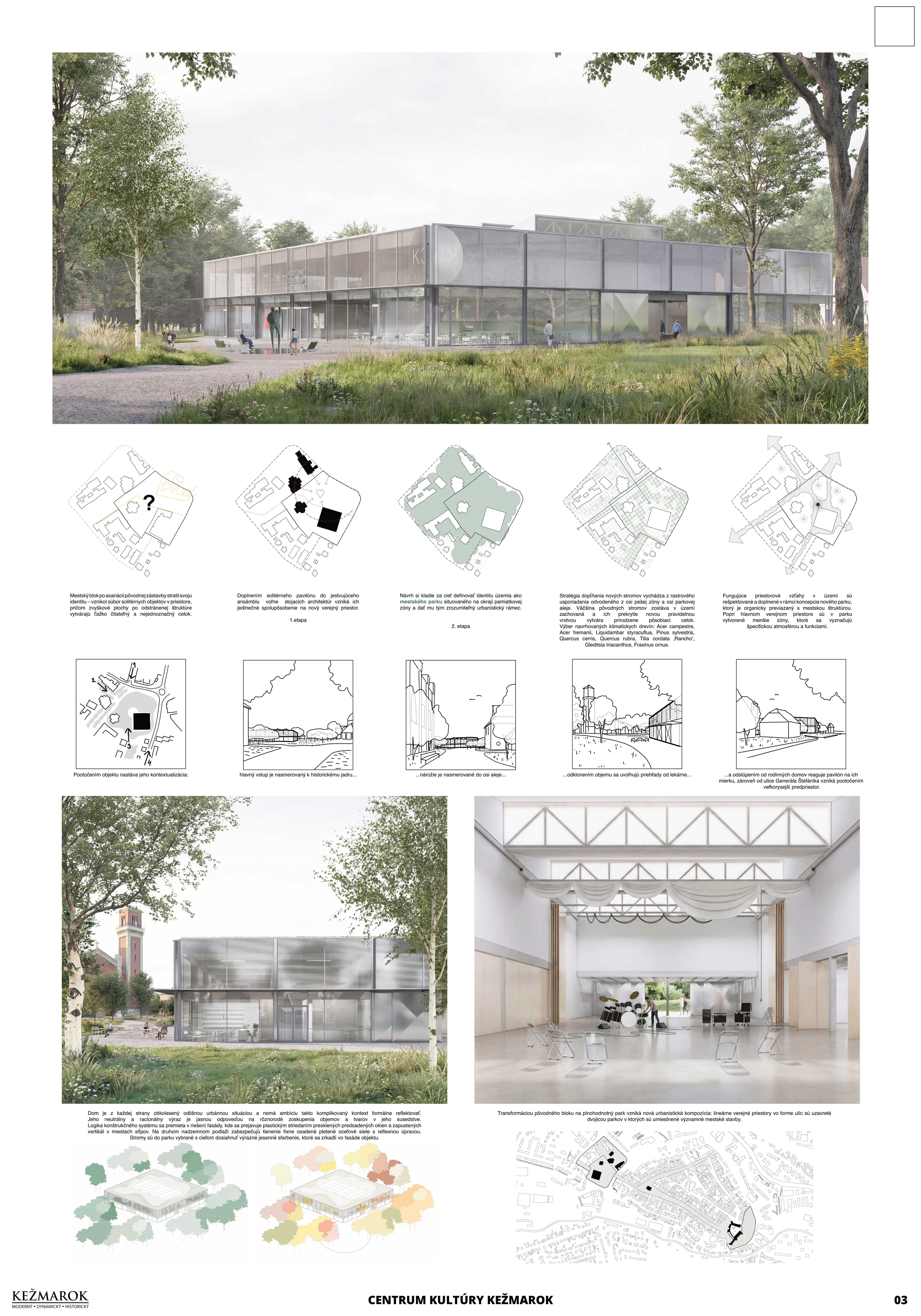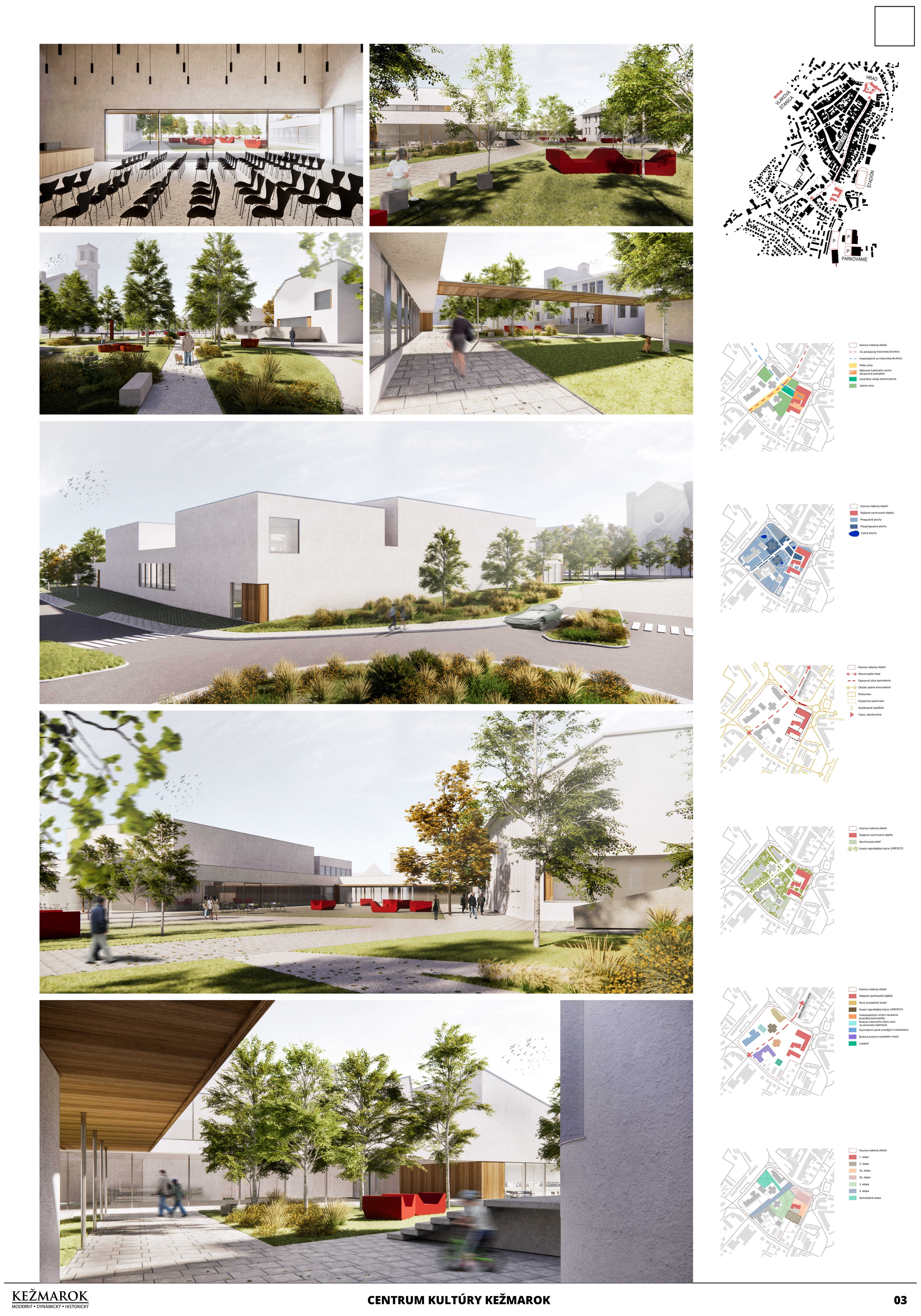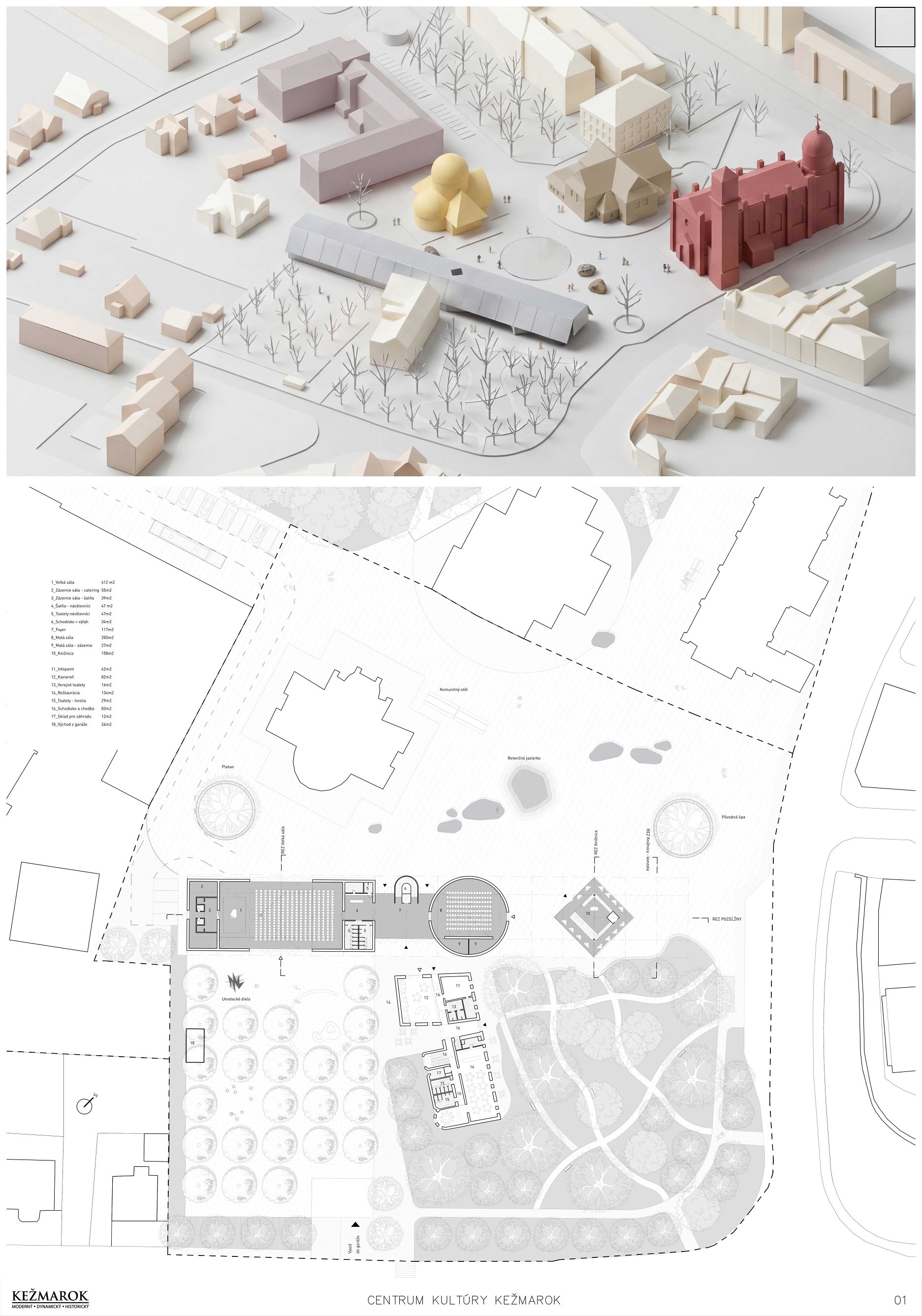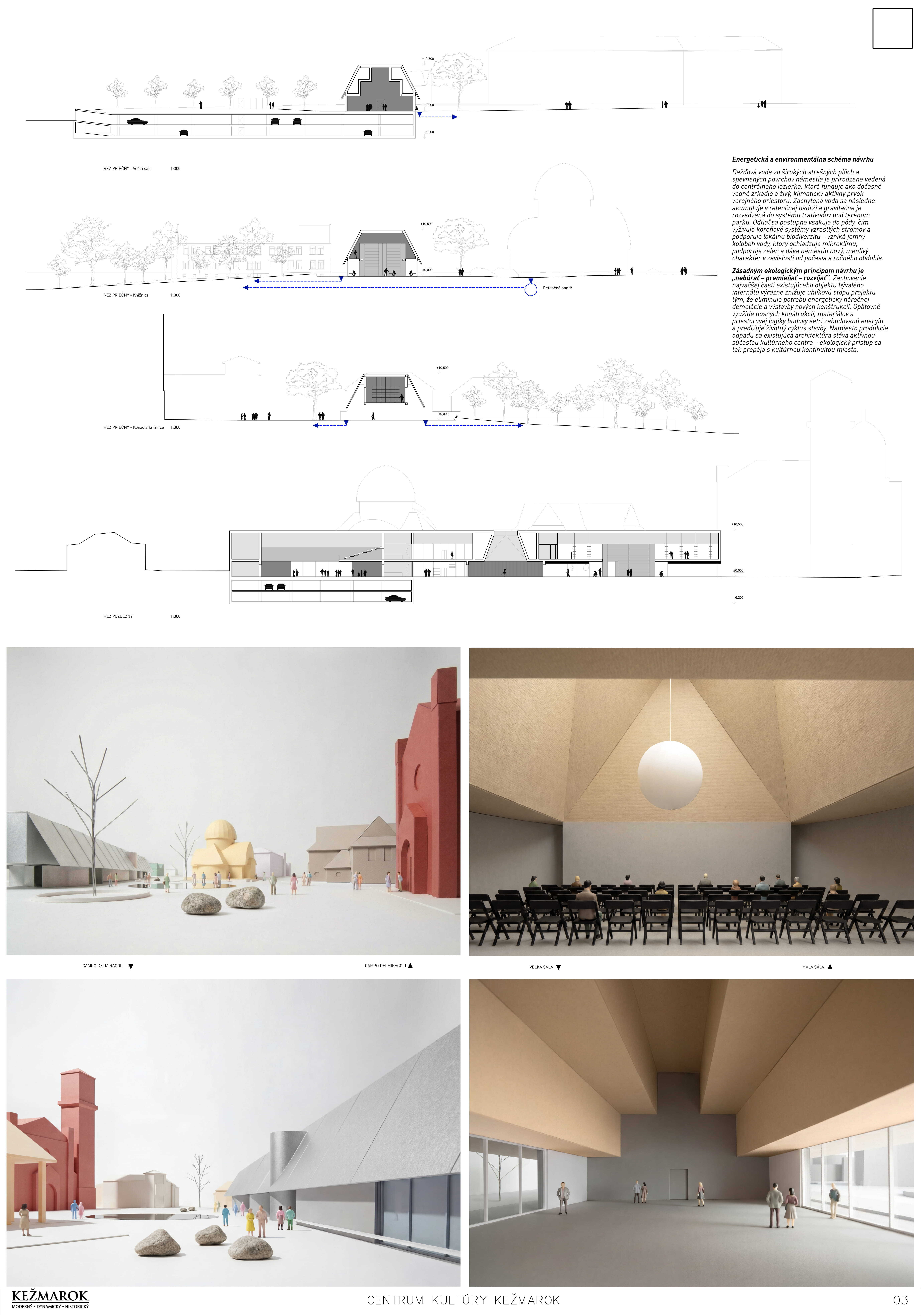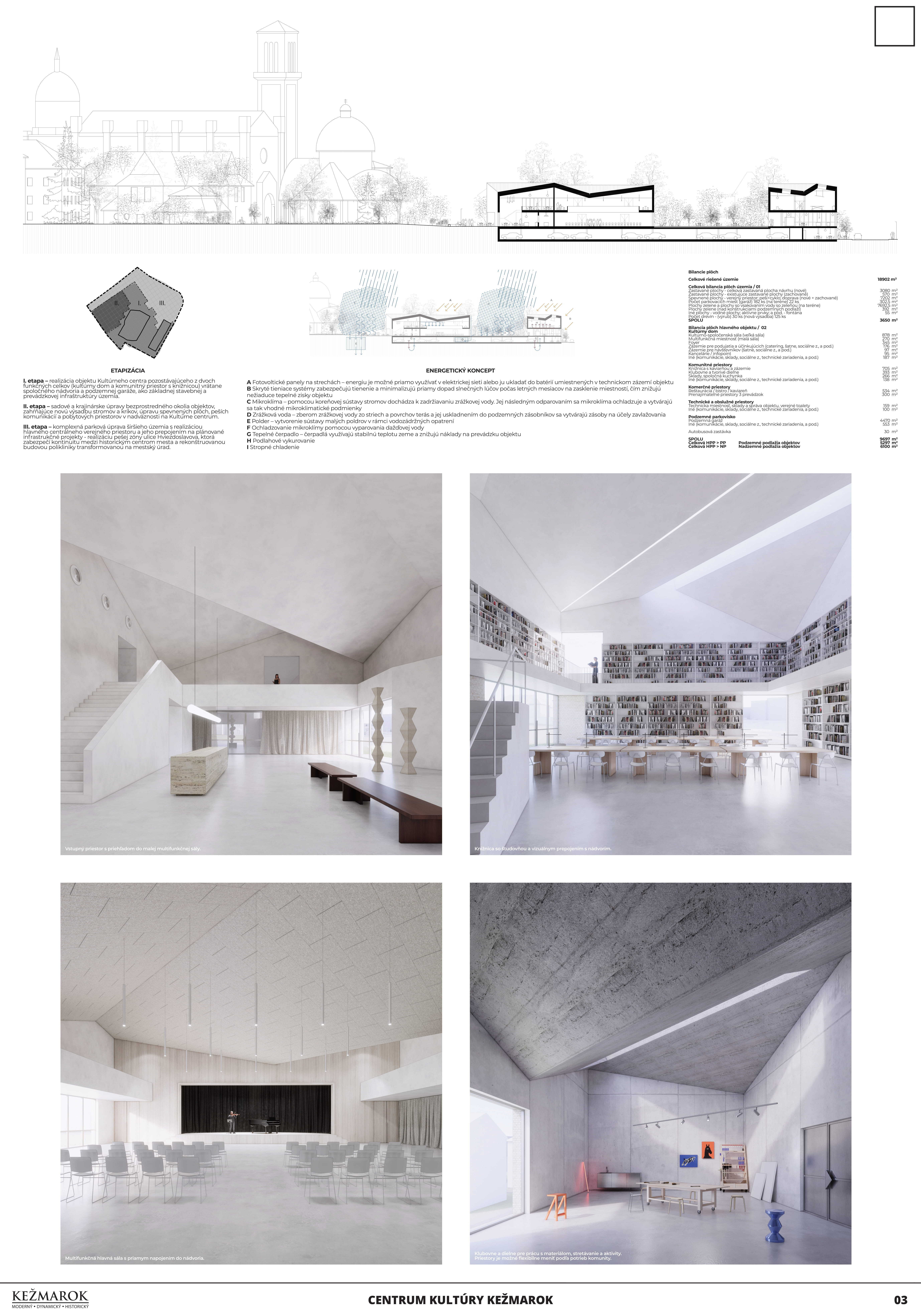 Slovo poroty a zhodnotenie súťaže: Hľadanie podoby nového centra kultúry v Kežmarku je témou, ktorá ďaleko presahuje samotnú stavbu. Ide o rozhodovanie o budúcej podobe významného verejného priestoru v bezprostrednom kontakte s historickými vrstvami mesta, sakrálnymi dominantami a pamiatkovo citlivým prostredím. Porota preto mimoriadne oceňuje, že mesto Kežmarok sa rozhodlo riešiť túto úlohu formou architektonickej súťaže, teda transparentným a odborne zodpovedným spôsobom, ktorý umožňuje porovnať široké spektrum prístupov a vybrať riešenie s najvyššou mierou kvality.