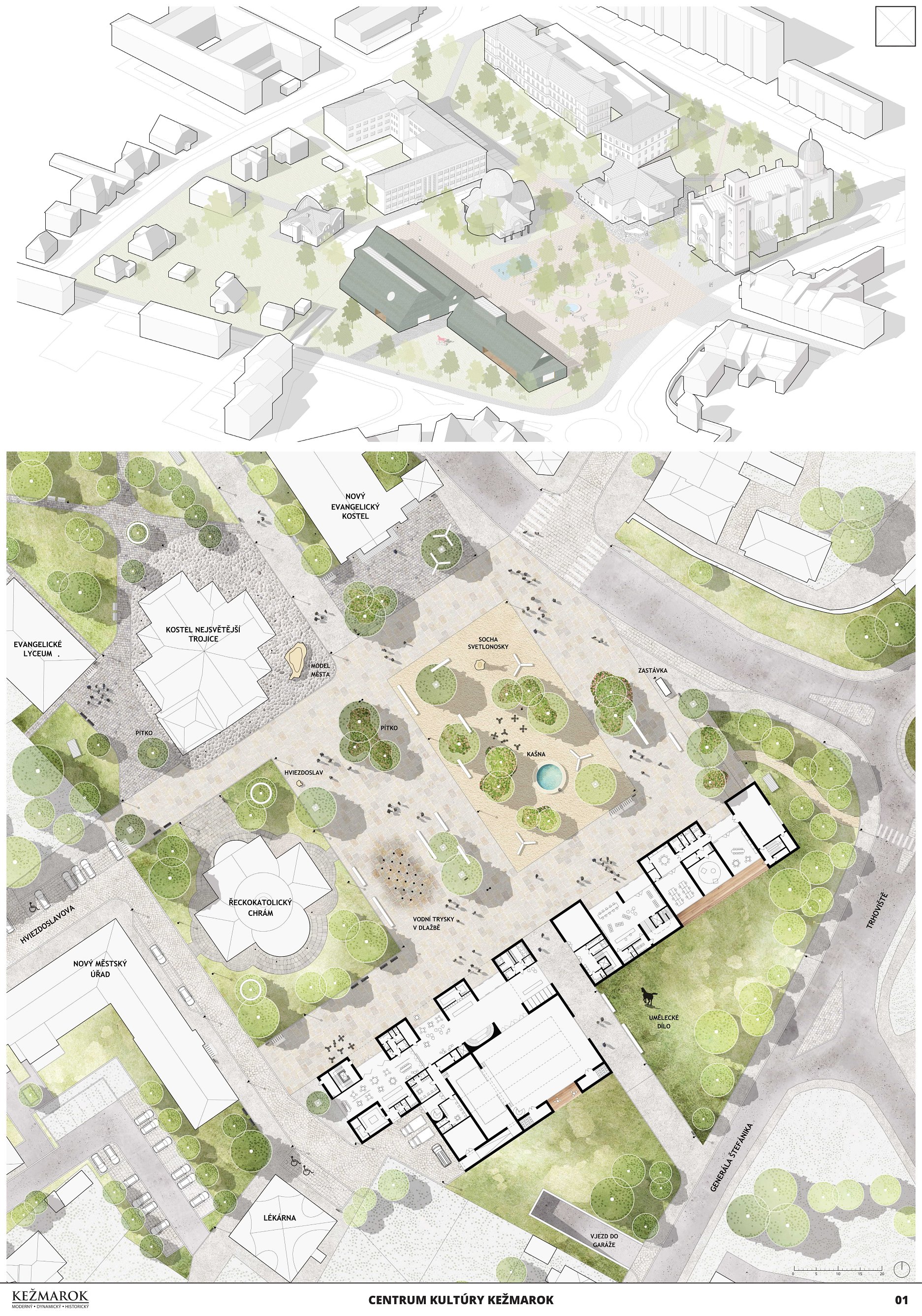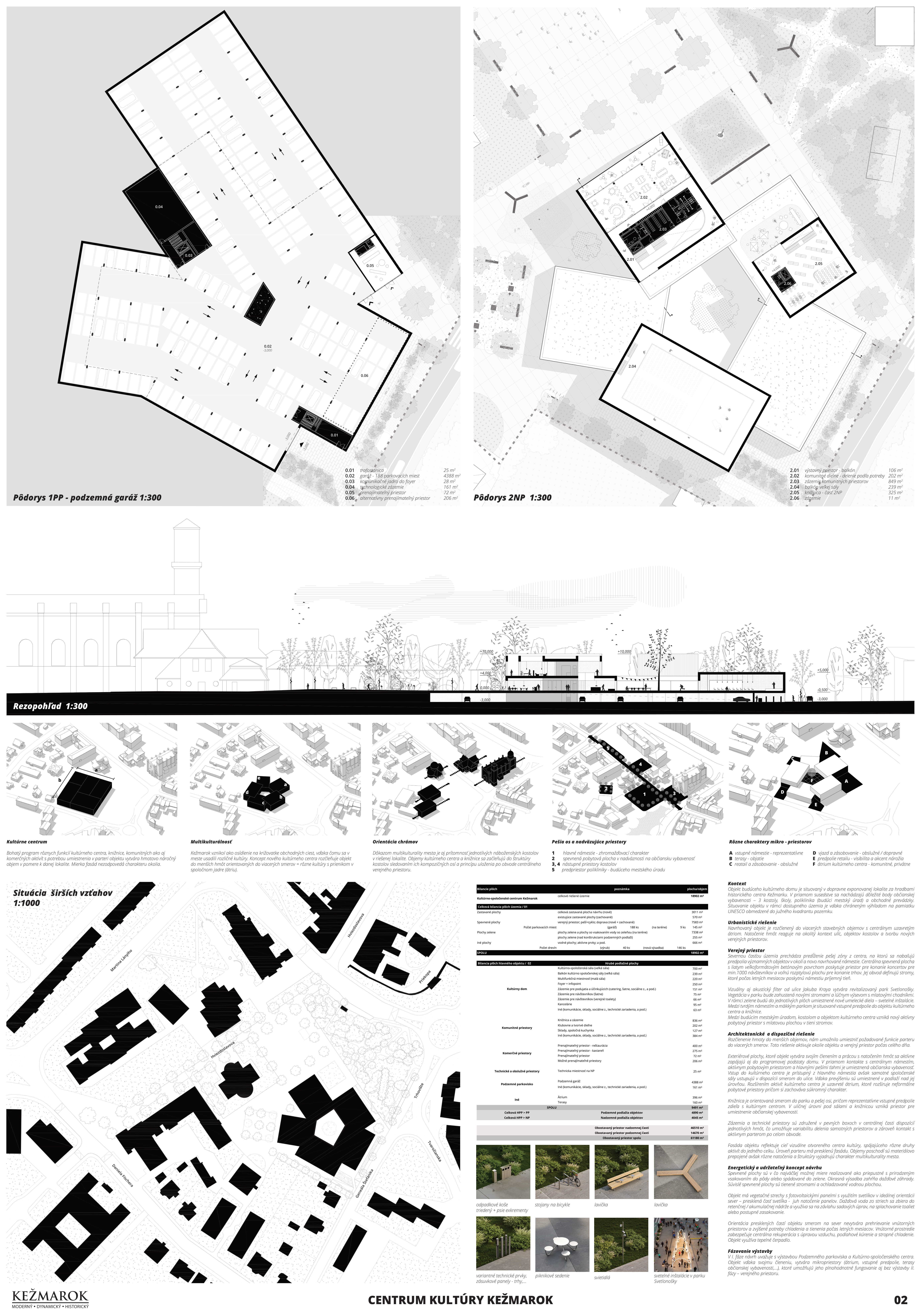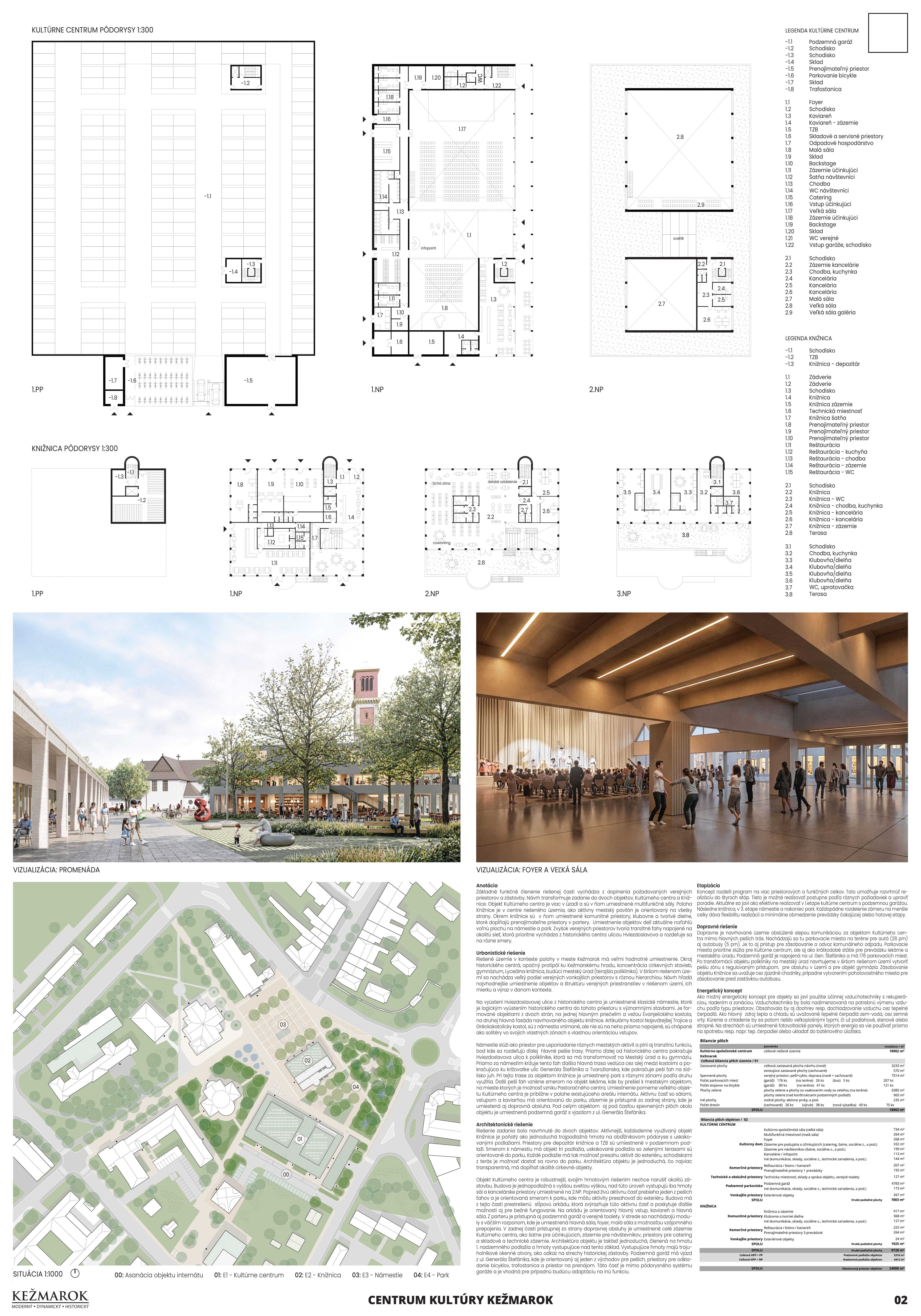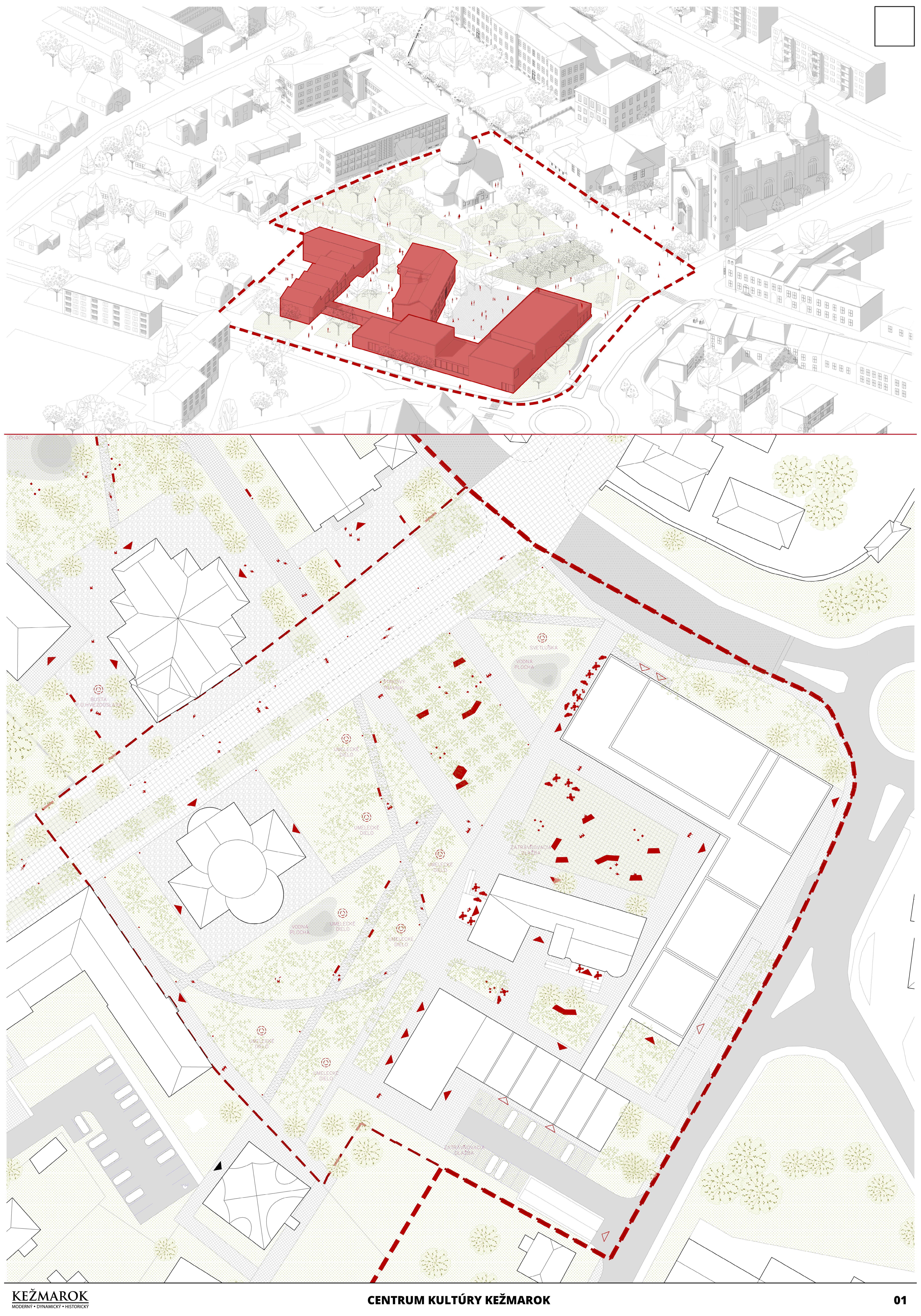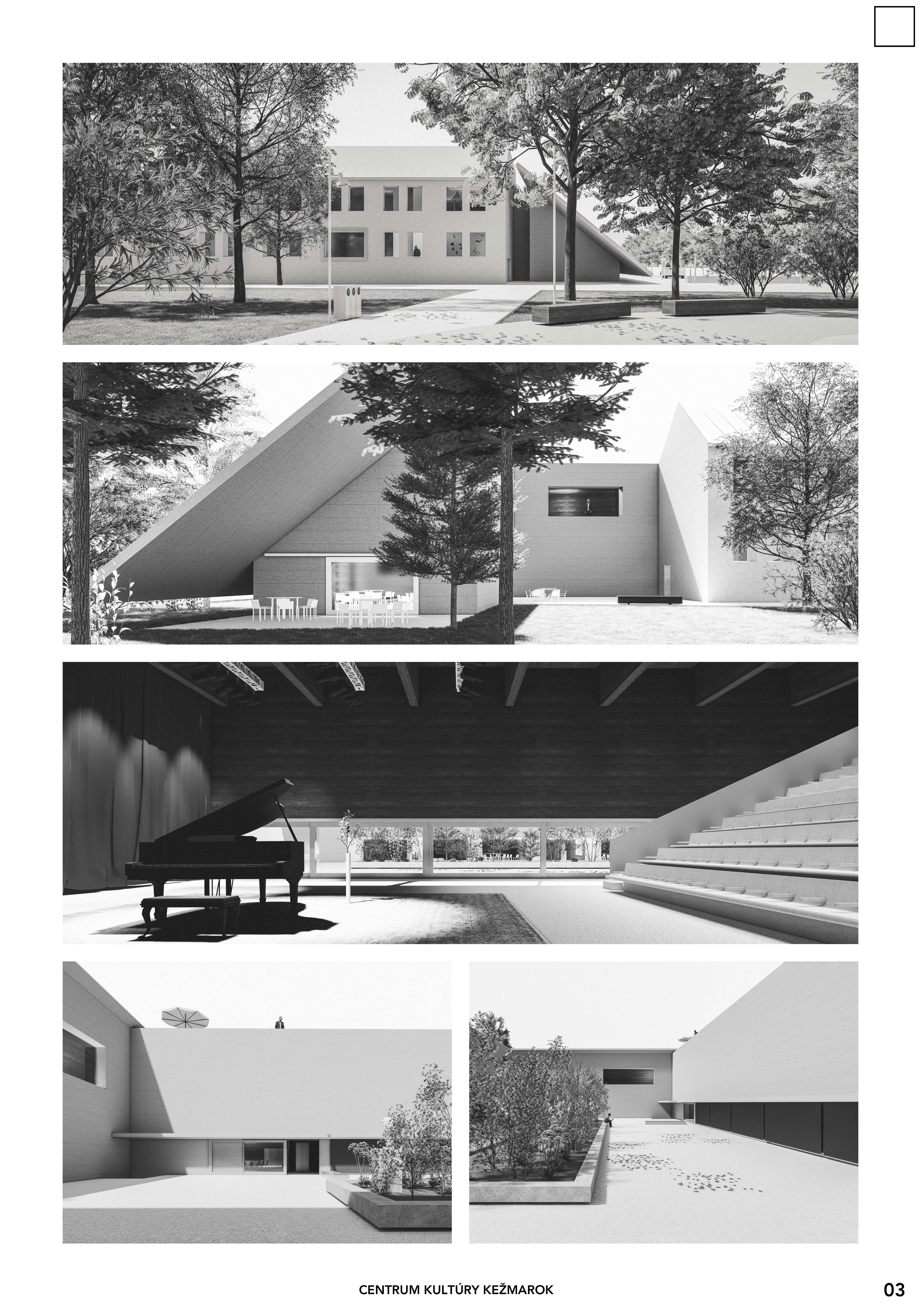 Slovo poroty a zhodnotenie súťaže: Hľadanie podoby nového centra kultúry v Kežmarku je témou, ktorá ďaleko presahuje samotnú stavbu. Ide o rozhodovanie o budúcej podobe významného verejného priestoru v bezprostrednom kontakte s historickými vrstvami mesta, sakrálnymi dominantami a pamiatkovo citlivým prostredím. Porota preto mimoriadne oceňuje, že mesto Kežmarok sa rozhodlo riešiť túto úlohu formou architektonickej súťaže, teda transparentným a odborne zodpovedným spôsobom, ktorý umožňuje porovnať široké spektrum prístupov a vybrať riešenie s najvyššou mierou kvality.