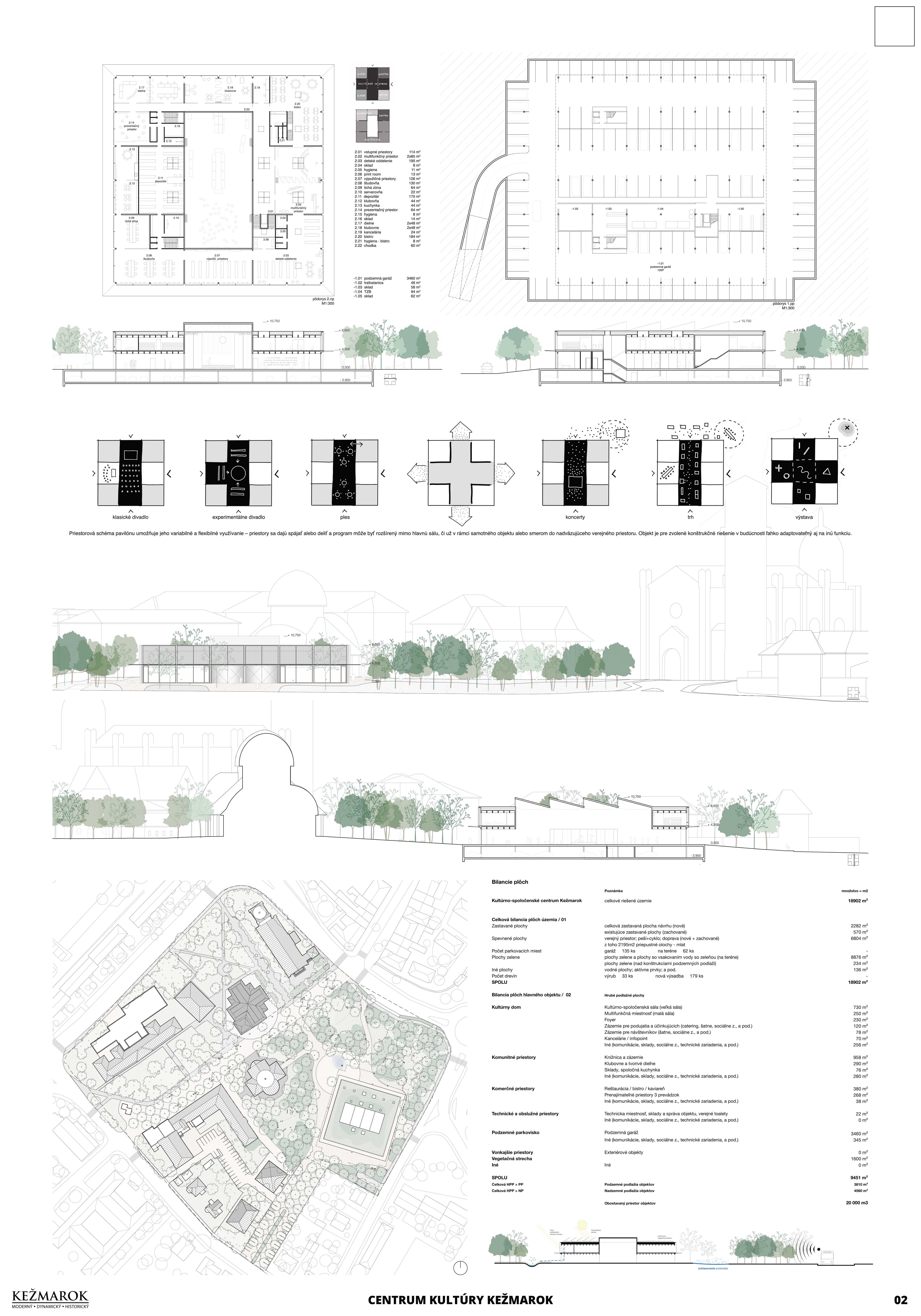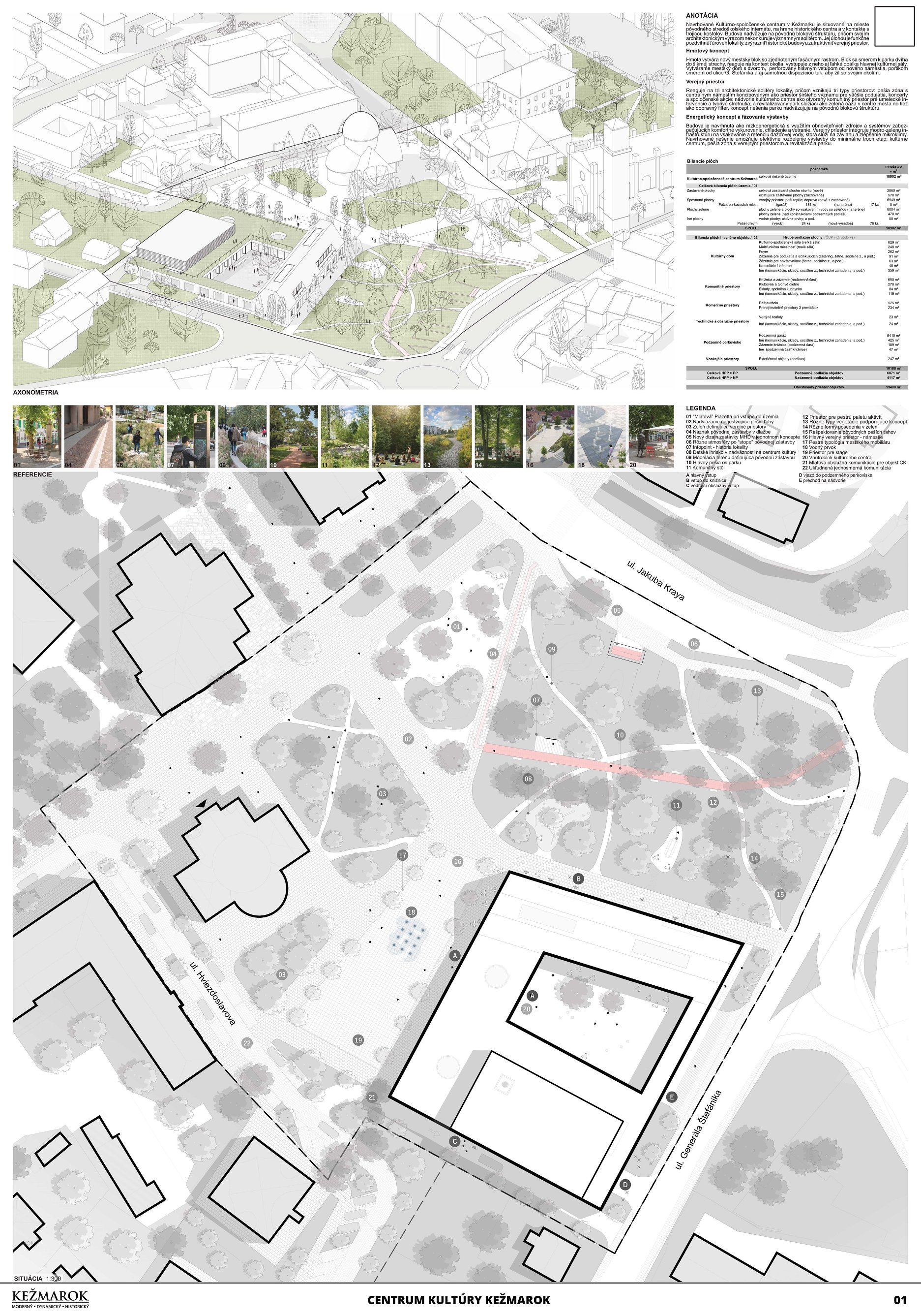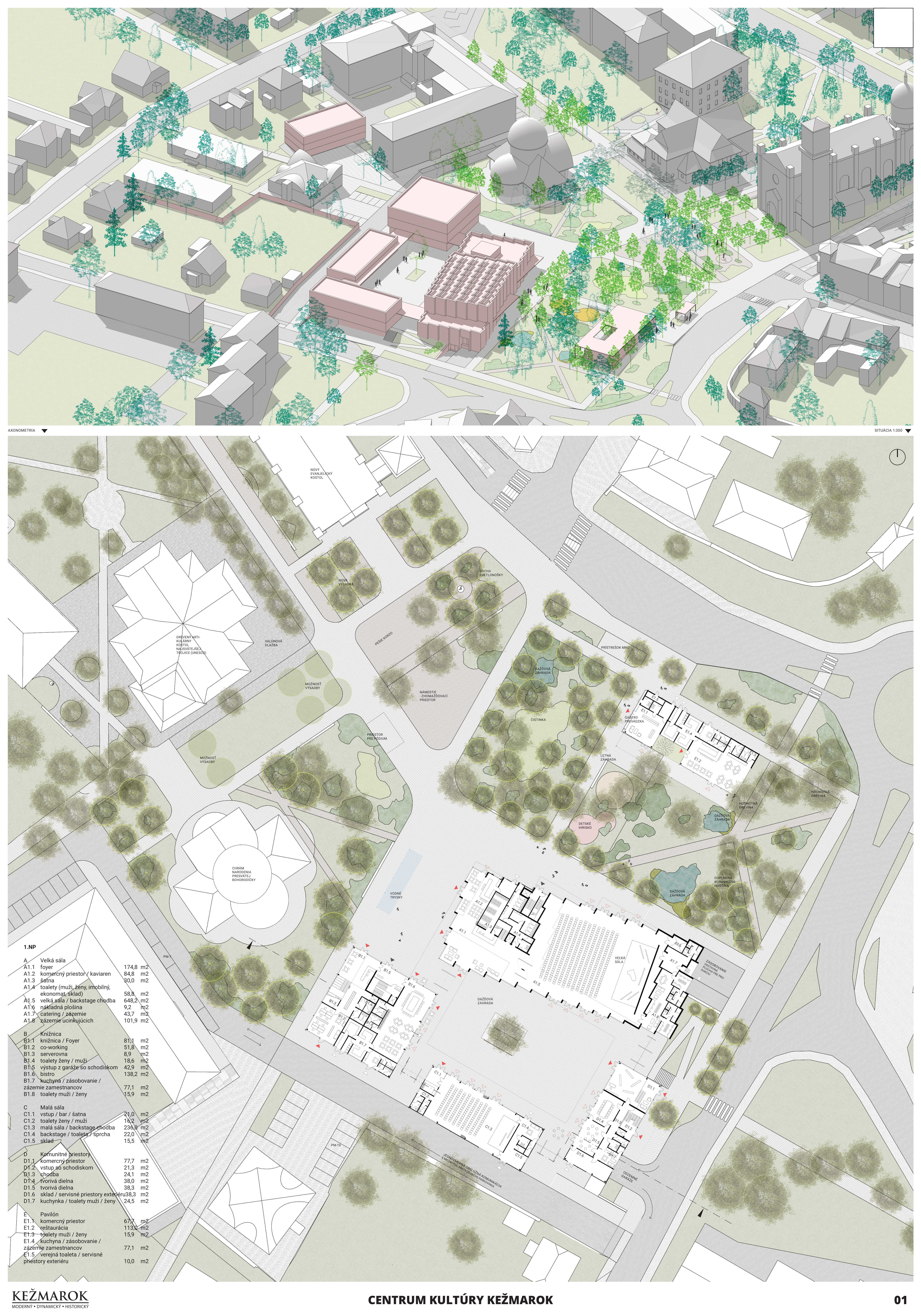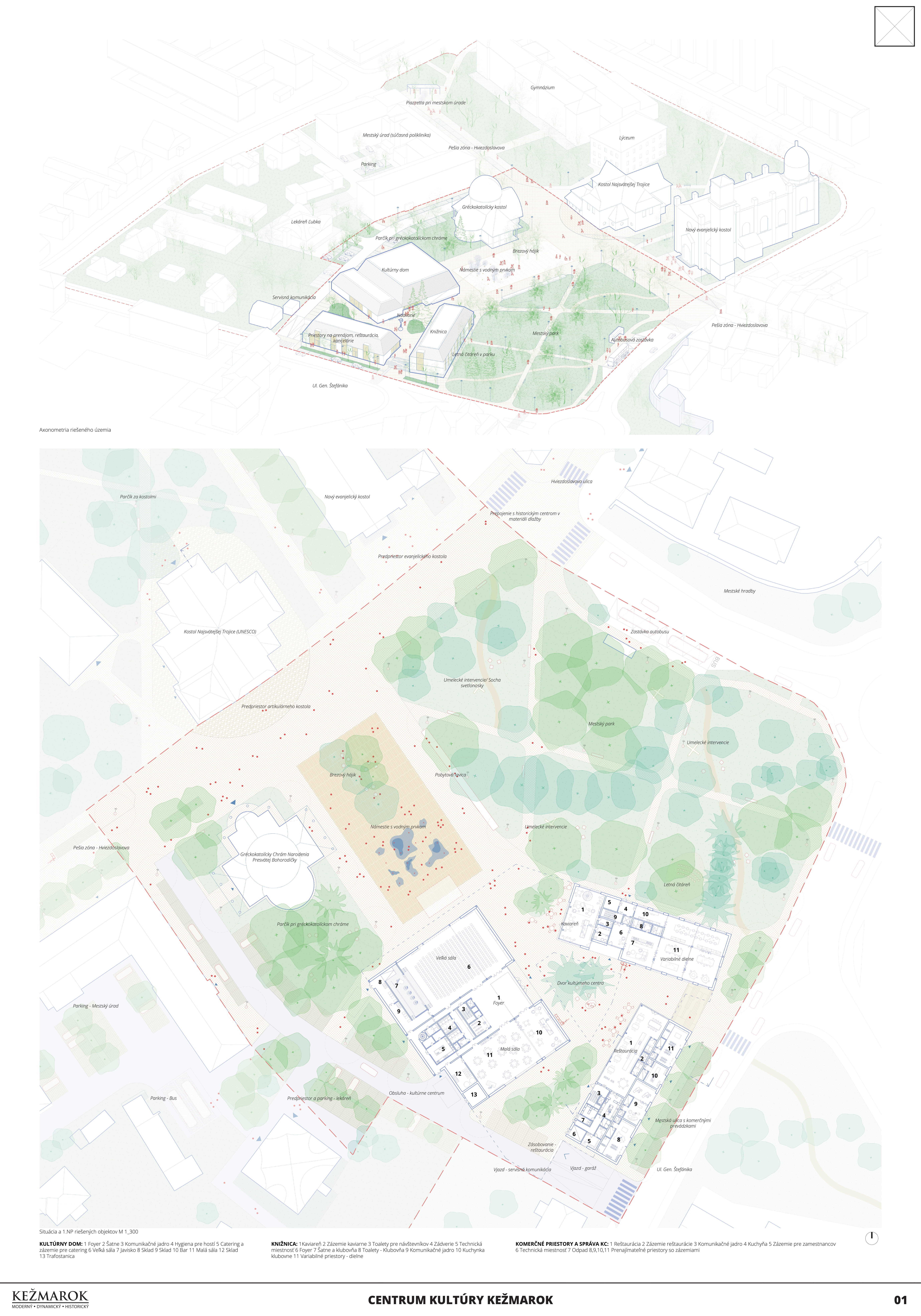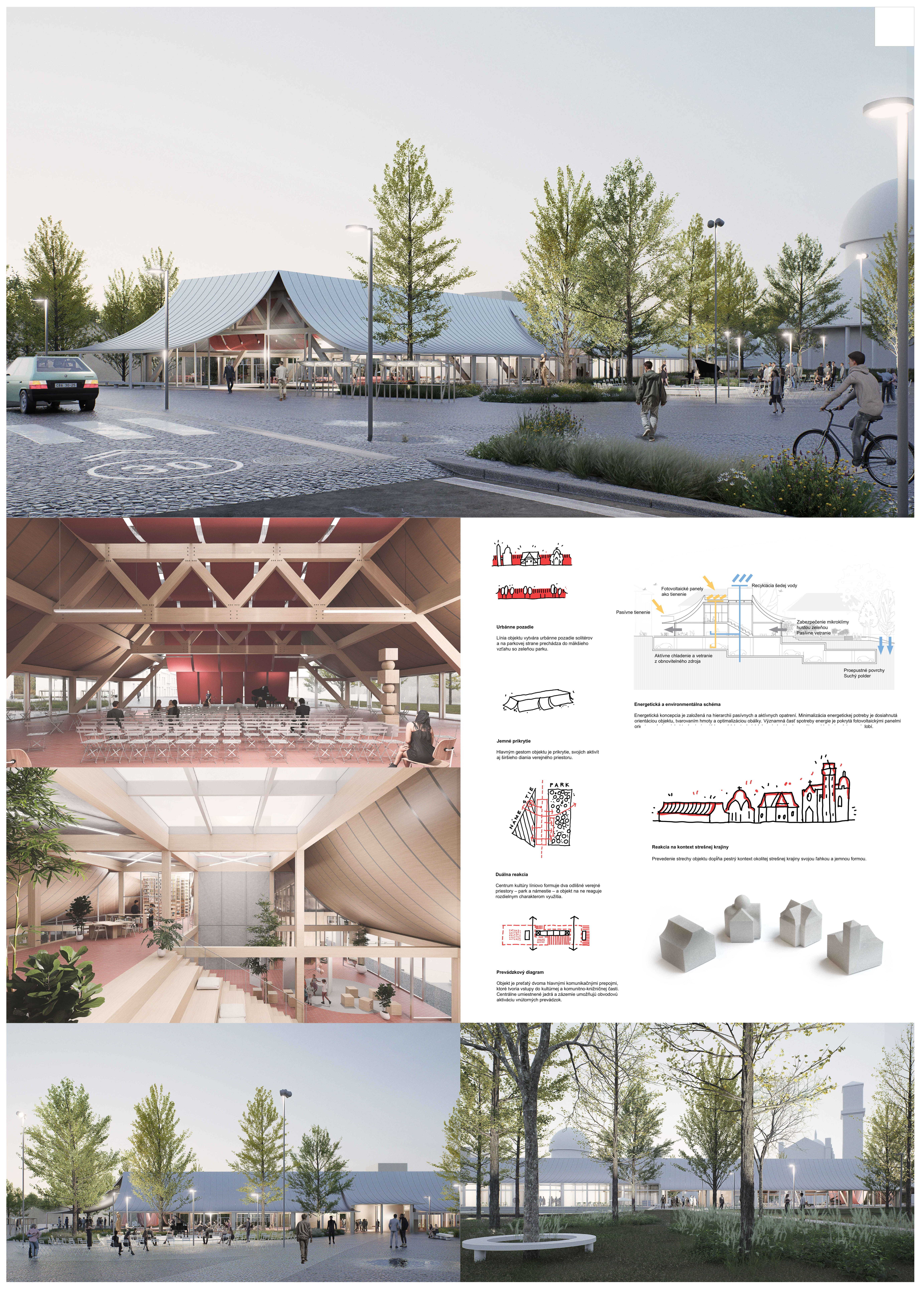 Slovo poroty a zhodnotenie súťaže: Hľadanie podoby nového centra kultúry v Kežmarku je témou, ktorá ďaleko presahuje samotnú stavbu. Ide o rozhodovanie o budúcej podobe významného verejného priestoru v bezprostrednom kontakte s historickými vrstvami mesta, sakrálnymi dominantami a pamiatkovo citlivým prostredím. Porota preto mimoriadne oceňuje, že mesto Kežmarok sa rozhodlo riešiť túto úlohu formou architektonickej súťaže, teda transparentným a odborne zodpovedným spôsobom, ktorý umožňuje porovnať široké spektrum prístupov a vybrať riešenie s najvyššou mierou kvality.
