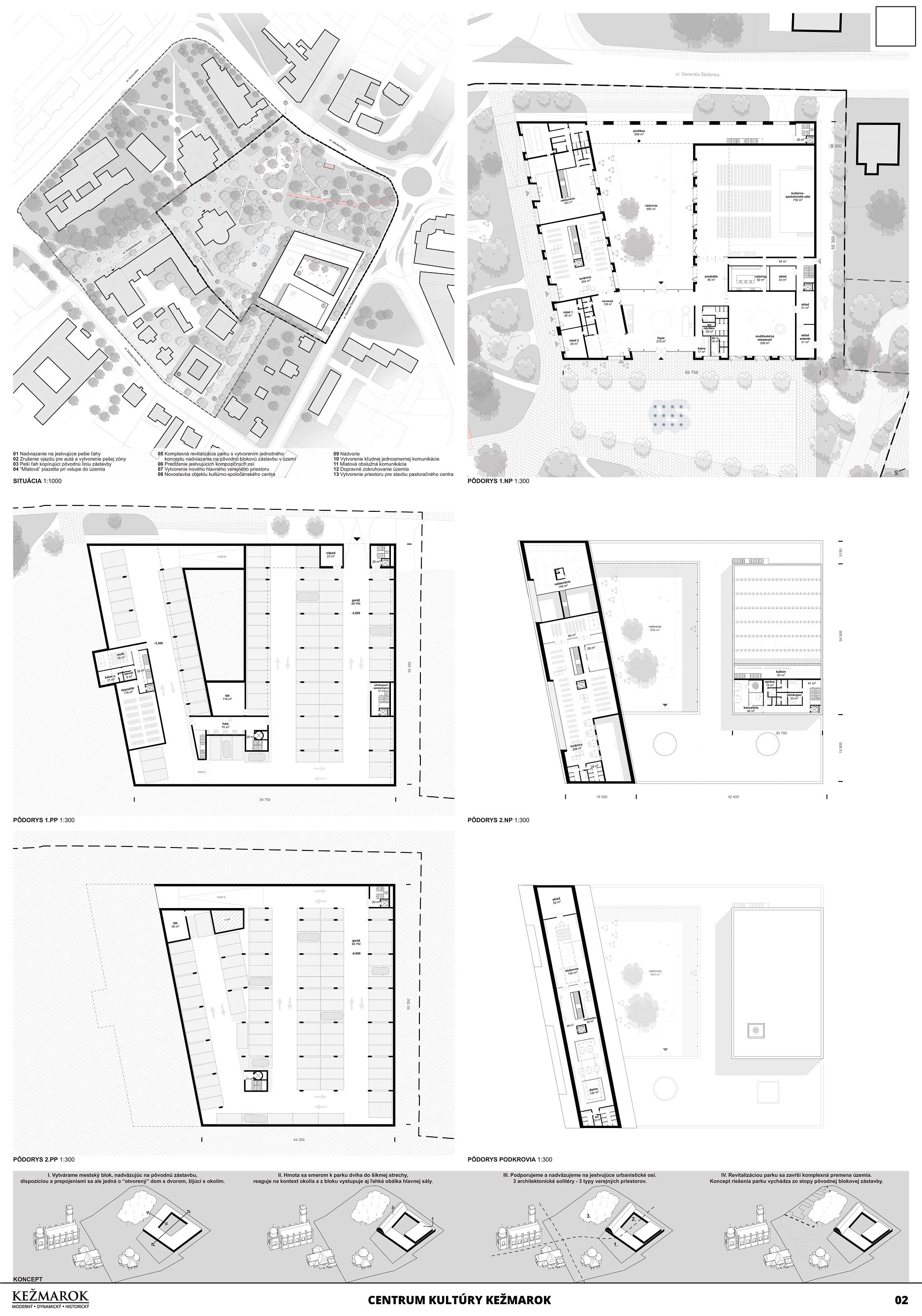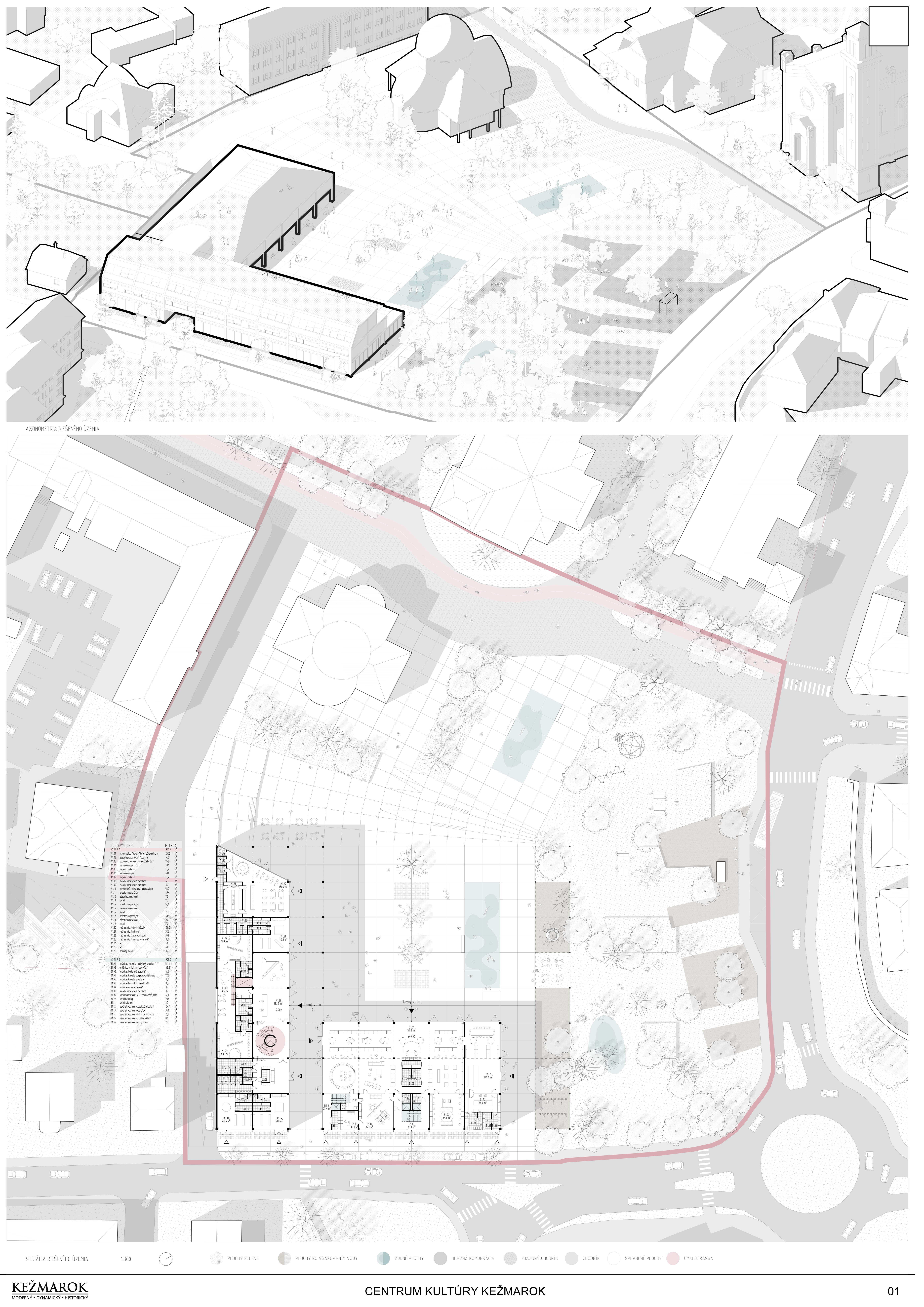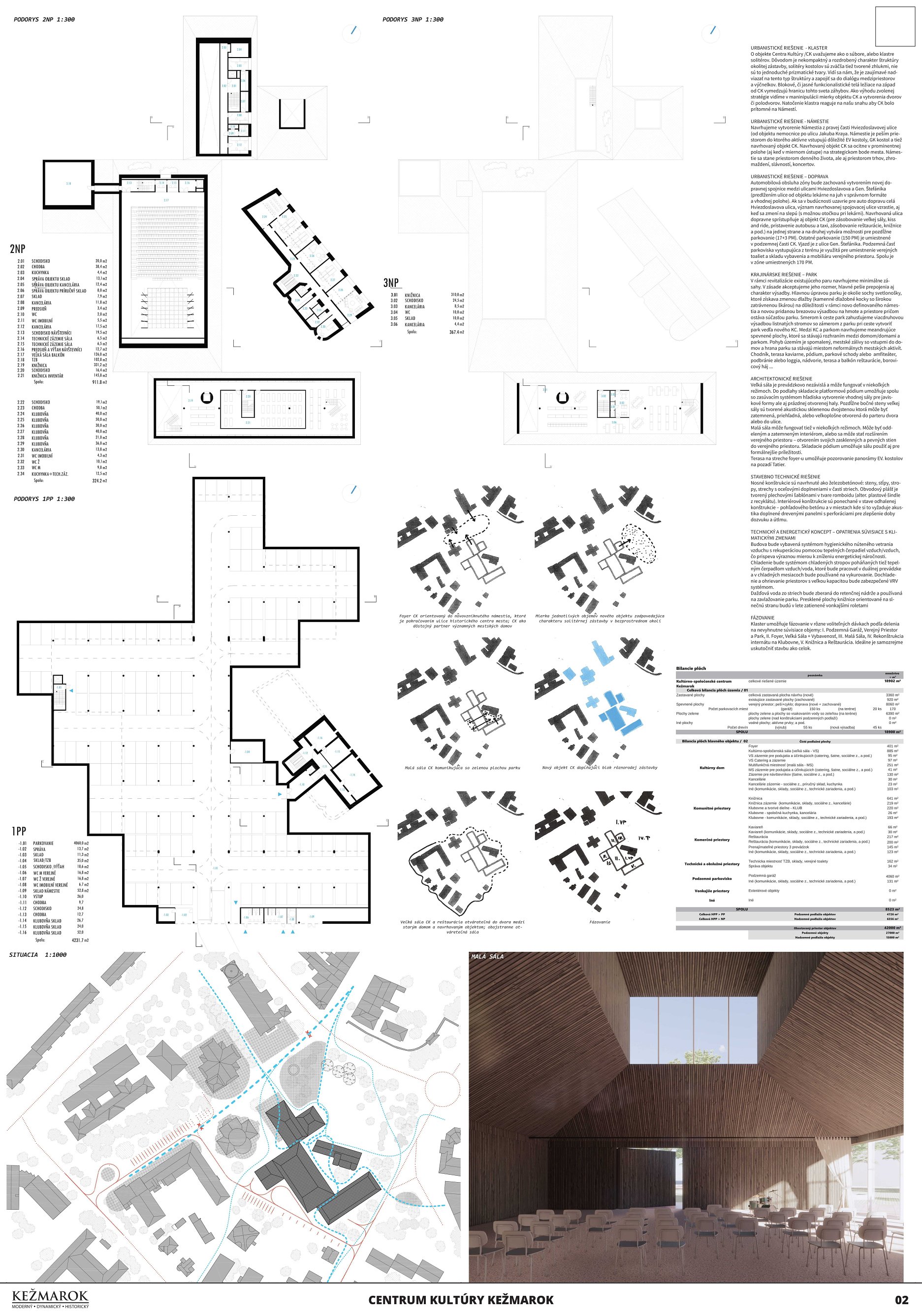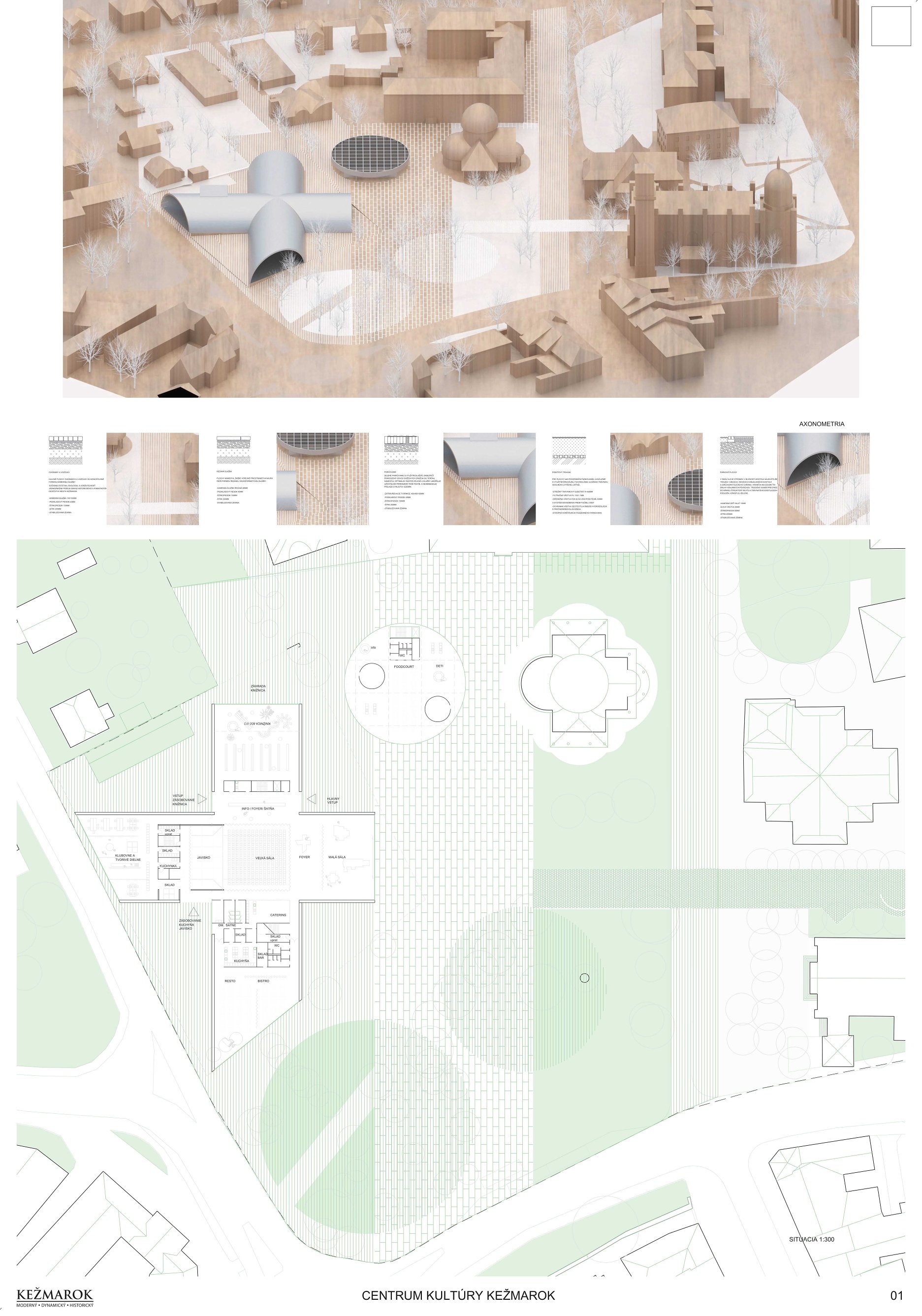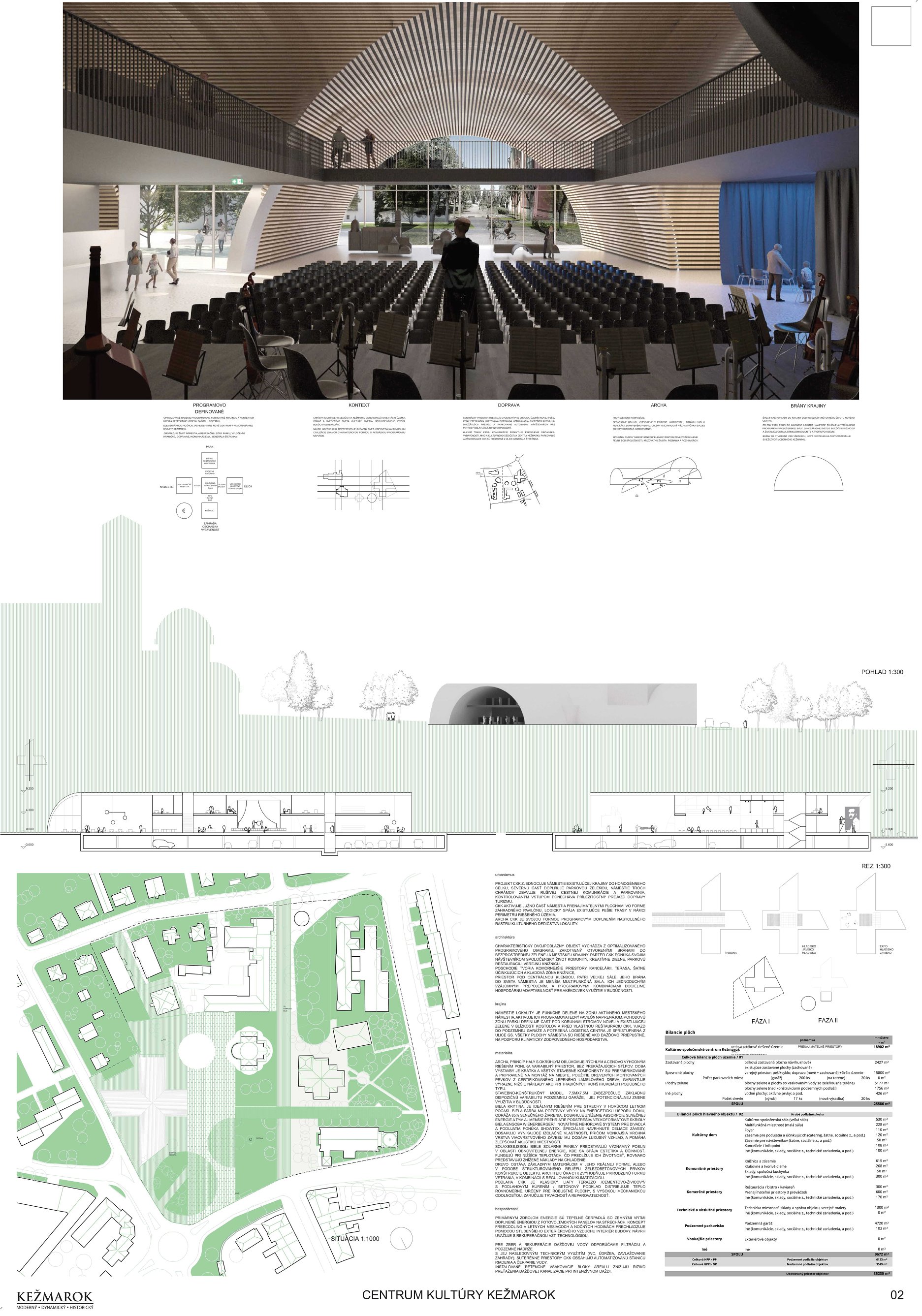 Slovo poroty a zhodnotenie súťaže: Hľadanie podoby nového centra kultúry v Kežmarku je témou, ktorá ďaleko presahuje samotnú stavbu. Ide o rozhodovanie o budúcej podobe významného verejného priestoru v bezprostrednom kontakte s historickými vrstvami mesta, sakrálnymi dominantami a pamiatkovo citlivým prostredím. Porota preto mimoriadne oceňuje, že mesto Kežmarok sa rozhodlo riešiť túto úlohu formou architektonickej súťaže, teda transparentným a odborne zodpovedným spôsobom, ktorý umožňuje porovnať široké spektrum prístupov a vybrať riešenie s najvyššou mierou kvality.