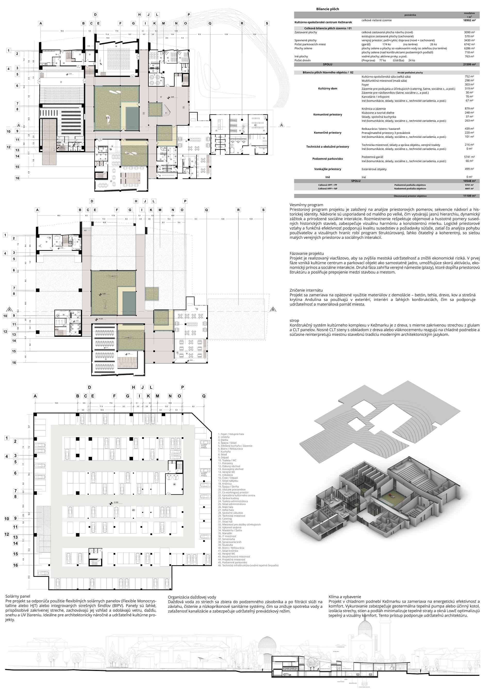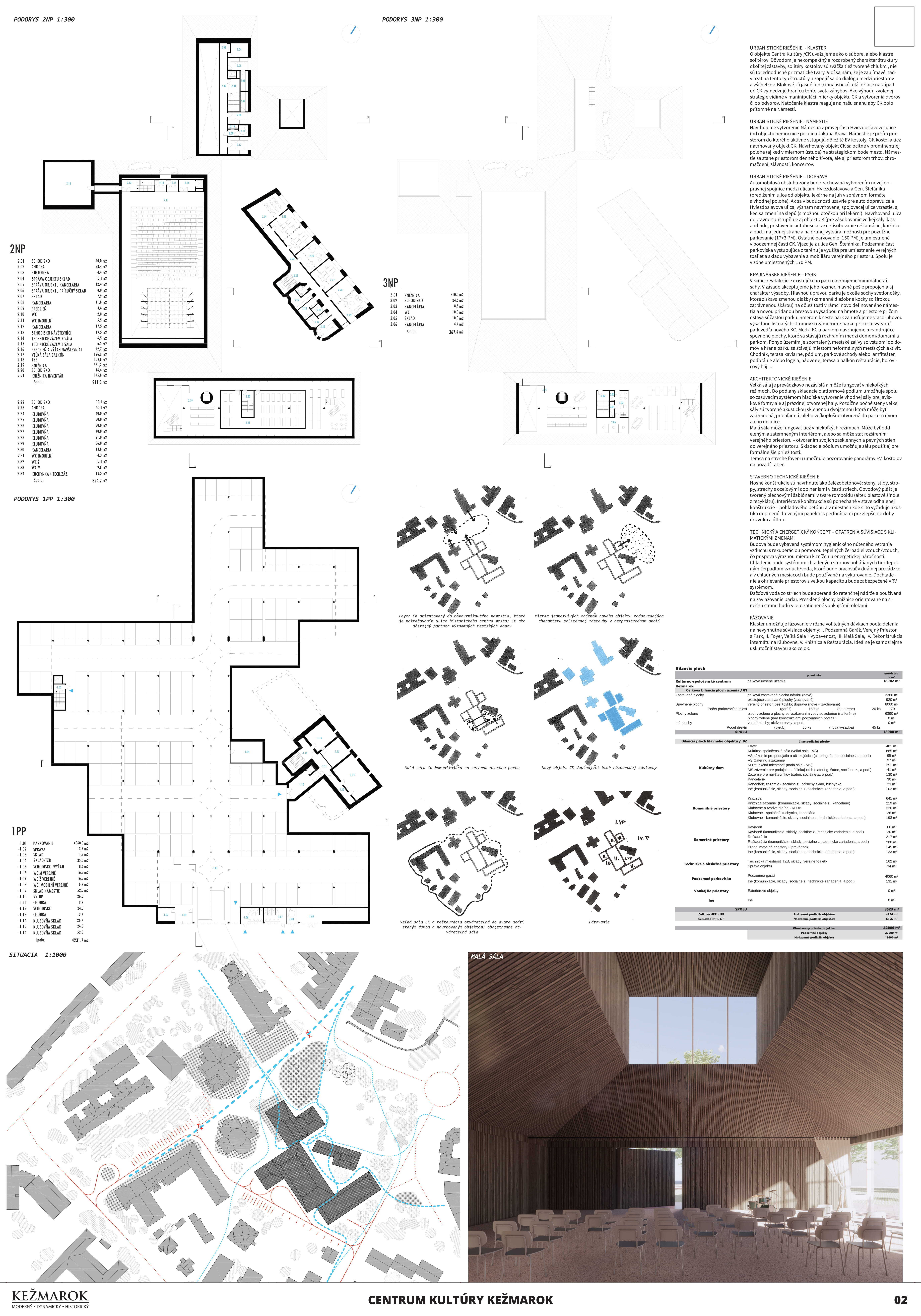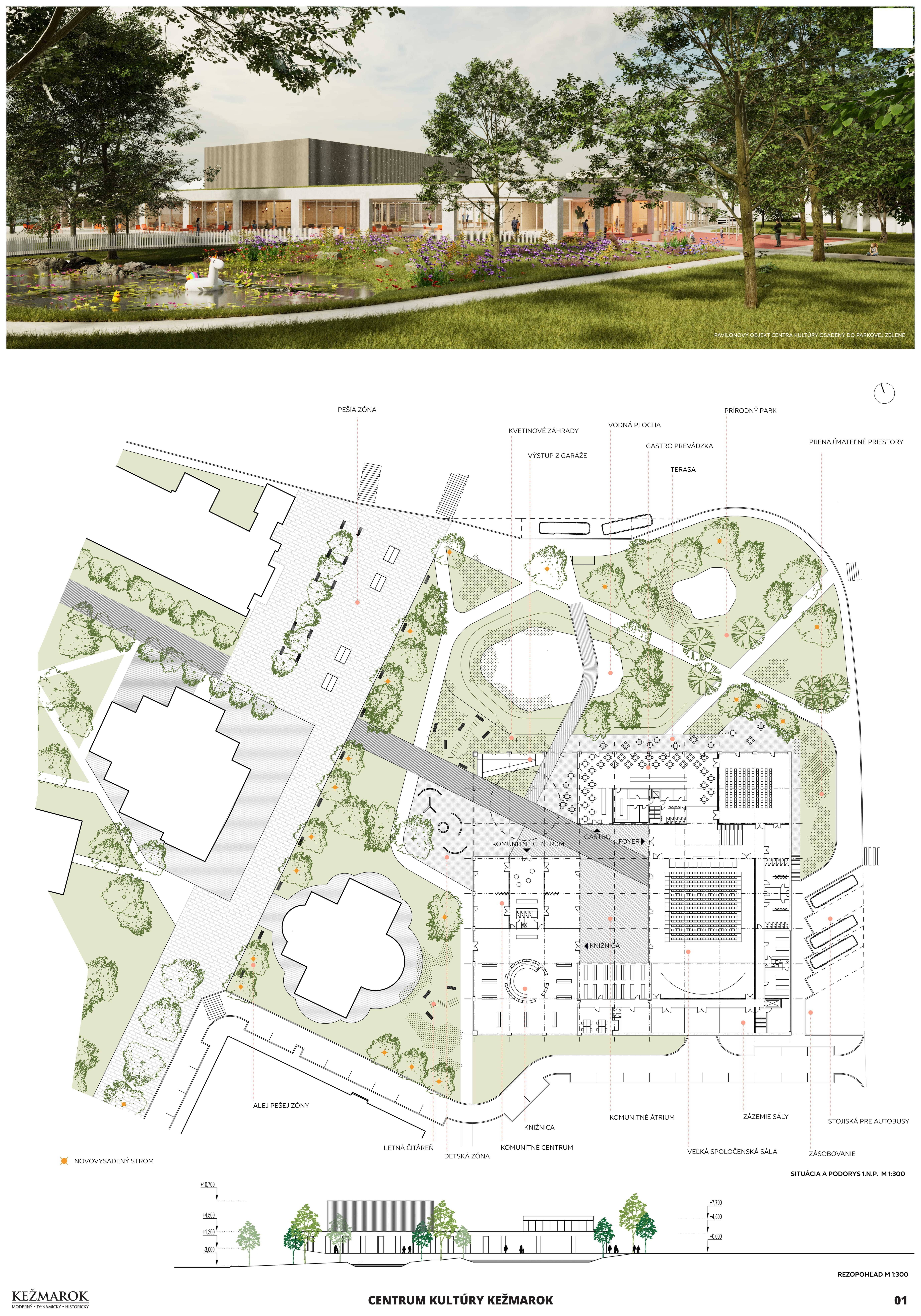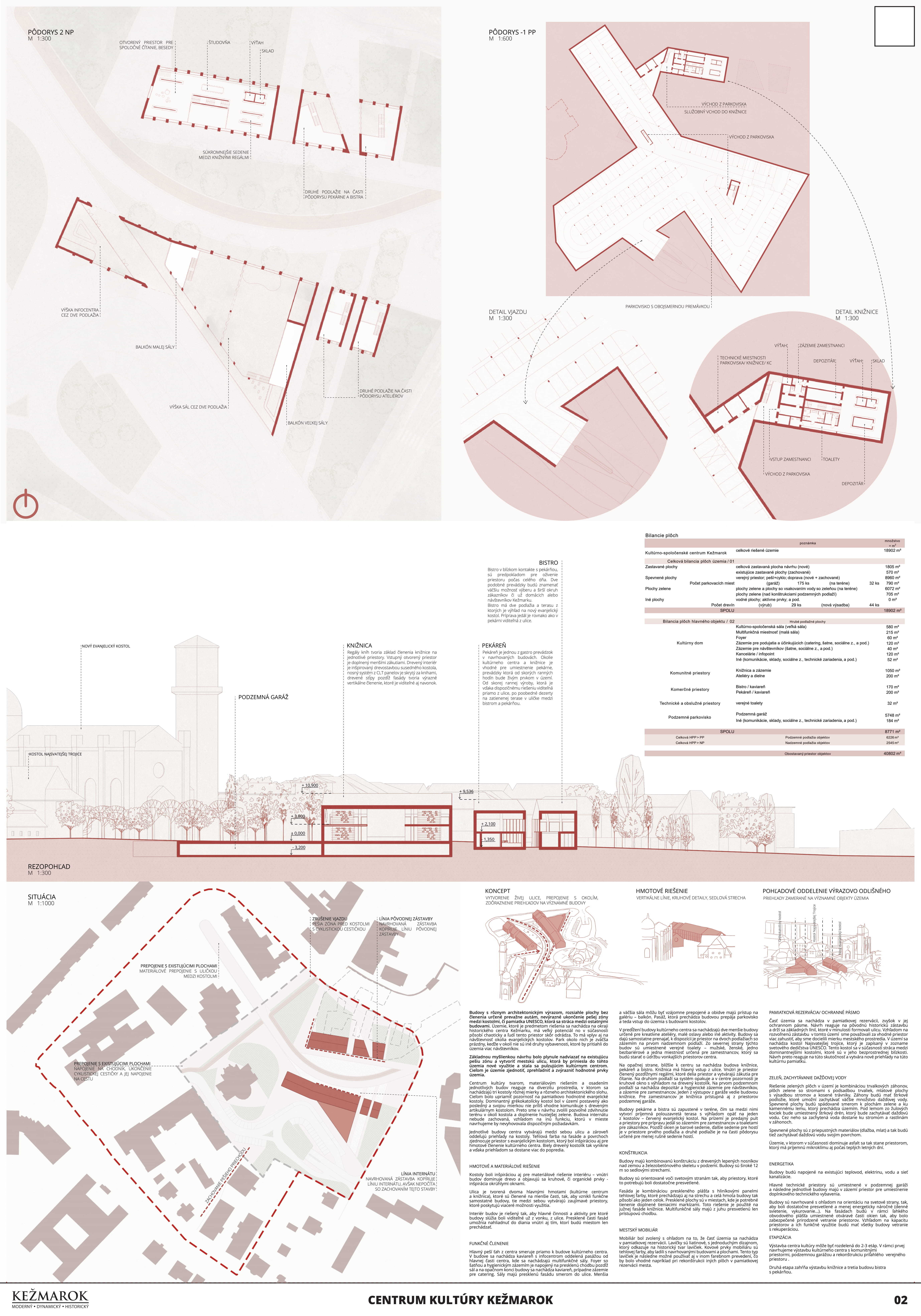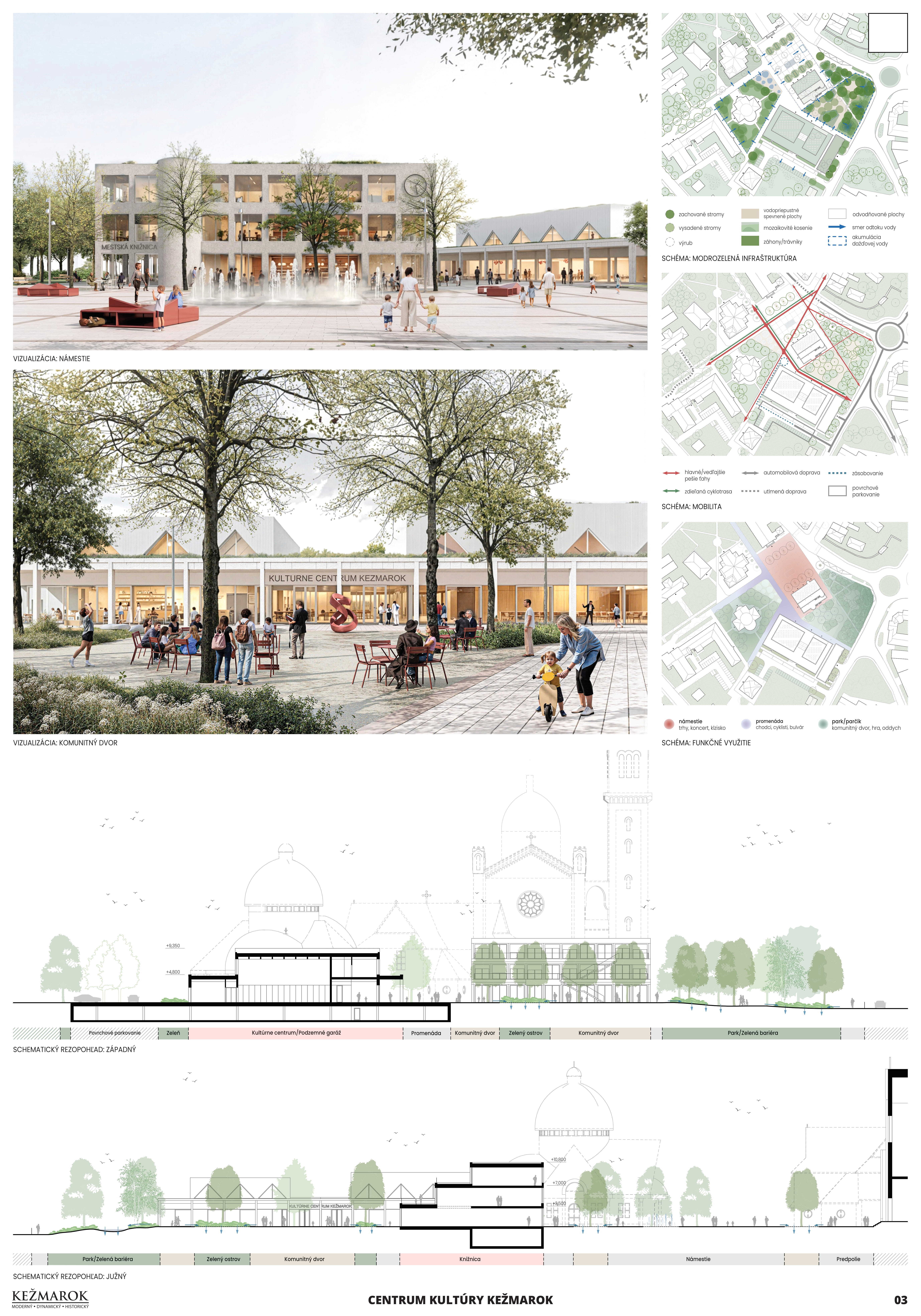 Slovo poroty a zhodnotenie súťaže: Hľadanie podoby nového centra kultúry v Kežmarku je témou, ktorá ďaleko presahuje samotnú stavbu. Ide o rozhodovanie o budúcej podobe významného verejného priestoru v bezprostrednom kontakte s historickými vrstvami mesta, sakrálnymi dominantami a pamiatkovo citlivým prostredím. Porota preto mimoriadne oceňuje, že mesto Kežmarok sa rozhodlo riešiť túto úlohu formou architektonickej súťaže, teda transparentným a odborne zodpovedným spôsobom, ktorý umožňuje porovnať široké spektrum prístupov a vybrať riešenie s najvyššou mierou kvality.