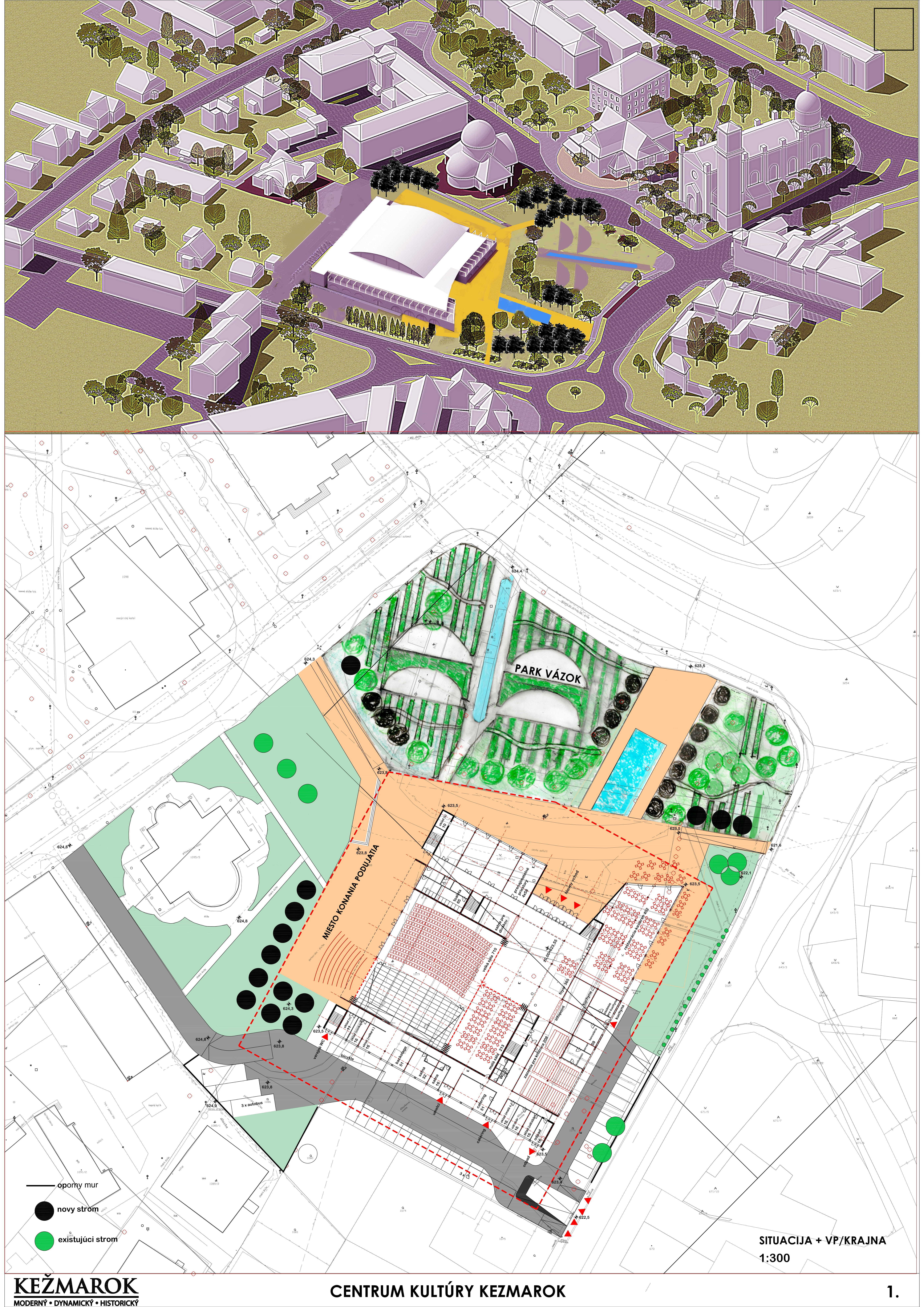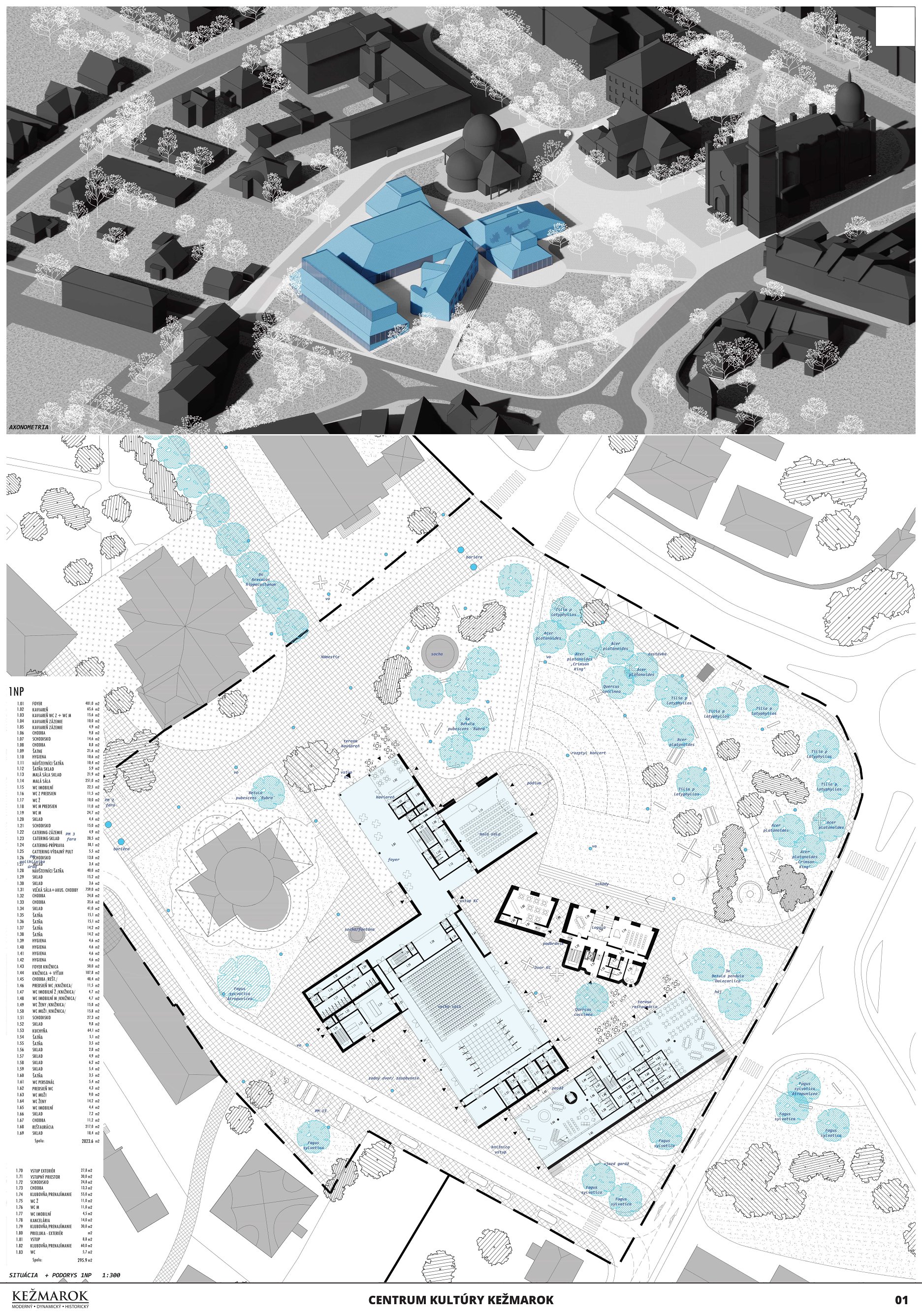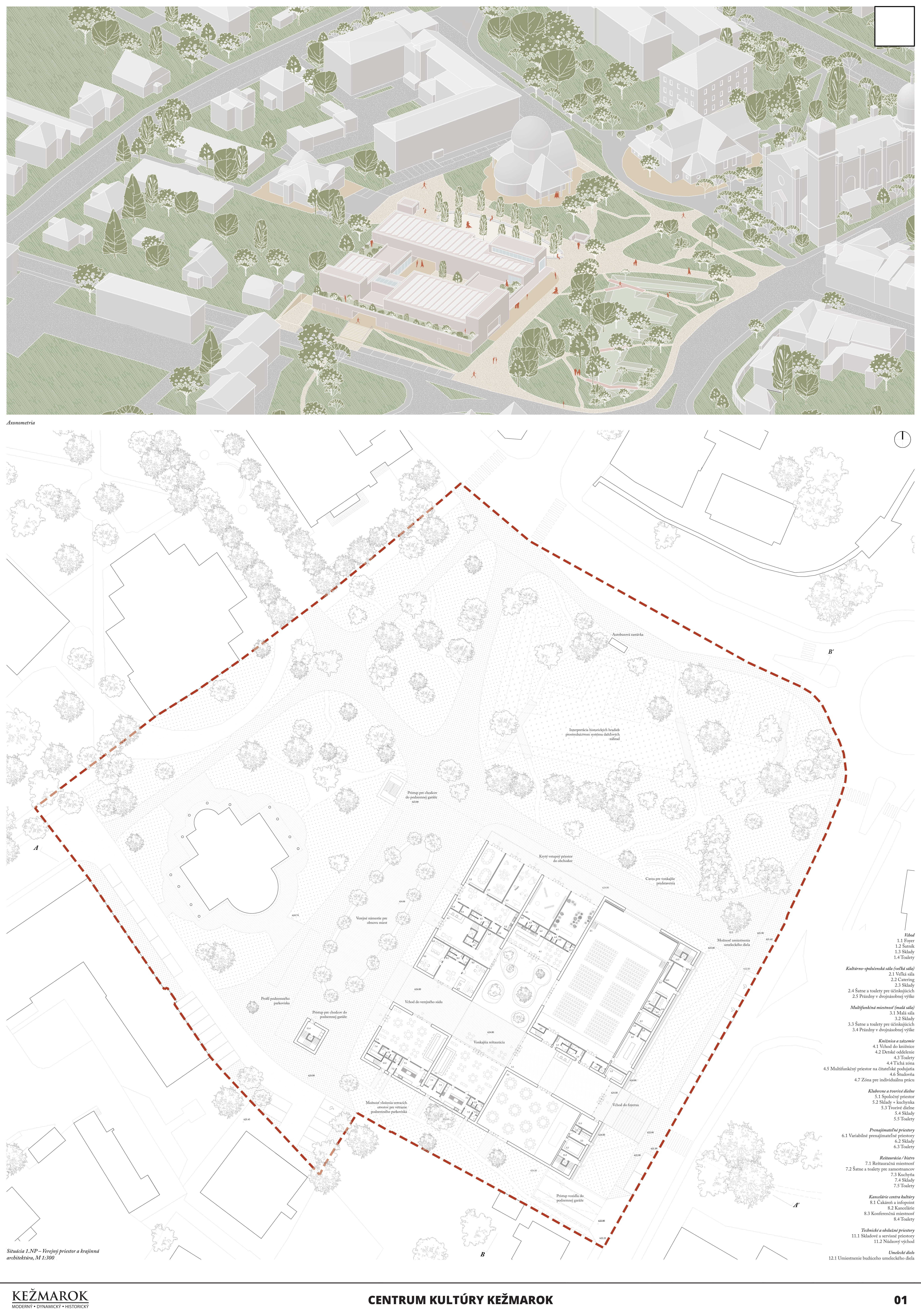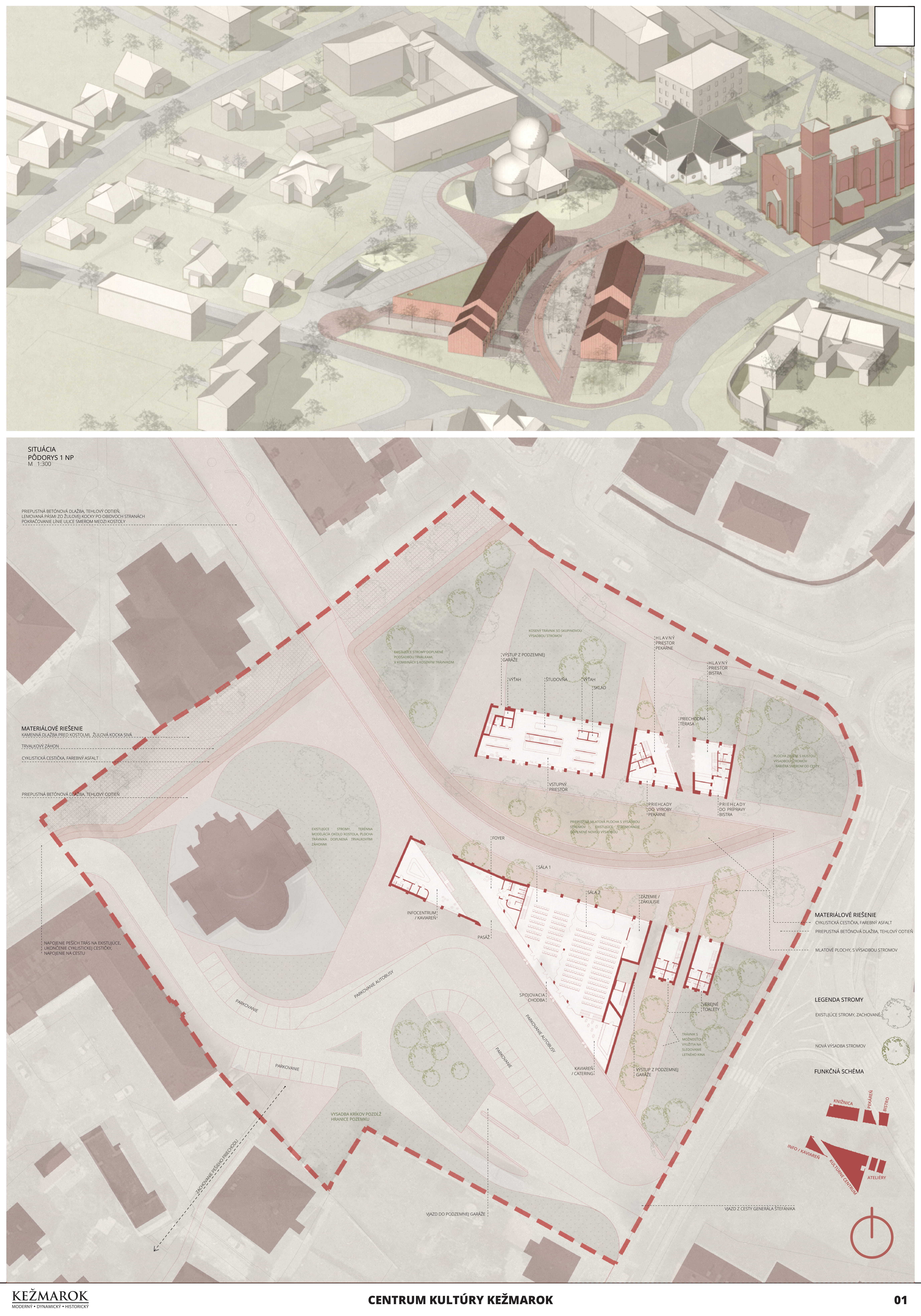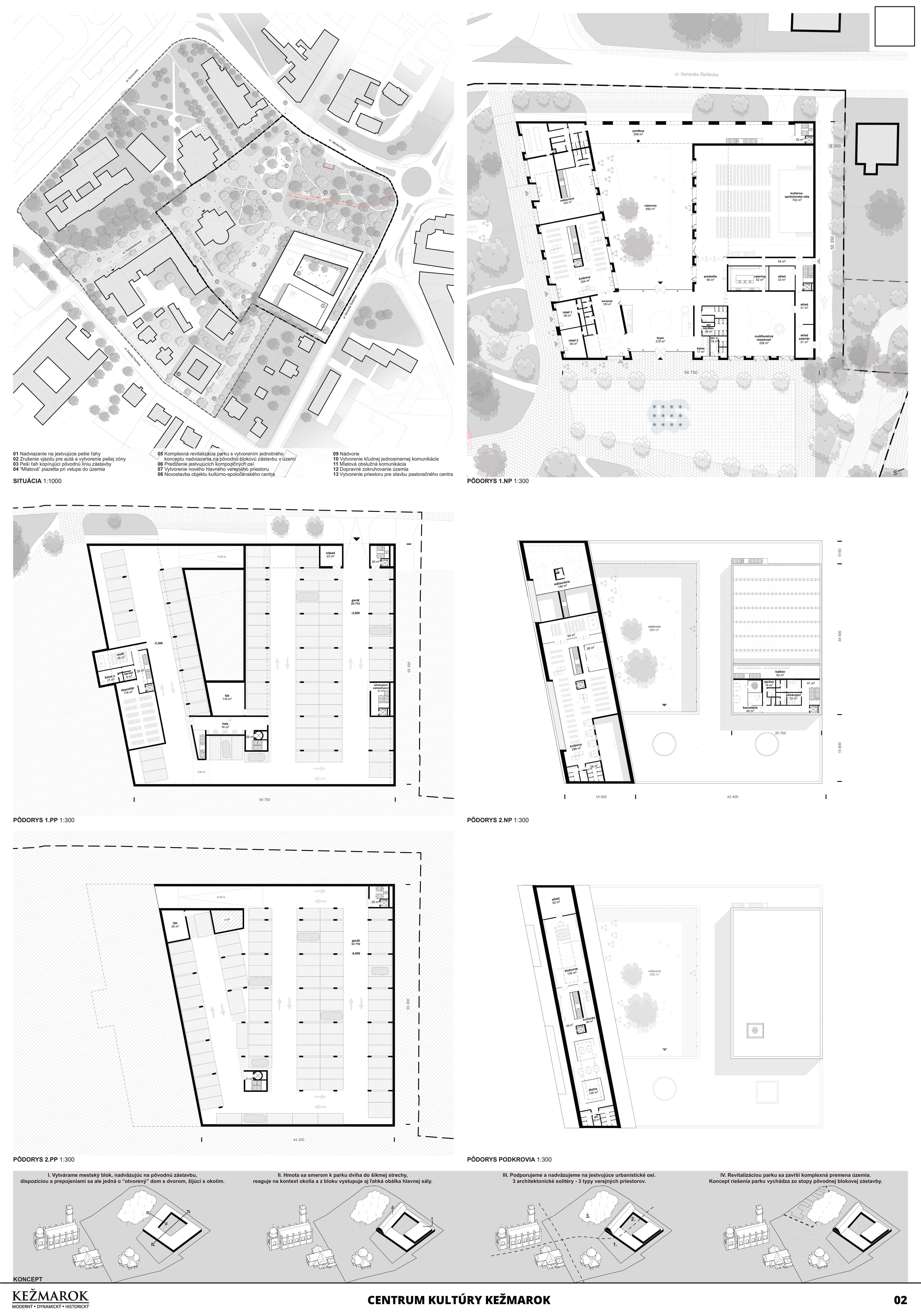 Slovo poroty a zhodnotenie súťaže: Hľadanie podoby nového centra kultúry v Kežmarku je témou, ktorá ďaleko presahuje samotnú stavbu. Ide o rozhodovanie o budúcej podobe významného verejného priestoru v bezprostrednom kontakte s historickými vrstvami mesta, sakrálnymi dominantami a pamiatkovo citlivým prostredím. Porota preto mimoriadne oceňuje, že mesto Kežmarok sa rozhodlo riešiť túto úlohu formou architektonickej súťaže, teda transparentným a odborne zodpovedným spôsobom, ktorý umožňuje porovnať široké spektrum prístupov a vybrať riešenie s najvyššou mierou kvality.