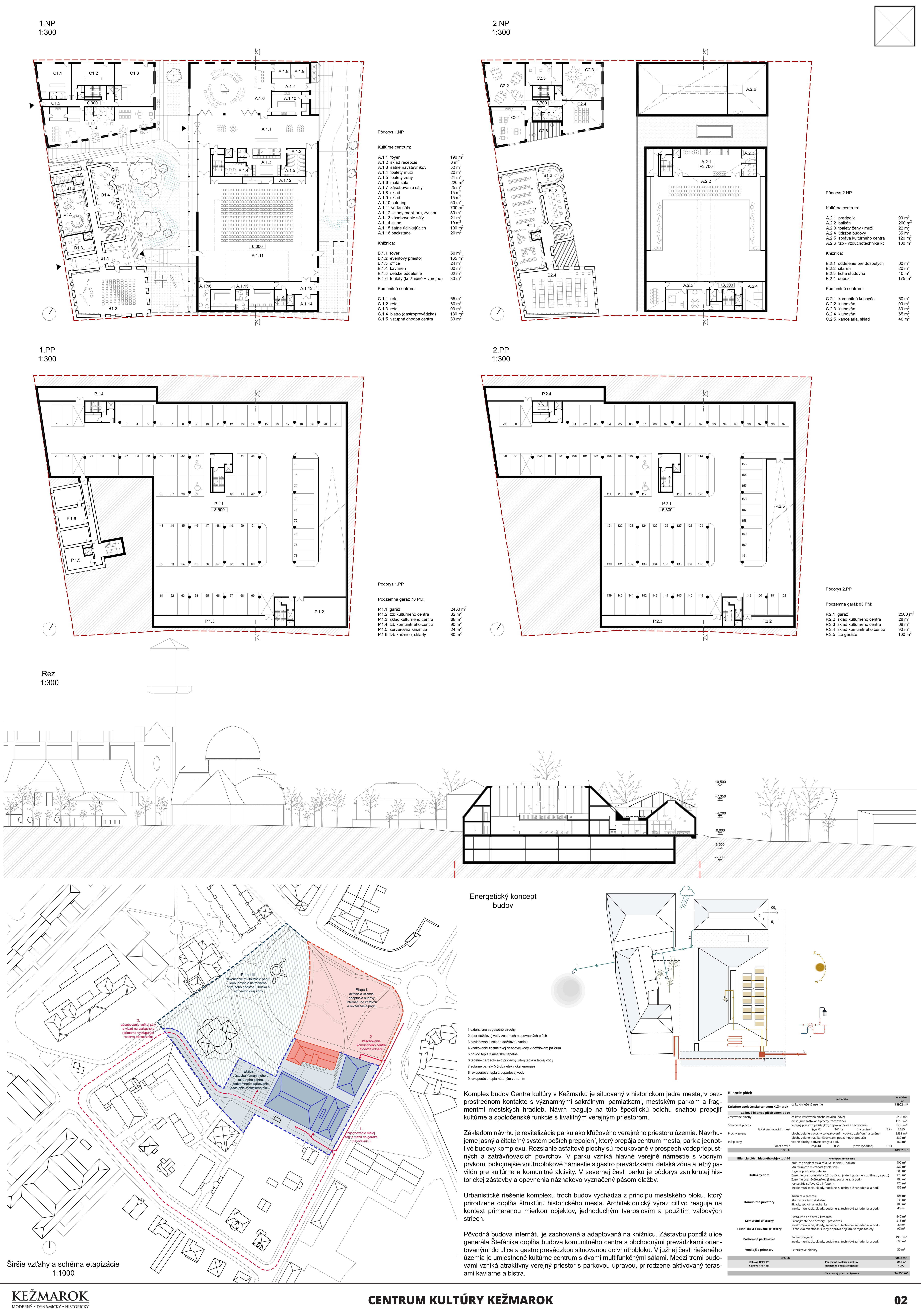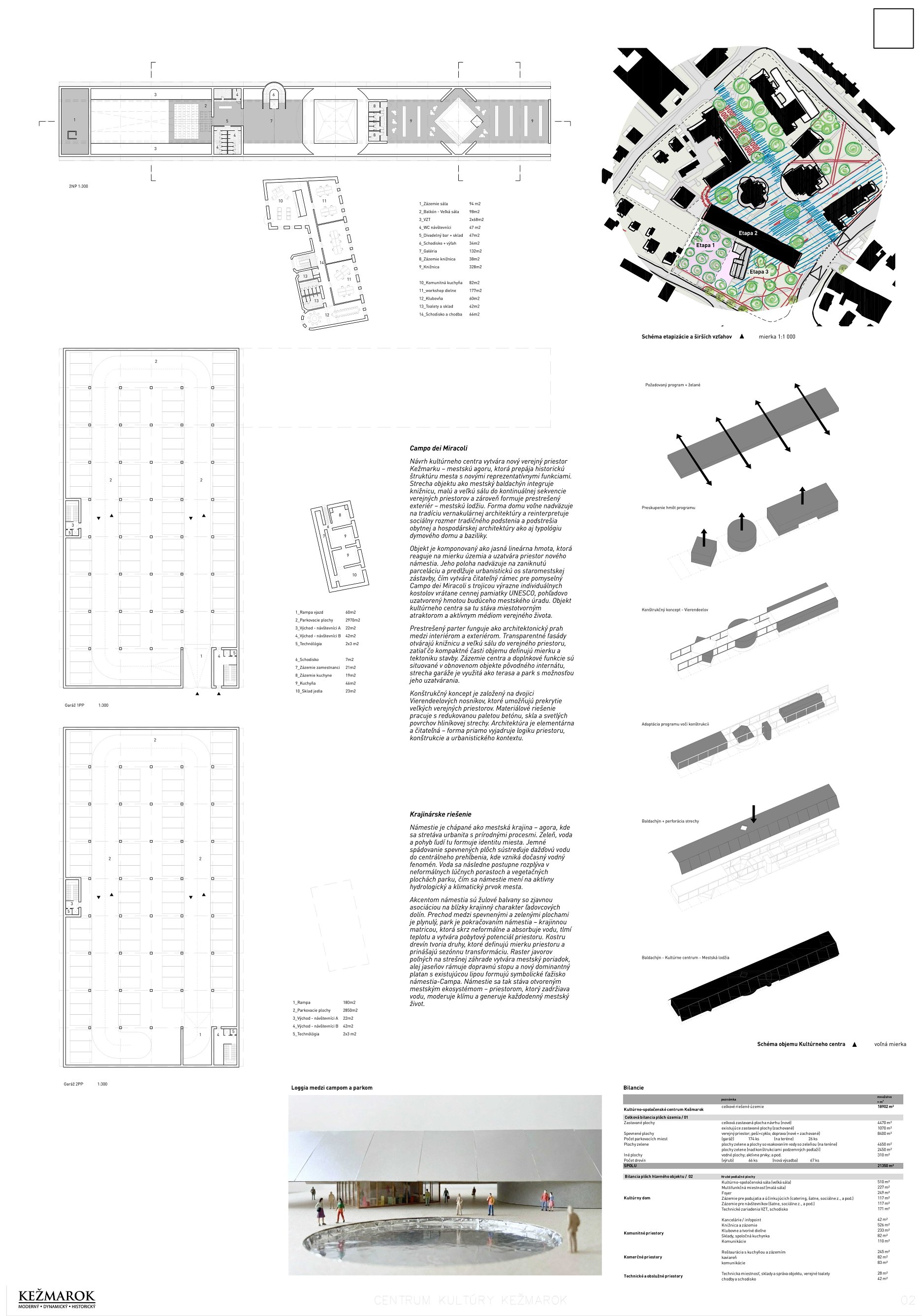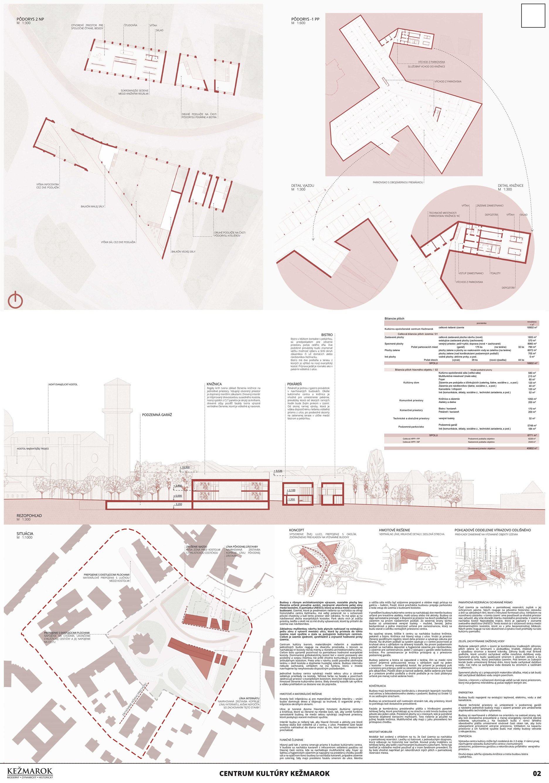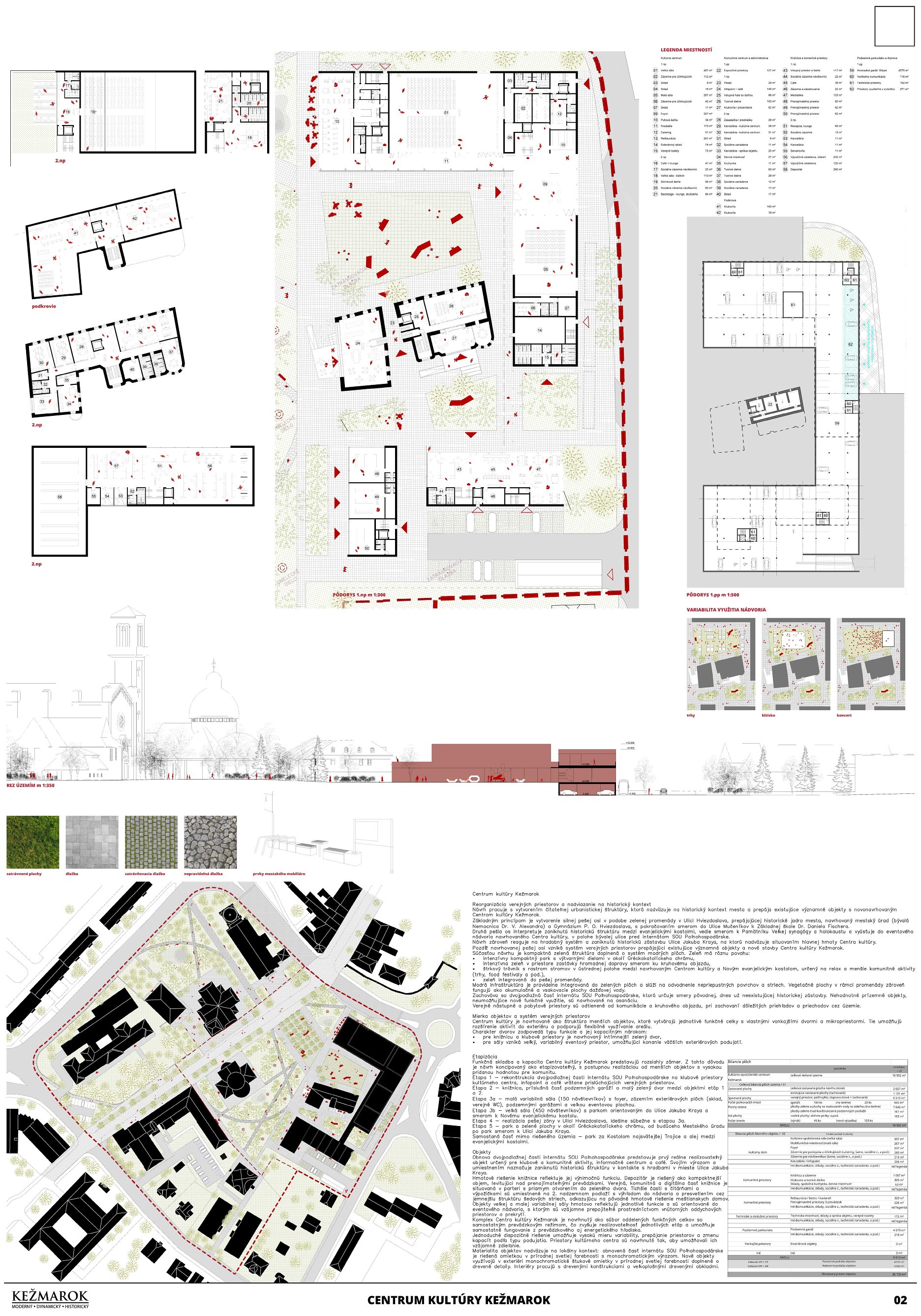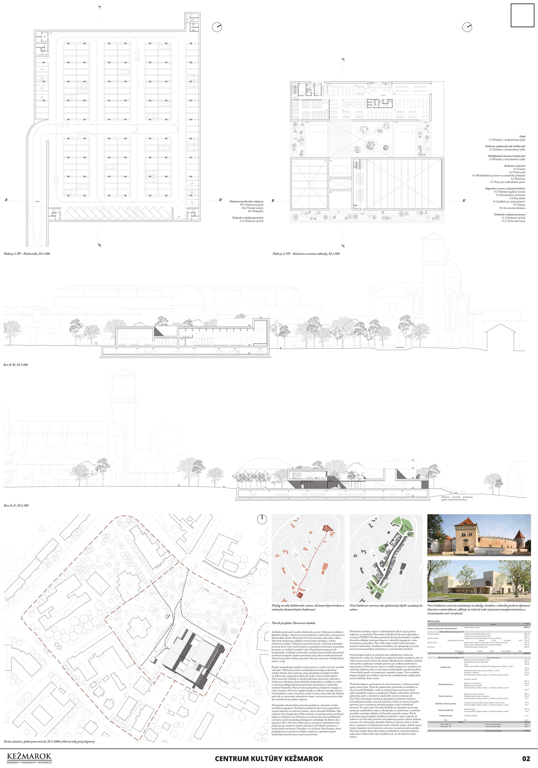 Jasne definovaný zámer výstavby Centra kultúry v Kežmarku víťazný návrh nerieši prvoplánovo, čo môže spočiatku pôsobiť až rozpačitým dojmom. Návrh upustil od riešenia „očakávanej“ jednej monumentálnej hmoty objektu a premyslene, minimalisticky sa snaží vstupovať do hodnotného urbanistického priestoru novou stavbou. Z hľadiska ochrany pamiatkového fondu je pozitívne hodnotené zachovanie historického stavebného fondu – objektu školského internátu s novým funkčným využitím, čo logicky prispelo k minimálnej nutnosti vstupu novej stavebnej hmoty v území. Premyslenosť až rafinovanosť celého návrhu však neguje spôsob zastrešenia novostavby, a to jednak tvarovým riešením, ktoré je v tomto území cudzorodé a odkazuje skôr na hospodárske stavby, ako aj materiálovým návrhom použitej strešnej krytiny. Vzhľadom na to, že v celom riešenom území je predpoklad výskytu archeologických nálezov, návrh aj napriek preukázateľne zaniknutej historickej zástavbe vo východnej okrajovej časti, navrhuje výstavbu do polohy, ktorá môže viesť k zvýšeným nárokom na prípravné a výskumné práce. Nevyhnutné je tiež preriešiť a skvalitniť navrhovaný verejný priestor s dôrazom na zachovanie jeho mestskej funkcie a s vylúčením odkazu na prírodné tatranské prostredie. Pri návrhu skladby zelene je potrebné použiť výlučne druhy domácej proveniencie.
