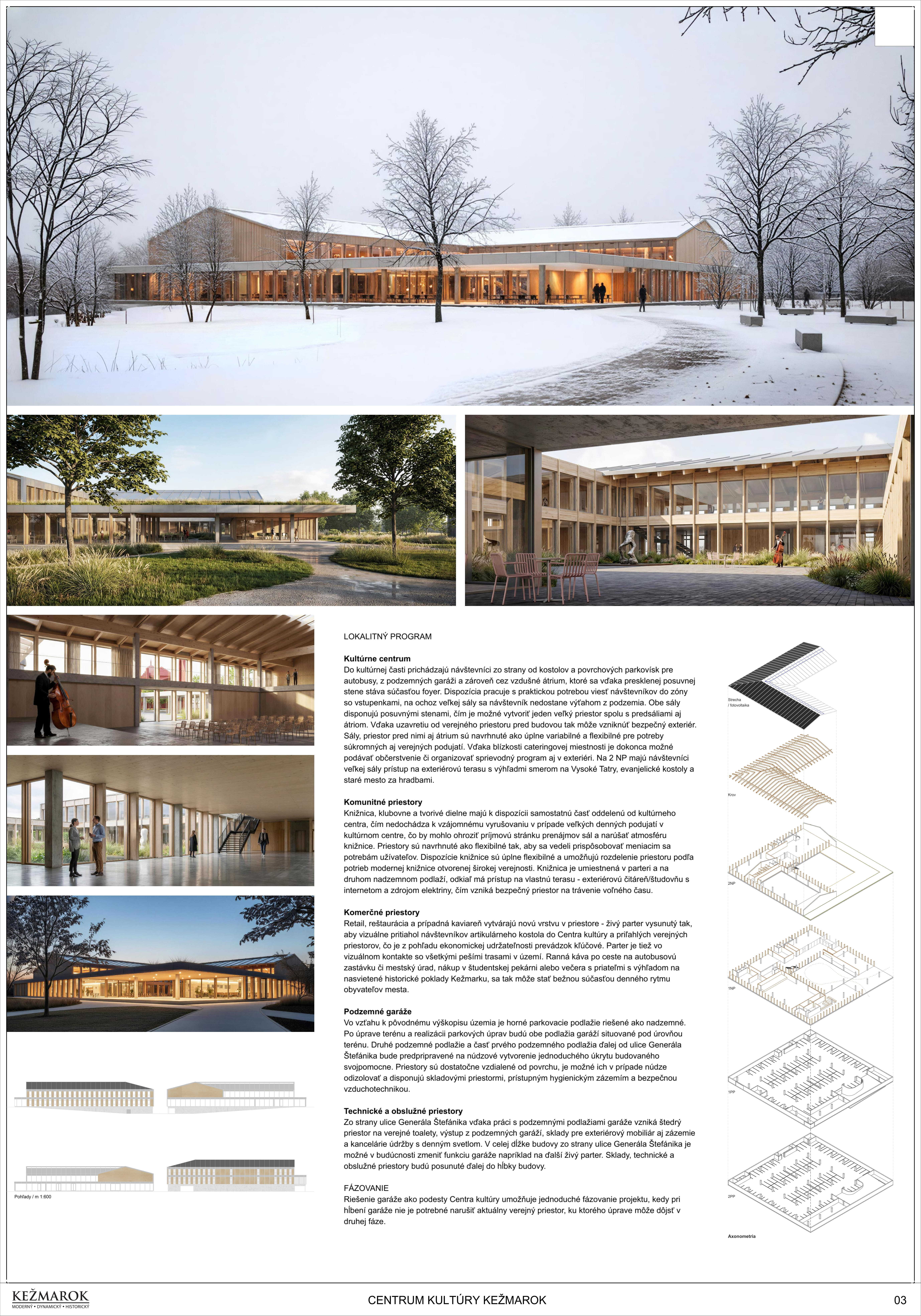 Mesto Kežmarok úspešne vyhodnotilo verejnú anonymnú architektonickú súťaž na návrh nového Centra kultúry. Cieľom bolo získať komplexný architektonicko-urbanisticko-krajinársky návrh kultúrno-spoločenskej inštitúcie, ktorá sa bude rozprestierať v lokalite pôvodného stredoškolského internátu. Riešené územie je mimoriadne cenné z hľadiska historického a pamiatkového kontextu mesta - nachádza sa na hrane historického centra, v bezprostrednom dotyku s trojicou chrámov vrátane dreveného artikulárneho kostola zapísaného v zozname UNESCO. Súťaž vyvolala obrovský záujem odborej verejnosti, čoho dôkazom je až 33 predložených súťažných návrhov z celého Slovenska i zahraničia.