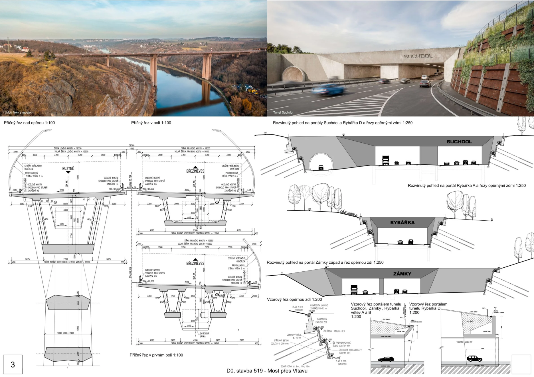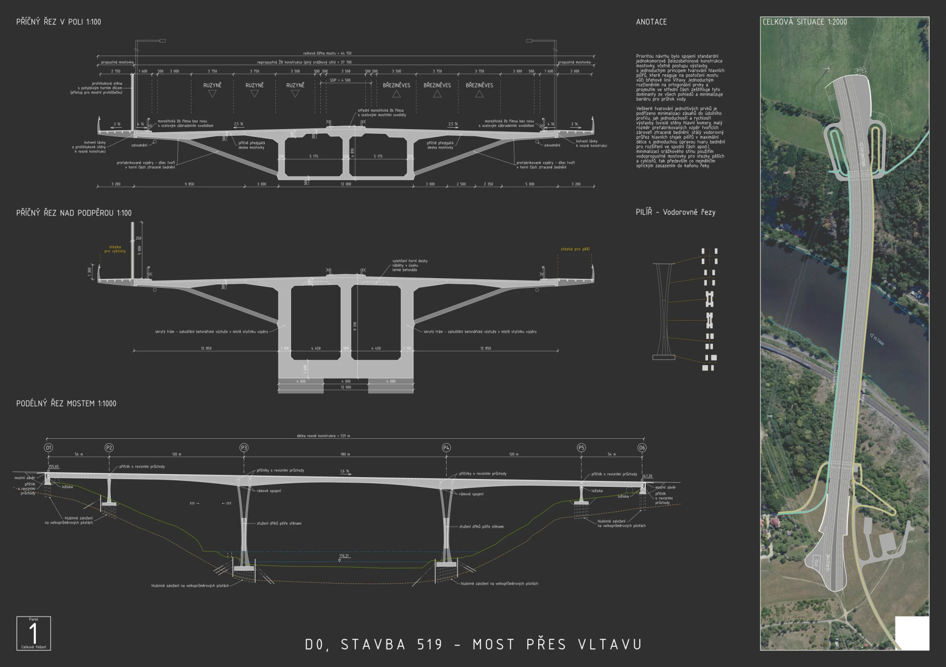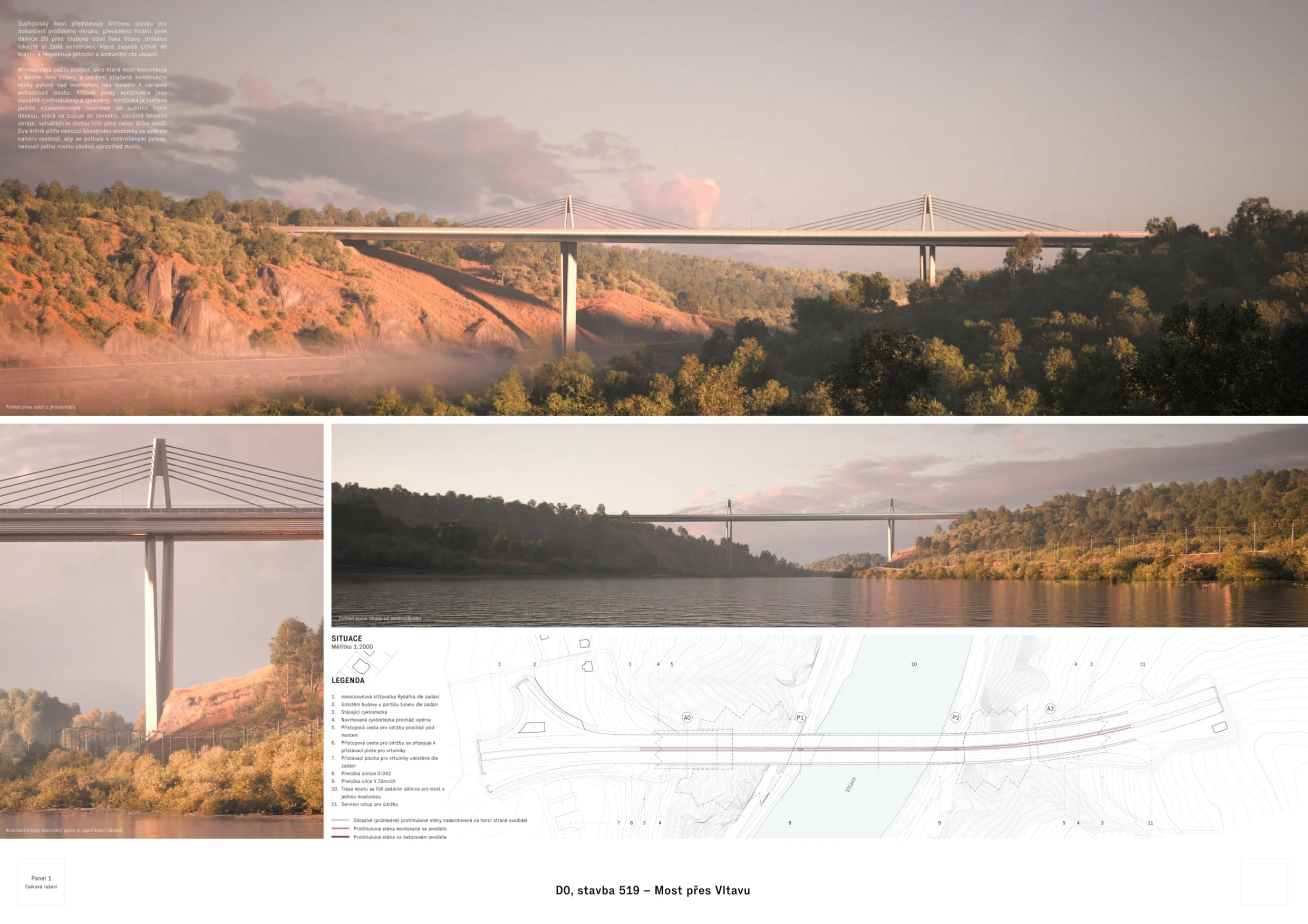 Kľúčový uzol Pražského okruhu: most (objekt SO 201) spája etapu D0 519 Suchdol – Březiněves medzi diaľnicami D7 a D8 a umožní dotiahnuť severozápadnú časť okruhu. História hľadania ideálnej podoby premostenia siaha už v roku 1998/1999, kedy prebehla prvá architektonicko-konštrukčná súťaž so 25 návrhmi; víťaza síce vybrali, no most sa nestaval. Súčasná súťaž tak nadväzuje na vyše štvrťstoročie diskusií o trase a podobe premostenia.