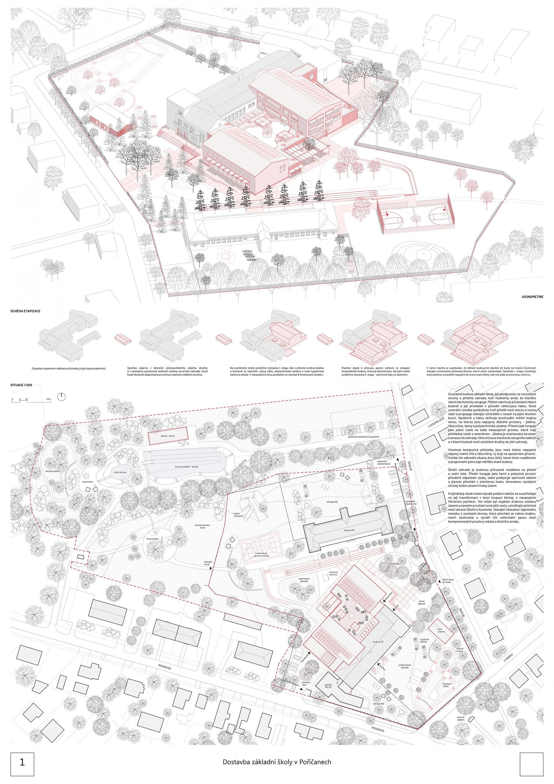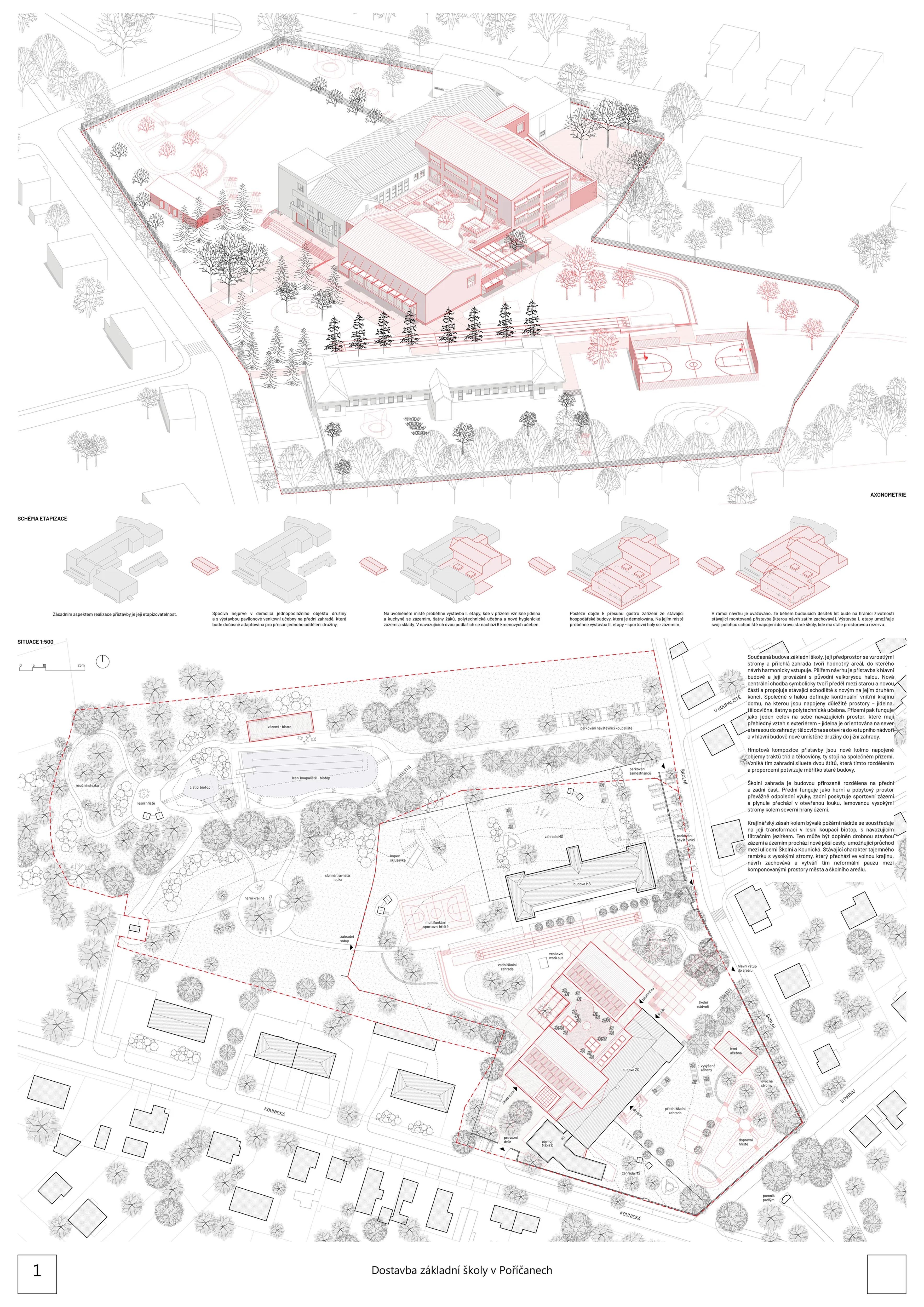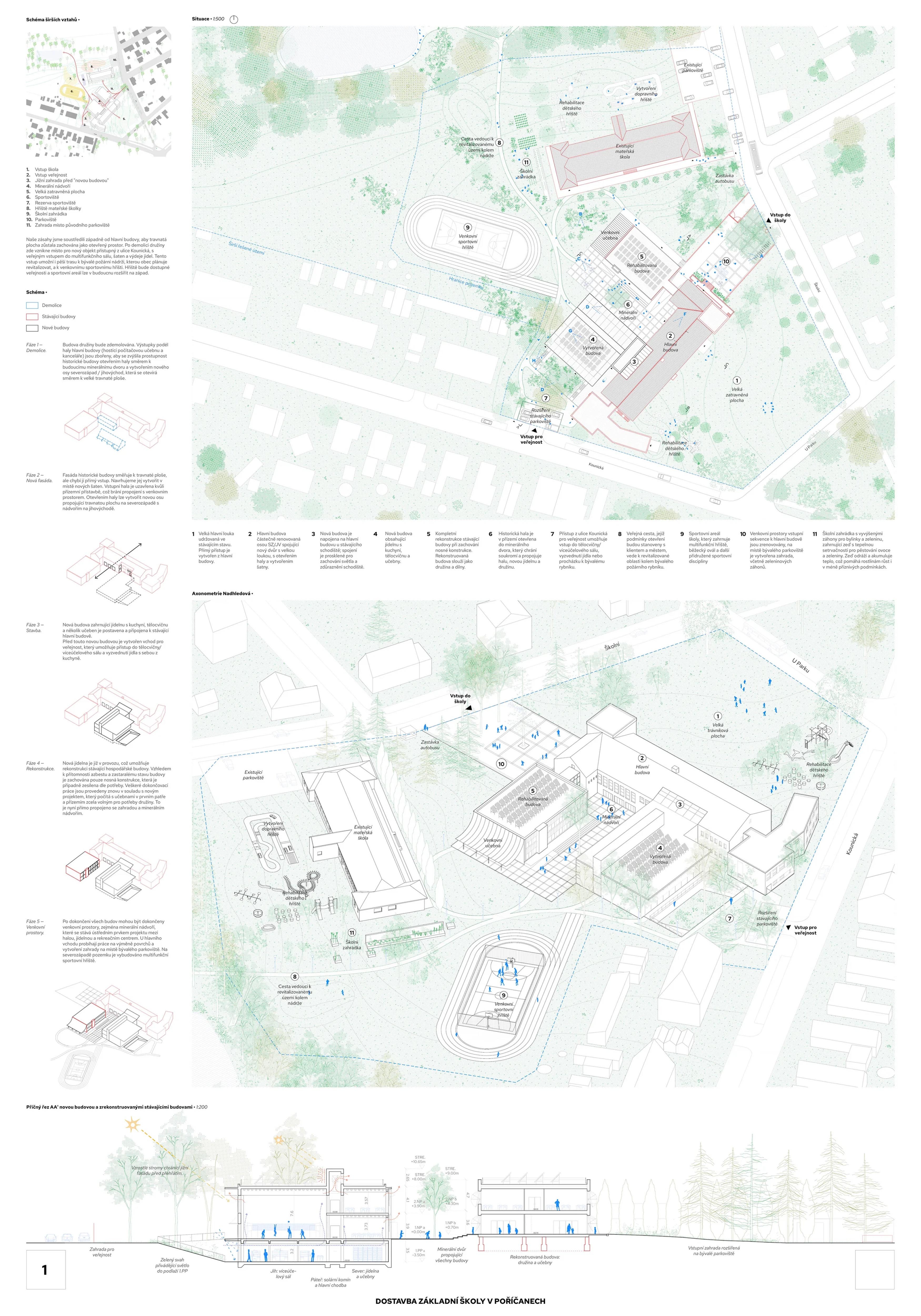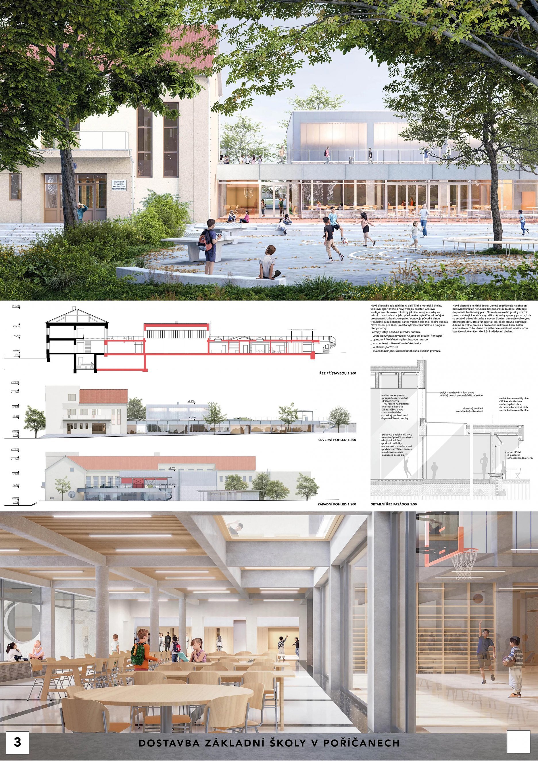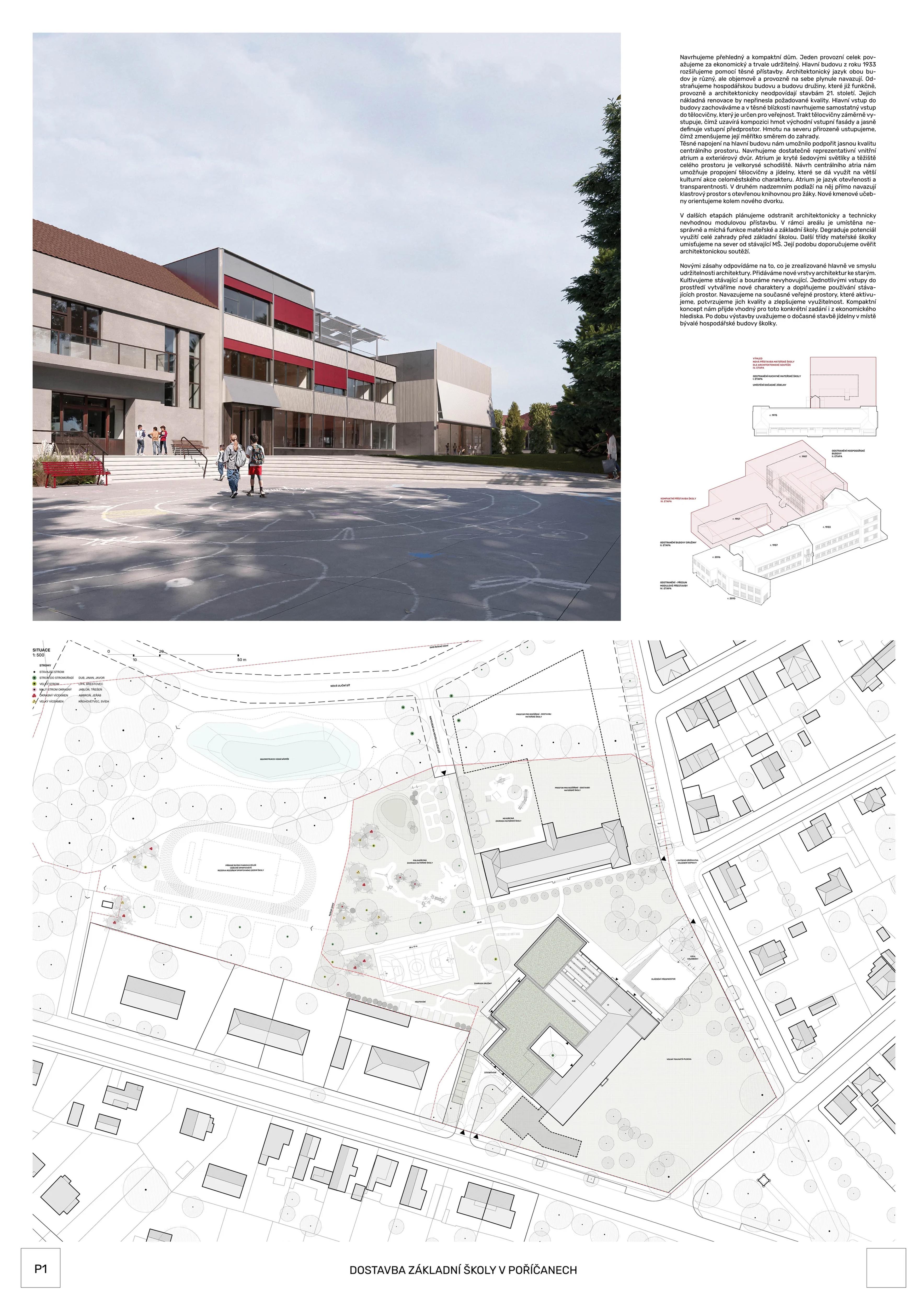 Predmetom súťaže bolo spracovanie architektonického návrhu dostavby areálu Základnej školy T. G. Masaryka a Materskej školy v stredočeskej obci Poříčany.